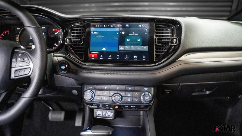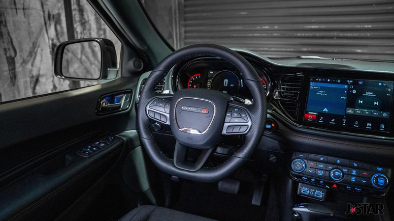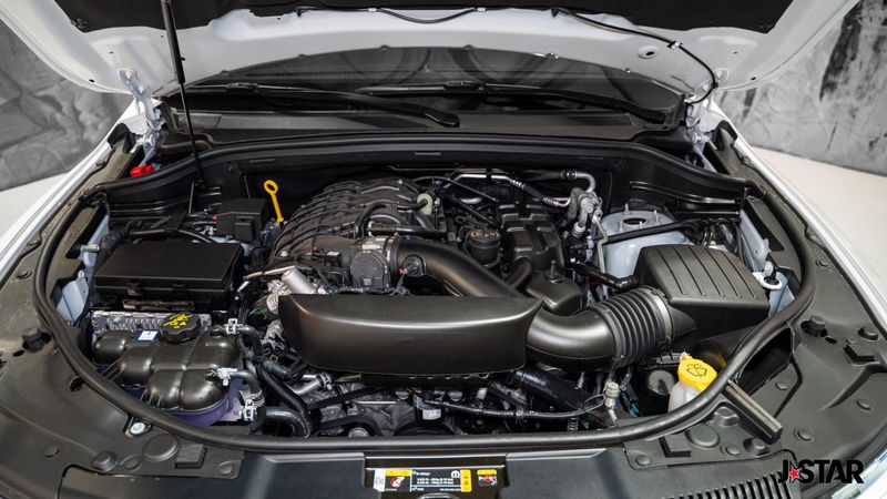 Blacktop Package (Black Roof Rails, Gloss Black Badges, Gloss Black Exterior Mirrors, GT Gloss Black Badging, Integrated Roof Rail Crossbars, Satin Black Dodge Tail Lamp Badge, and Wheels: 20'' x 8'' Black Noise Aluminum), Quick Order Package 2BD GT, 18'' x 8'' Painted Aluminum Wheels, 3.27 Rear Axle Ratio, 3rd row seats: split-bench, 4-Wheel Disc Brakes, 6 Speakers, ABS brakes, Air Conditioning, Alloy wheels, AM/FM radio: SiriusXM w/360L, Apple CarPlay/Android Auto, Auto-dimming Rear-View mirror, Auto-leveling suspension, Automatic temperature control, Brake assist, Bumpers: body-color, Cloth Bucket Seats w/Shift Insert, Compass, Delay-off headlights, Driver door bin, Driver vanity mirror, Dual front impact airbags, Dual front side impact airbags, Electronic Stability Control, Emergency communication system: Dodge Connect, Four wheel independent suspension, Front anti-roll bar, Front Bucket Seats, Front Center Armrest w/Storage, Front dual zone A/C, Front License Plate Bracket, Front reading lights, Fully automatic headlights, Garage door transmitter, Heated door mirrors, Heated front seats, Heated steering wheel, Illuminated entry, Knee airbag, Leather steering wheel, Low tire pressure warning, Navigation System, Occupant sensing airbag, Outside temperature display, Overhead airbag, Overhead console, Panic alarm, ParkView Rear Back-Up Camera, Passenger door bin, Passenger vanity mirror, Power door mirrors, Power driver seat, Power Liftgate, Power steering, Power windows, Radio data system, Radio: Uconnect 5 Nav w/10.1'' Display, Rear air conditioning, Rear anti-roll bar, Rear Load Leveling Suspension, Rear reading lights, Rear seat center armrest, Rear window defroster, Rear window wiper, Remote keyless entry, Speed control, Speed-sensing steering, Speed-Sensitive Wipers, Split folding rear seat, Spoiler, Sport steering wheel, Steering wheel mounted audio controls, Tachometer, Telescoping steering wheel, Tilt steering wheel, Traction control, Trip computer, Variably intermittent wipers, and Voltmeter.