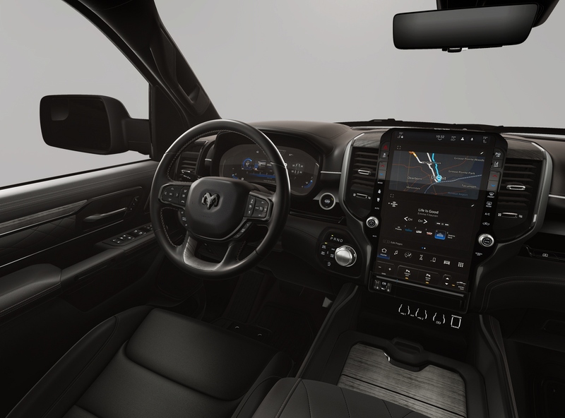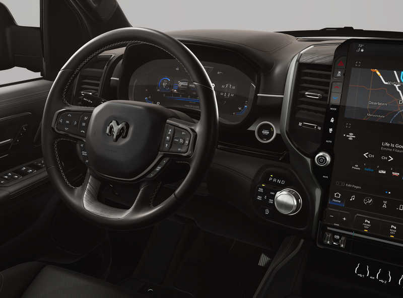 Bed Utility Group (Exterior 115V AC Outlet and MOPAR 4 Adjustable Cargo Tie-Down Hooks), Limited Level An Equipment Group (12-Way/1-Way Trailer Connector, 14.4'' Touchscreen Display, 240 Amp Alternator, 4G LTE Wi-Fi Hot Spot, Apple CarPlay, Connected Travel and Traffic Services, Connectivity - US/Canada, Disassociated Touchscreen Display, Drowsy Driver Detection, Evasive Steer Assist, Global Telematics Box Module, Google Android Auto, GPS Antenna Input, GPS Navigation, Hands-Free Active Driving Assist System, HD Radio, Heads-Up Display, Integrated Center Stack Radio, Integrated Voice Command with Bluetooth, Intersection Collision Assist System, LED CHMSL Lamp, Radio: Uconnect 5 Nav with 14.4'' Display, RamBox Cargo Management System, SiriusXM Radio Service, SiriusXM with 360L, Smartphone as a Key Capable, Surround View Camera System, Traffic Sign Recognition, Tri-Fold Tonneau Cover, and USB Host Flip), Night Edition (Accent Color Door Handles, Accent Color Premium Power Mirrors, Accent Color Tailgate Handle, Auto Power-Folding Mirrors, Auto-Dimming Exterior Driver Mirror, Black Day Light Opening Moldings, Black Exterior Truck Badging, Black Grille Surround Texture 7 Black, Black Headlamp Bezels, Black Painted Exterior Mirrors Caps, Black Tail Lamp Bezels, Body Color Front Bumper, Body Color Rear Bumper with Step Pads, Convex Wide-Angle Exterior Mirror Insert, Dual Exhaust with Black Tips, Exterior Mirrors Courtesy Lamps, Exterior Mirrors with Heating Element, Exterior Mirrors with Memory, Exterior Mirrors with Supplemental Signals, Pirelli Brand Tires, RAM Grille Badge - Black, Sport Performance Hood, and Wheels: 22'' x 9'' Premium Black Aluminum), Quick Order Package 22M Limited, 19 Speakers, 3.92 Rear Axle Ratio, 4-Wheel Disc Brakes, ABS brakes, Active Noise Control System, Adjustable pedals, Air Conditioning, Alloy wheels, AM/FM radio, Apple CarPlay/Android Auto, Audio memory, Auto High-beam Headlights, Auto-dimming door mirrors, Auto-dimming Rear-View mirror, Auto-leveling suspension, Automatic temperature control, Bodyside moldings, Brake assist, Bumpers: chrome, Chrome Exterior Mirrors, Compass, Delay-off headlights, Dome Dual LED Reading Lamp, Driver door bin, Driver vanity mirror, Dual front impact airbags, Dual front side impact airbags, Dual-Pane Panoramic Sunroof, Electronic Stability Control, Exterior Parking Camera Rear, Front anti-roll bar, Front Bucket Seats, Front Center Armrest w/Storage, Front dual zone A/C, Front fog lights, Front License Plate Bracket, Front reading lights, Front wheel independent suspension, Fully automatic headlights, Garage door transmitter, Genuine wood console insert, Genuine wood dashboard insert, Genuine wood door panel insert, Heated door mirrors, Heated front seats, Heated rear seats, Heated steering wheel, Illuminated entry, Leather steering wheel, LED Dome/Reading Lamp, Low tire pressure warning, Manufacturer's Statement of Origin, Memory seat, Navigation System, Occupant sensing airbag, Outside temperature display, Overhead airbag, Overhead console, Panic alarm, Passenger door bin, Passenger vanity mirror, Pedal memory, Power door mirrors, Power driver seat, Power passenger seat, Power steering, Power windows, Premium Quilted Leather Bucket Seats, Radio data system, Radio: Uconnect 5 Navigation with 12.0'' Display, Rain sensing wipers, Rear anti-roll bar, Rear reading lights, Rear seat center armrest, Rear step bumper, Rear window defroster, Remote keyless entry, Security system, Speed control, Split folding rear seat, Steering wheel mounted audio controls, Tachometer, Telescoping steering wheel, Tilt steering wheel, Traction control, Trailer Brake Control, Trip computer, Turn signal indicator mirrors, Variably intermittent wipers, Ventilated front seats, Ventilated rear seats, Voltmeter, and Wheels: 20'' x 9'' Premium Paint/Polished.