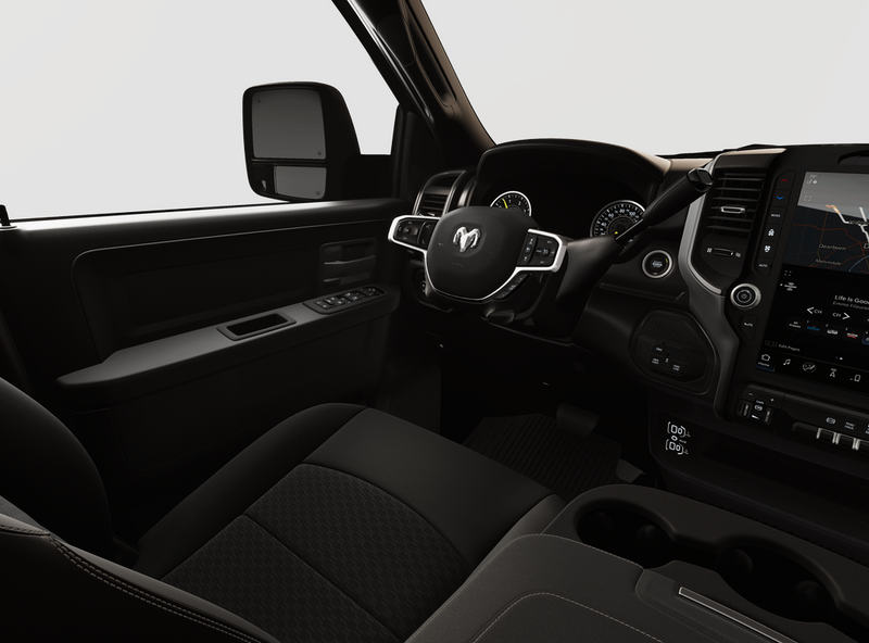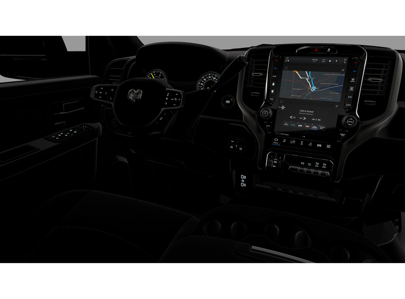 Bed Convenience Group (LED Bed Lighting), Quick Order Package 24B Warlock (2 Way Rear Headrest Seat, 4 Way Front Headrests, 40/20/40 Split Bench Seat, Anti-Spin Differential Rear Axle, Auto Power-Folding Mirrors, Black Exterior Mirrors, Black Wheel Center Hub, Black Wheel Flares, Carpet Floor Covering, Cloth 40/20/40 Bench Seat, Exterior Mirrors Courtesy Lamps, Front Performance Tuned Shock Absorbers, Manual Adjust 4-Way Driver Seat, Manual Adjust 4-Way Front Passenger Seat, Mirror Running Lights, Power Adjust Mirrors, Power Heated Folding Telescopic Mirrors, Power Telescoping Mirrors, Power-Adjustable Convex Aux Mirrors, Rear Folding Seat, Rear Performance Tuned Shock Absorbers, Remote USB Port - Charge Only, Storage Tray, Warlock Decal, and Wheels: 20'' x 8.0'' Black Diamond Cut Aluminum), Safety Group (Active Lane Management System, Adaptive Steering System, Auto High Beam Headlamp Control, Auto-Dimming Rear-View Mirror, Cluster 7.0'' TFT Color Display, Drowsy Driver Detection, LED Tail Lamps, Luxury Steering Wheel, Rain Sensitive Windshield Wipers, Red Tail Lamp Bezels, Steering Wheel Mounted Audio Controls, and Traffic Sign Recognition), Tradesman Level 1 Equipment Group (12'' Touchscreen Display, 400W Inverter, 4G LTE Wi-Fi Hot Spot, Apple CarPlay, Connectivity - US/Canada, Disassociated Touchscreen Display, Emergency Vehicle Alert System (EVAS), Exterior 115V AC Outlet, For Details, Visit DriveUconnect.com, For More Info, Call 800-643-2112, Google Android Auto, GPS Antenna Input, GPS Navigation, HD Radio, Off-Road Info Pages, Rear Power Sliding Window, Selectable Tire Fill Alert, SiriusXM Radio Service, Tinted Acoustic Windshield Glass, and Trailer Tow Pages), 4-Wheel Disc Brakes, 6 Speakers, ABS brakes, Air Conditioning, AM/FM radio: SiriusXM, Apple CarPlay/Android Auto, Brake assist, Compass, Delay-off headlights, Driver door bin, Dual front impact airbags, Dual front side impact airbags, Electronic Stability Control, Front anti-roll bar, Front Center Armrest w/Storage, Front fog lights, Front License Plate Bracket, Front reading lights, Fully automatic headlights, Heavy Duty Vinyl 40/20/40 Split Bench Seat, Illuminated entry, Low tire pressure warning, Manual Folding Exterior Mirrors, Manufacturer's Statement of Origin, Mopar Black Tubular Side Steps, Occupant sensing airbag, Outside temperature display, Overhead airbag, Overhead console, Panic alarm, ParkView Rear Back-Up Camera, Passenger door bin, Passenger vanity mirror, Power steering, Power windows, Radio data system, Rear anti-roll bar, Rear step bumper, Rear window defroster, Remote keyless entry, Speed control, Tachometer, Tilt steering wheel, Traction control, Variably intermittent wipers, Voltmeter, and Wheels: 17'' x 7.5'' Black Steel StyleD.