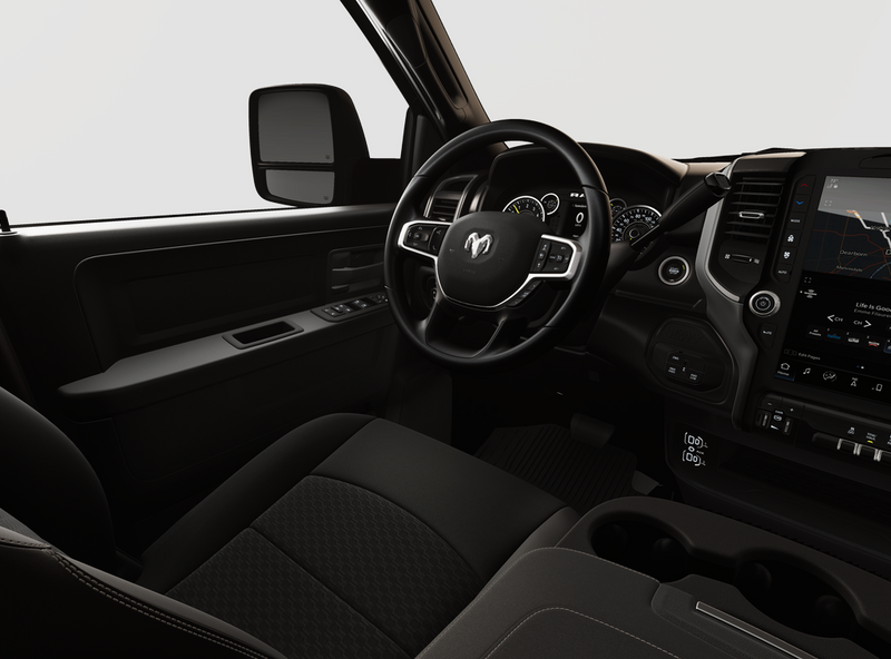 Bed Utility Group (LED Bed Lighting, MOPAR Deployable Bed Step, and MOPAR Spray in Bedliner), Quick Order Package 24B Warlock (2 Way Rear Headrest Seat, 4 Way Front Headrests, 40/20/40 Split Bench Seat, Anti-Spin Differential Rear Axle, Auto Power-Folding Mirrors, Black Exterior Mirrors, Black Wheel Center Hub, Black Wheel Flares, Carpet Floor Covering, Cloth 40/20/40 Bench Seat, Exterior Mirrors Courtesy Lamps, Exterior Mirrors with Heating Element, Exterior Mirrors with Supplemental Signals, Forward and Reverse Utility Lights, Front Armrest with Cupholders, Front Performance Tuned Shock Absorbers, Hill Assist, Manual Adjust 4-Way Driver Seat, Manual Adjust 4-Way Front Passenger Seat, Mirror Running Lights, MOPAR Front and Rear Rubber Floor Mats, Power Adjust Mirrors, Power Heated Folding Telescopic Mirrors, Power Telescoping Mirrors, Power-Adjustable Convex Aux Mirrors, Rear Folding Seat, Rear Performance Tuned Shock Absorbers, Rear Wheelhouse Liners, Remote USB Port - Charge Only, Storage Tray, Warlock Decal, and Wheels: 20'' x 8.0'' Black Diamond Cut Aluminum), Tradesman Level 1 Equipment Group (115-Volt Auxiliary Front Power Outlet, 12'' Touchscreen Display, 400W Inverter, 4G LTE Wi-Fi Hot Spot, Air Conditioning ATC with Dual Zone Control, Alexa Built-in, Apple CarPlay, Auto-Dimming Rear-View Mirror, Connected Travel and Traffic Services, Connectivity - US/Canada, Disassociated Touchscreen Display, Emergency Vehicle Alert System (EVAS), Exterior 115V AC Outlet, For Details, Visit DriveUconnect.com, For More Info, Call 800-643-2112, Global Telematics Box Module, Google Android Auto, GPS Antenna Input, GPS Navigation, HD Radio, Integrated Voice Command with Bluetooth, Off-Road Info Pages, Radio: Uconnect 5 Navigation with 12.0'' Display, Rear Power Sliding Window, Selectable Tire Fill Alert, SiriusXM Radio Service, SiriusXM with 360L, Tinted Acoustic Windshield Glass, and Trailer Tow Pages), 4-Wheel Disc Brakes, 5th Wheel/Gooseneck Towing Prep Group, 6 Speakers, ABS brakes, Air Conditioning, AM/FM radio: SiriusXM, Apple CarPlay/Android Auto, Brake assist, Compass, Delay-off headlights, Driver door bin, Dual front impact airbags, Dual front side impact airbags, Electronic Stability Control, Front anti-roll bar, Front Center Armrest w/Storage, Front fog lights, Front License Plate Bracket, Front reading lights, Fully automatic headlights, Illuminated entry, Low tire pressure warning, Manual Folding Exterior Mirrors, Manuarl Telescoping Mirrors, Manufacturer's Statement of Origin, Mopar Black Tubular Side Steps, Occupant sensing airbag, Outside temperature display, Overhead airbag, Overhead console, Panic alarm, ParkView Rear Back-Up Camera, Passenger door bin, Passenger vanity mirror, Power steering, Power windows, Radio data system, Radio: Uconnect 5 with 8.4'' Display, Rear anti-roll bar, Rear step bumper, Rear window defroster, Remote keyless entry, Speed control, Tachometer, Tilt steering wheel, Traction control, Variably intermittent wipers, Voltmeter, and Wheels: 17'' x 7.5'' Black Steel StyleD.