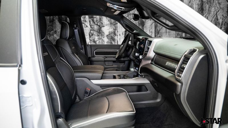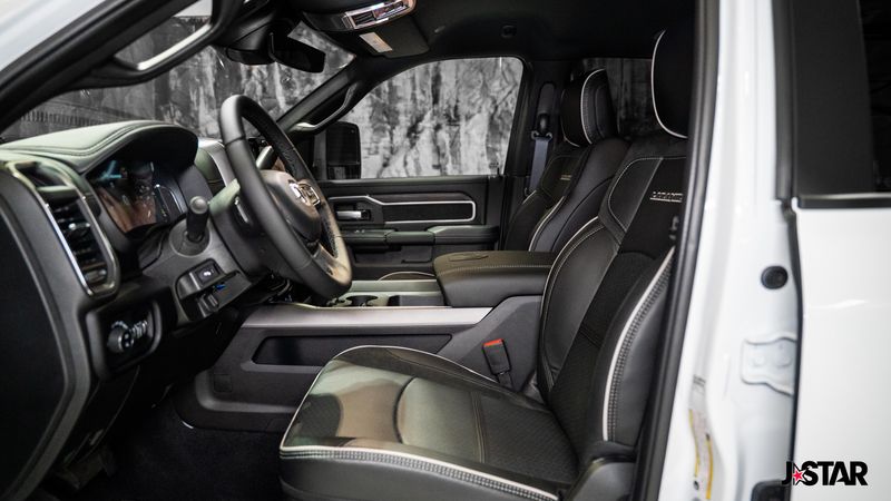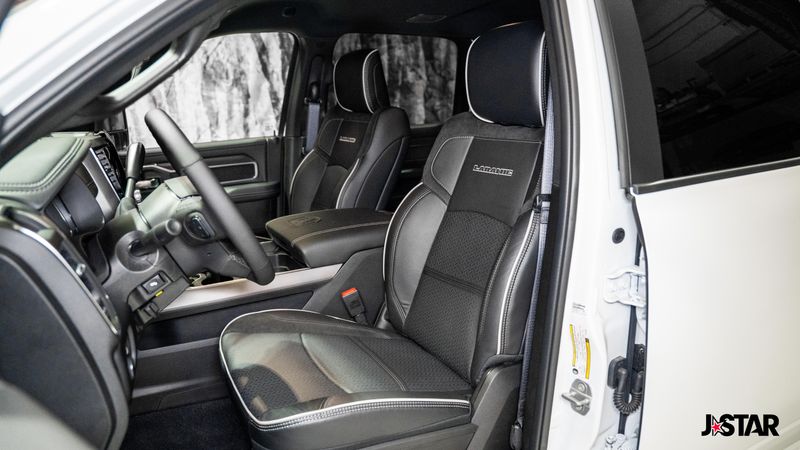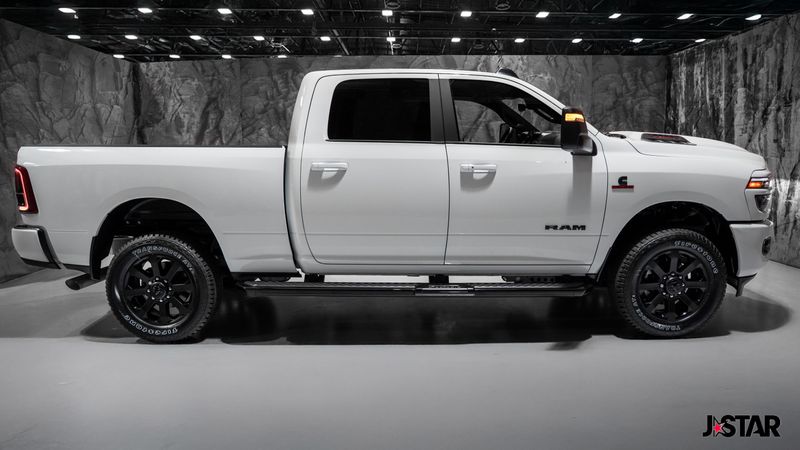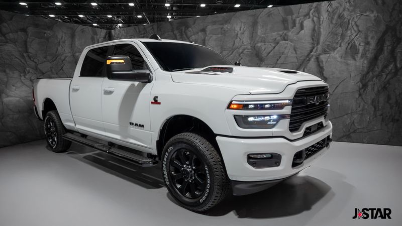 Laramie Level 1 Plus Equipment Group (#1 Seat Foam Cushion, 115V Auxiliary Rear Power Outlet, 2 Way Rear Headrest Seat, 2nd Row in Floor Storage Bins, 4 Way Front Headrests, Active Lane Management System, Adaptive Steering System, Anti-Spin Differential Rear Axle, Auto Adjust in Reverse Exterior Mirrors, Auto Dim Exterior Mirror, Auto High Beam Headlamp Control, Auto Power-Folding Mirrors, Auto-Dimming Exterior Passenger Mirror, Bucket Seats, Center Stop Lamp with Cargo View Camera, Chrome Exterior Mirrors, Drowsy Driver Detection, Dual Wireless Charging Pad, Exterior Mirrors Courtesy Lamps, Exterior Mirrors with Heating Element, Exterior Mirrors with Memory, Exterior Mirrors with Supplemental Signals, Foam Bottle Insert (door Trim Panel), Folding Flat Load Floor Storage, Forward and Reverse Utility Lights, Front Seat Back Map Pockets, Full Length Upgraded Floor Console, Heated Front Seats, Heated Steering Wheel, High Back Seats, Leather Trimmed Bucket Seats, LED Bed Lighting, Mirror Running Lights, MOPAR Deployable Bed Step, MOPAR Spray in Bedliner, Power 2-Way Driver Lumbar Adjust, Power 2-Way Passenger Lumbar Adjust, Power Adjust 8-Way Driver Seat, Power Adjust 8-Way Front Passenger Seat, Power Adjust Mirrors, Power Adjustable Pedals with Memory, Power Heated Fold Telescopic Mirrors with Memory, Power Telescoping Mirrors, Power-Adjustable Convex Aux Mirrors, Radio/Driver Seat/Mirrors/Pedals Memory, Rain Sensitive Windshield Wipers, Rear 60/40 Folding Seat, Remote Tailgate Release, Traffic Sign Recognition, and Ventilated Front Seats), Night Edition (Black Exterior Mirrors, Black Exterior Truck Badging, Black Wheel Center Hub, Body Color Grille-Surround, Gloss Black Grille Billets/Accents, Sport Performance Hood, and Wheels: 20'' x 8.0'' Black Painted Aluminum), Quick Order Package 24H Laramie, 10 Speakers, 4-Wheel Disc Brakes, 4G LTE Wi-Fi Hot Spot, 5th Wheel/Gooseneck Towing Prep Group, ABS brakes, Air Conditioning, Alexa Built-in, Alloy wheels, AM/FM radio: SiriusXM with 360L, Apple CarPlay, Apple CarPlay/Android Auto, Auto-dimming Rear-View mirror, Automatic temperature control, Brake assist, Bumpers: body-color, Compass, Connected Travel and Traffic Services, Connectivity - US/Canada, Delay-off headlights, Disassociated Touchscreen Display, Driver door bin, Driver vanity mirror, Dual front impact airbags, Dual front side impact airbags, Electronic Stability Control, Emergency Vehicle Alert System (EVAS), For Details, Visit DriveUconnect.com, For More Info, Call 800-643-2112, Front anti-roll bar, Front Center Armrest w/Storage, Front dual zone A/C, Front fog lights, Front License Plate Bracket, Front reading lights, Fully automatic headlights, Garage door transmitter, Global Telematics Box Module, Google Android Auto, GPS Antenna Input, GPS Navigation, HD Radio, Heated door mirrors, Heated front seats, Heated steering wheel, Illuminated entry, Integrated Voice Command with Bluetooth, Leather Trim 40/20/40 Bench Seat, Low tire pressure warning, Manufacturer's Statement of Origin, Navigation System, Occupant sensing airbag, Off-Road Info Pages, Outside temperature display, Overhead airbag, Overhead console, Painted Flat Wheel-to-Wheel Side Steps, Panic alarm, ParkView Rear Back-Up Camera, Passenger door bin, Passenger vanity mirror, Power door mirrors, Power driver seat, Power passenger seat, Power steering, Power windows, Radio data system, Radio: Uconnect 5 Navigation with 12.0'' Display, Rear anti-roll bar, Rear reading lights, Rear seat center armrest, Rear step bumper, Rear window defroster, Remote keyless entry, Security system, Selectable Tire Fill Alert, SiriusXM Radio Service, SiriusXM with 360L, Speed control, Split folding rear seat, Steering wheel mounted audio controls, Tachometer, Tilt steering wheel, Traction control, Trailer Tow Pages, Trip computer, Turn signal indicator mirrors, Variably intermittent wip Price includes: $1000 - 2026 National Bonus Cash . Exp. 01/0