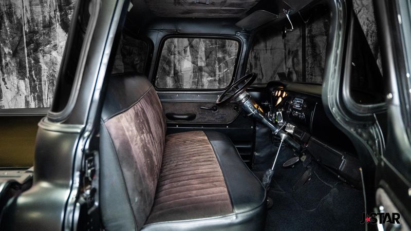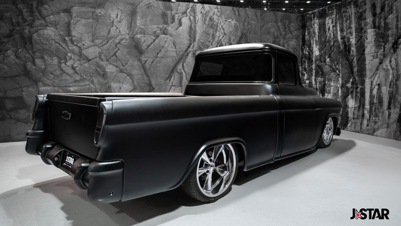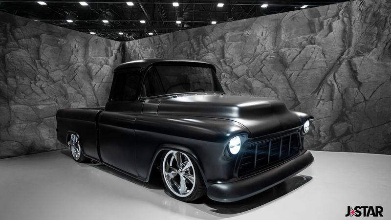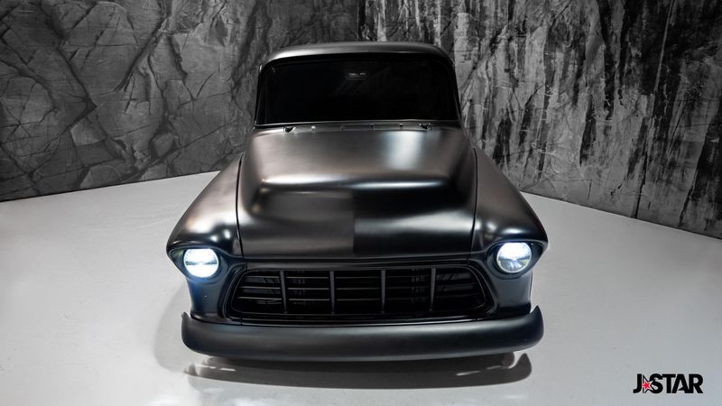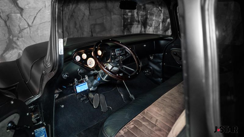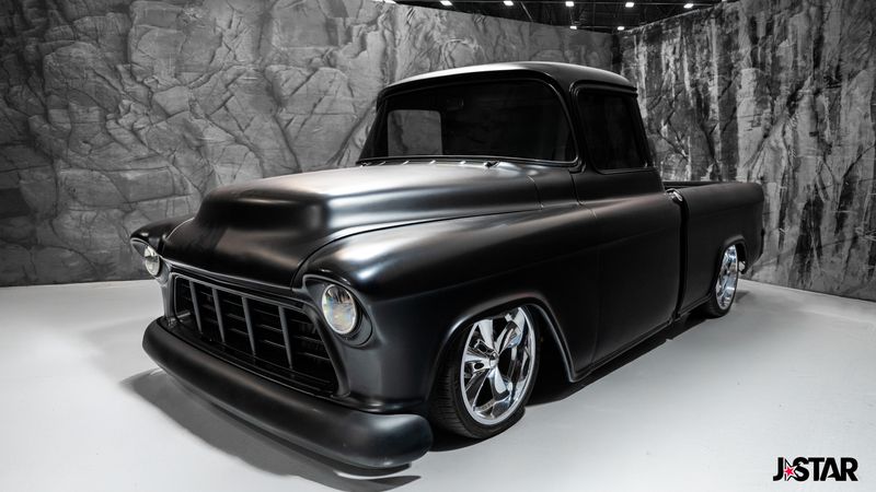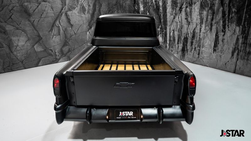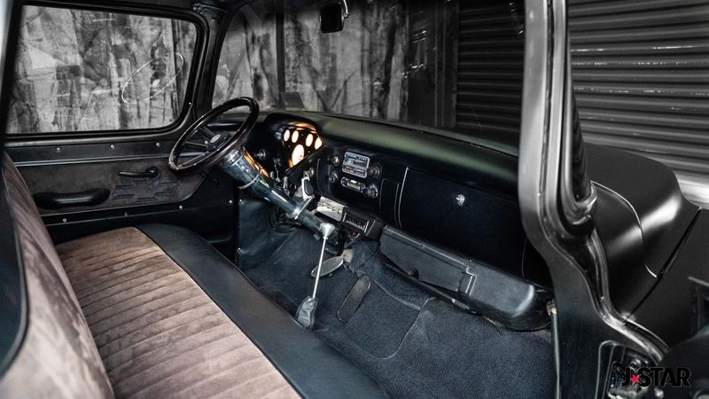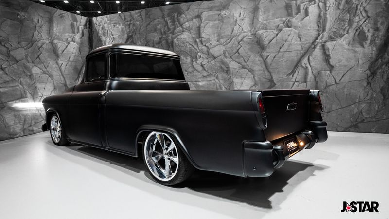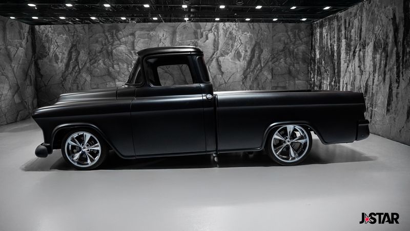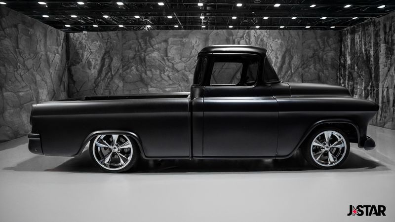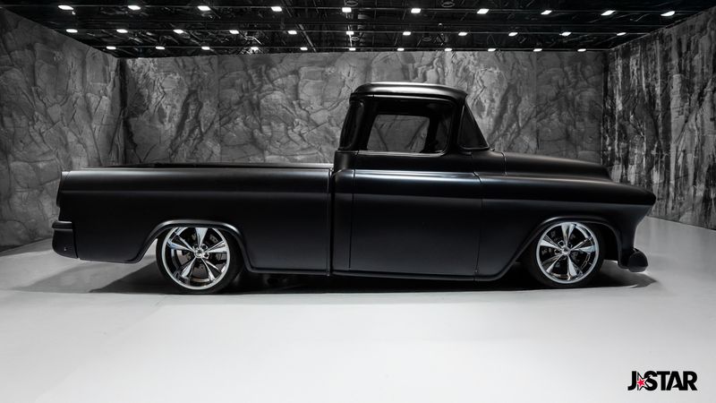 1956 Satin Black Chevrolet 3100 CAMEO Full custom build. LS3 Engine, with less than 2,000 miles, (entire drivetrain less than 2,000 miles) 400 Turbo transmission, 9 inch Ford Rear End, Wilwood Disk Brakes on all corners with cross drilled rotors, Wilwood Master Cylinder, power steering. Engine set up for A/C. Body Shaved - Custom Satin Black Paint - Real "Boyd" Wheels - Full air bag suspension - front and back - side to side - Dolphin digital sweep white face gauges - Custom suede interior - Custom Maple Wood cut for this truck - Power Windows with old school handles - Aluminum radiator, Electric puller fan, Cool Flex Water lines, Serpentine belt system, Powder coated pully and brackets, CVF alternator and aluminum A/C Compressor, Fi Tech Fuel Injection System, Aluminum Valve Covers, Automatic transmission, tilt steering,