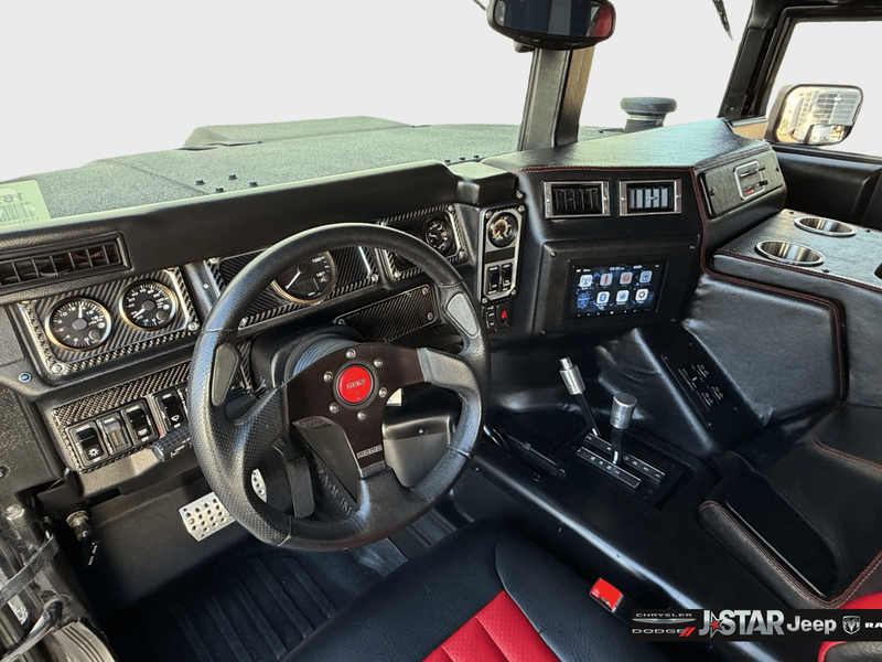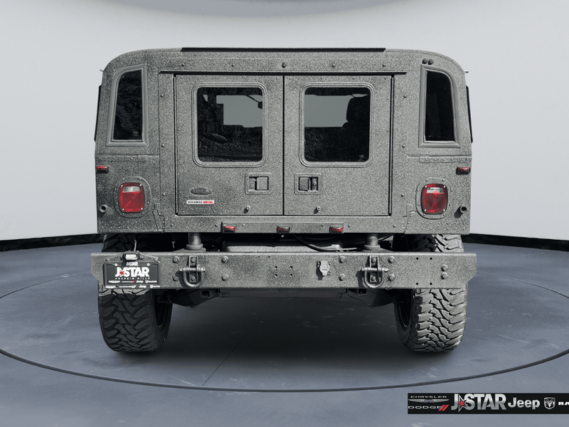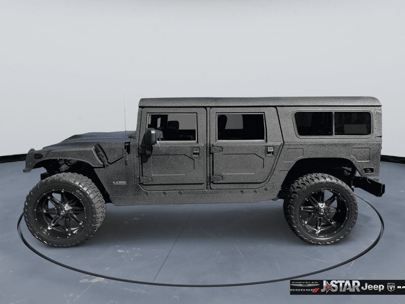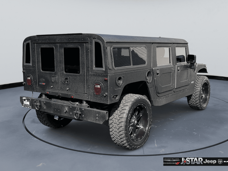 2001 Hummer H1 Enclosed 4WD is well equipped and includes these features and benefits: 16.5'' Black Steel Wheels, 4 Speakers, 4-Wheel Disc Brakes, ABS brakes, Air Conditioning, AM/FM radio, Cassette, Cloth Seat Trim, Delco Sound System, Driver's Seat Mounted Armrest, Four wheel independent suspension, Front anti-roll bar, Front Bucket Seats, Front reading lights, Illuminated entry, Low tire pressure warning, Panic alarm, Passenger seat mounted armrest, Power steering, Power windows, Rear air conditioning, Rear audio controls, Rear reading lights, Remote keyless entry, Speed-sensing steering, Tachometer, Traction control, Voltmeter, and Weather band radio.