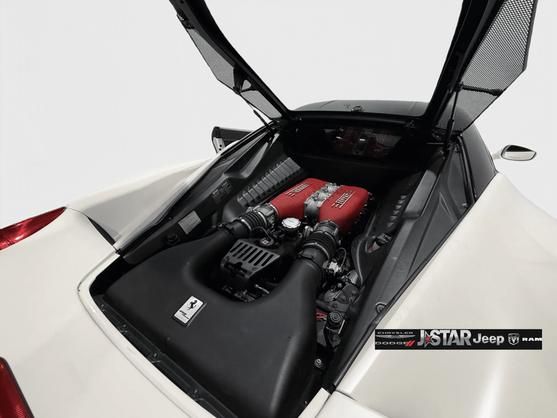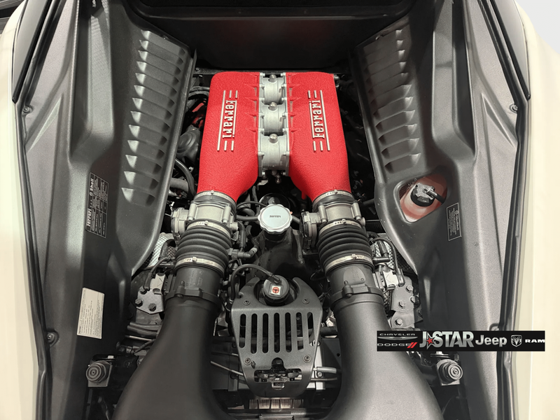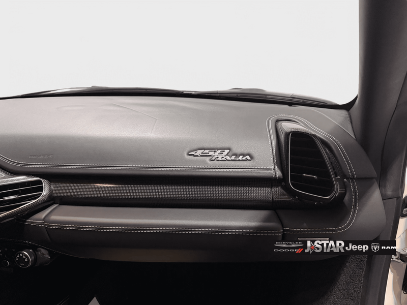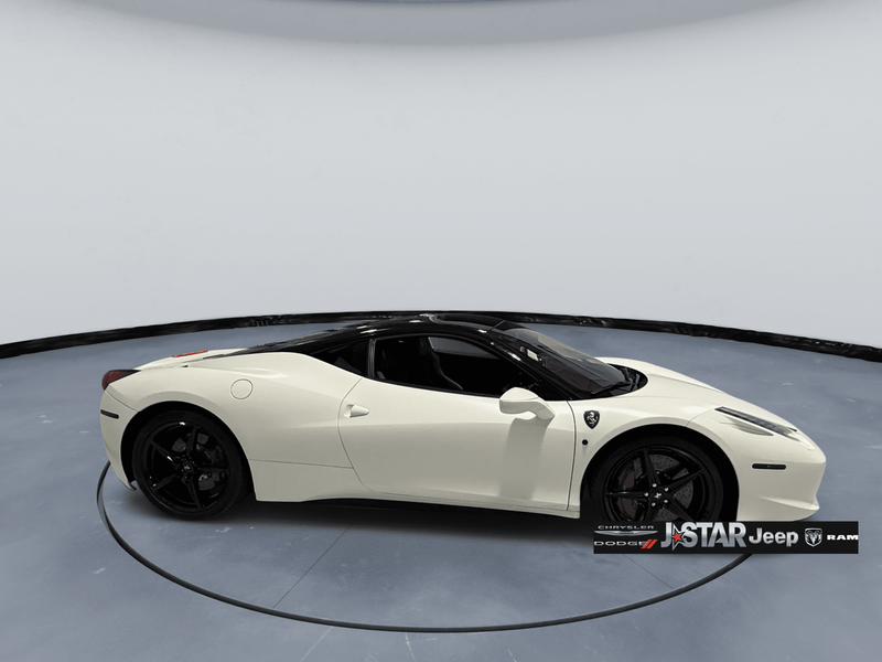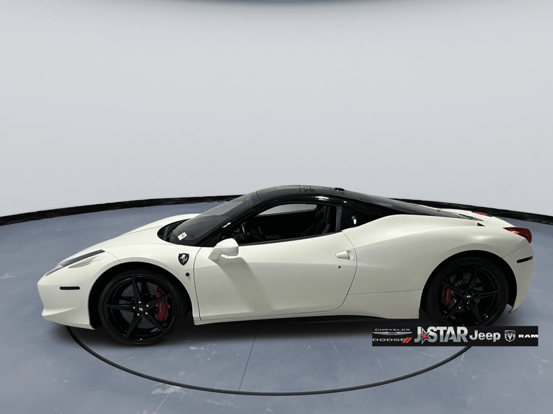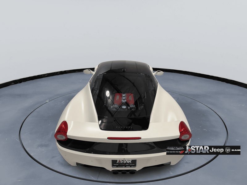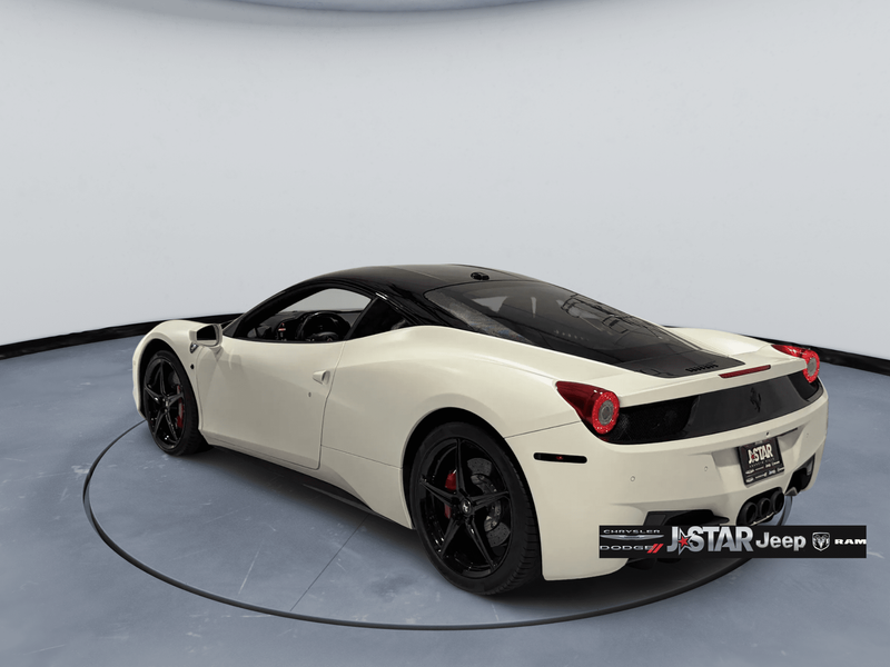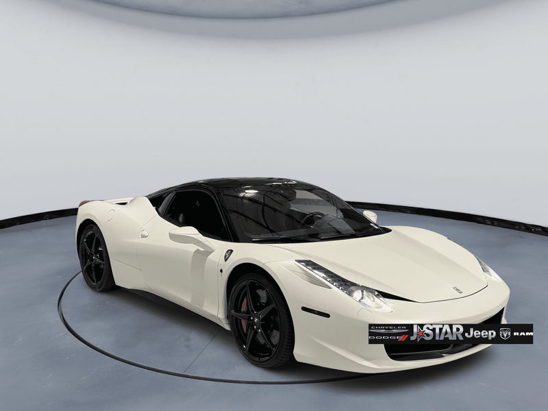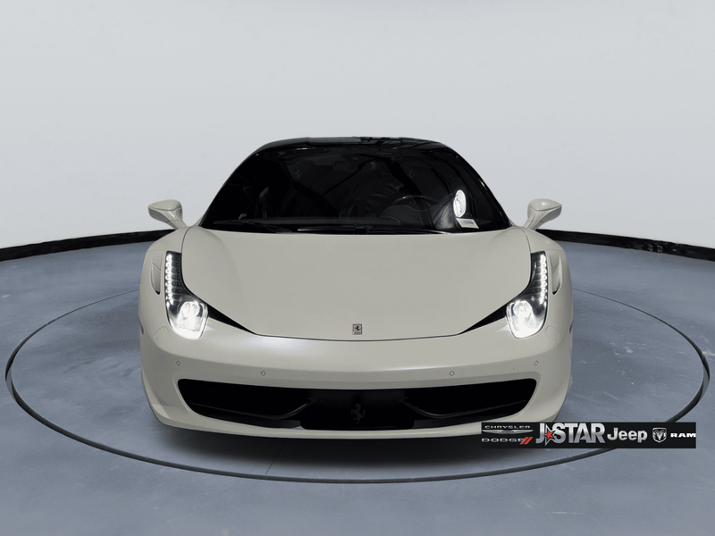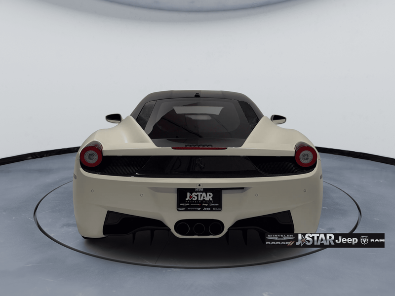 2012 Ferrari 458 Italia RWD is well equipped and includes these features and benefits: 20'' Painted Alloy Wheels, 4-Wheel Disc Brakes, 6 Speakers, ABS brakes, Adaptive suspension, Air Conditioning, Alloy wheels, AM/FM radio, Automatic temperature control, Bumpers: body-color, CD player, Ceramic disc brakes: front and rear, Delay-off headlights, Driver door bin, Dual front impact airbags, Dual front side impact airbags, Electronic Stability Control, Four wheel independent suspension, Front anti-roll bar, Front Bucket Seats, Front Center Armrest, Front dual zone A/C, Front reading lights, Fully automatic headlights, Headlight cleaning, Heated door mirrors, High intensity discharge headlights: Bi-Xenon, Illuminated entry, Leather Seat Trim, Leather steering wheel, Low tire pressure warning, Outside temperature display, Passenger cancellable airbag, Passenger door bin, Power door mirrors, Power steering, Power windows, Radio data system, Radio: AM/FM/MP3/USB/6-Disc CD w/30GB Hard Disc Drive, Rain sensing wipers, Rear anti-roll bar, Rear fog lights, Rear window defroster, Remote keyless entry, Security system, Speed-sensing steering, Spoiler, Sport Bucket Seats, Sport steering wheel, Steering wheel mounted audio controls, Tachometer, Telescoping steering wheel, Tilt steering wheel, Traction control, Variably intermittent wipers, and Voltmeter. Reviews: