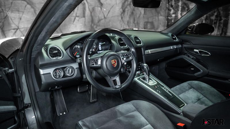 2018 Agate Grey Metallic Porsche 718 Cayman GTS RWD is well equipped and includes these features and benefits: 2-Way Sport Seats Plus, 20'' Carrera S Wheels, 4-Wheel Disc Brakes, 8 Speakers, ABS brakes, Adaptive suspension, Air Conditioning, Alloy wheels, AM/FM radio: SiriusXM, Brake assist, Bumpers: body-color, CD player, Delay-off headlights, Driver door bin, Driver vanity mirror, Dual front impact airbags, Dual front side impact airbags, DVD-Audio, Electronic Stability Control, Exterior Parking Camera Rear, Four wheel independent suspension, Front anti-roll bar, Front Bucket Seats, Front Center Armrest, Front reading lights, Fully automatic headlights, Garage door transmitter: HomeLink, Headlight cleaning, Heated door mirrors, High intensity discharge headlights: Bi-Xenon, Illuminated entry, Knee airbag, Low tire pressure warning, Occupant sensing airbag, Outside temperature display, Overhead airbag, Partial Leather Seat Trim w/Alcantara Seat Centers, Passenger door bin, Passenger vanity mirror, Porsche Communication Management, Power door mirrors, Power driver seat, Power passenger seat, Power steering, Power windows, Radio data system, Rear anti-roll bar, Rear window defroster, Remote keyless entry, Security system, Speed control, Spoiler, Sport steering wheel, Tachometer, Telescoping steering wheel, Tilt steering wheel, Traction control, Trip computer, and Variably intermittent wipers. Awards:
