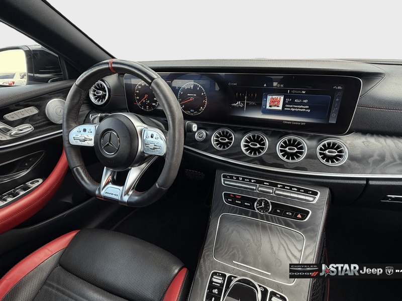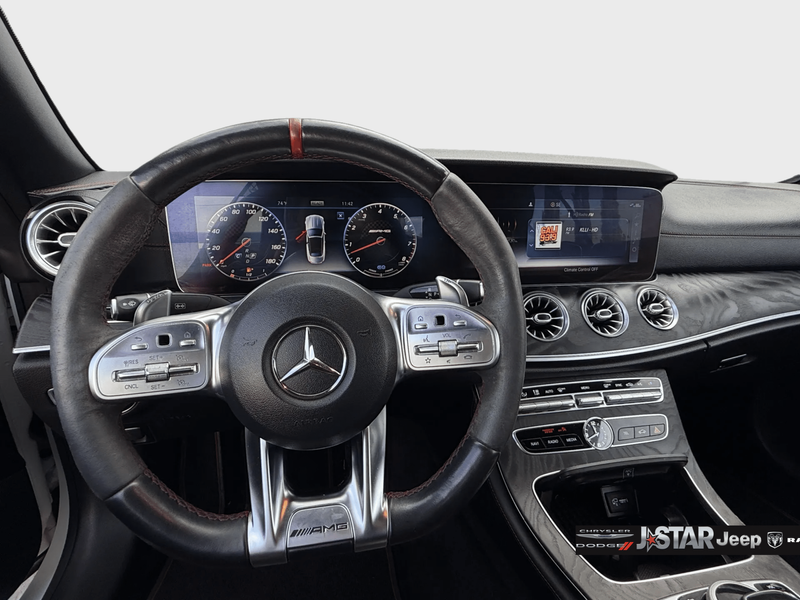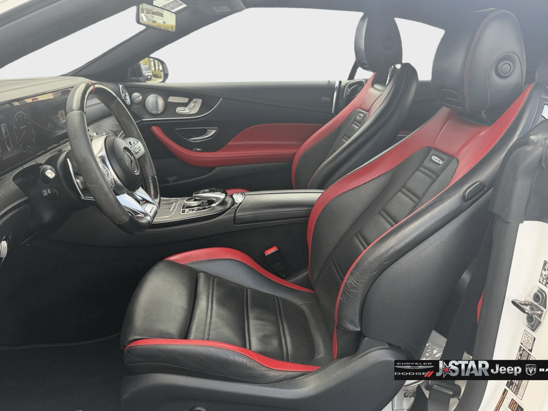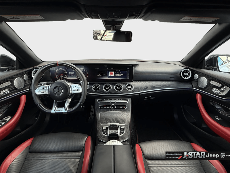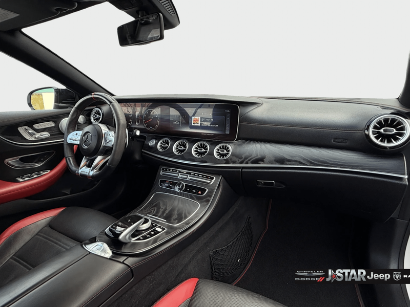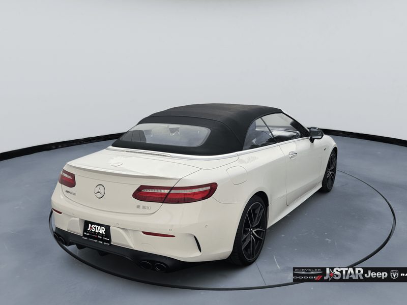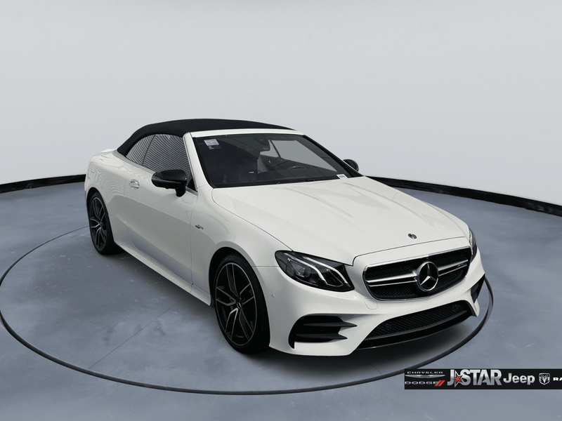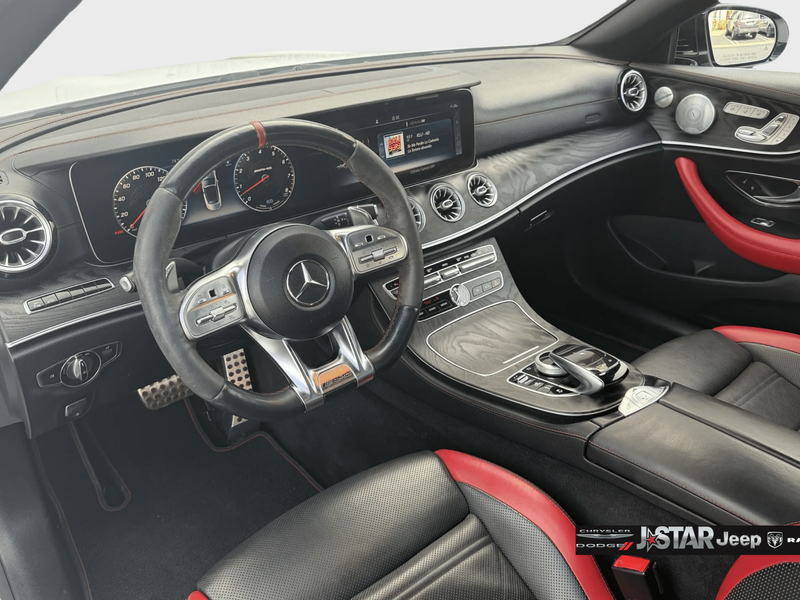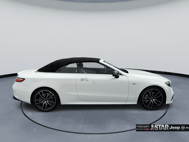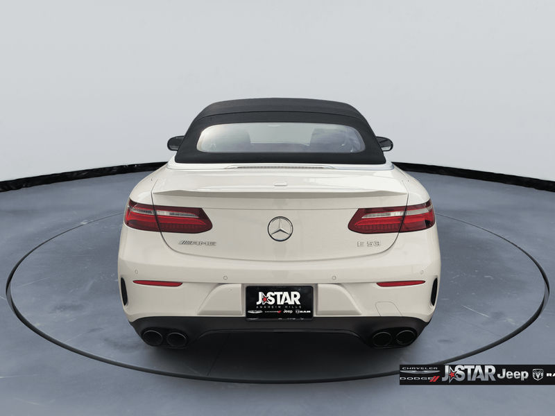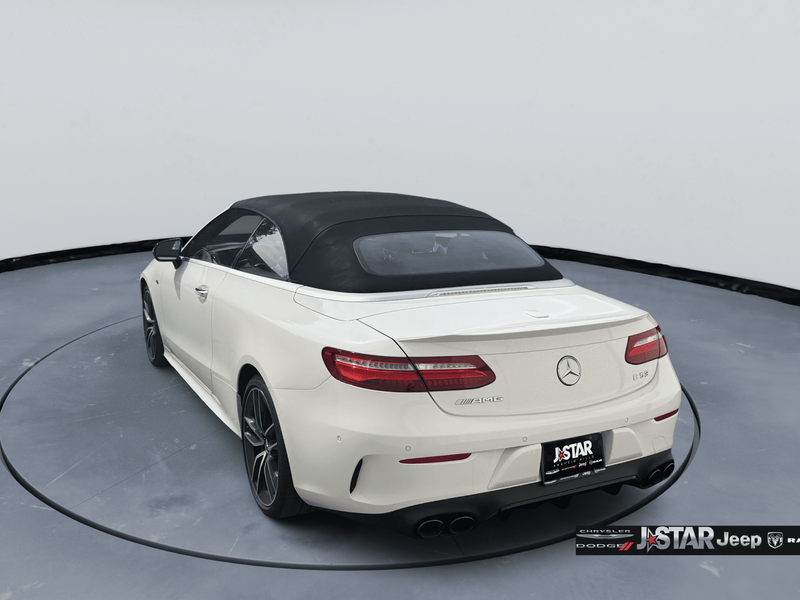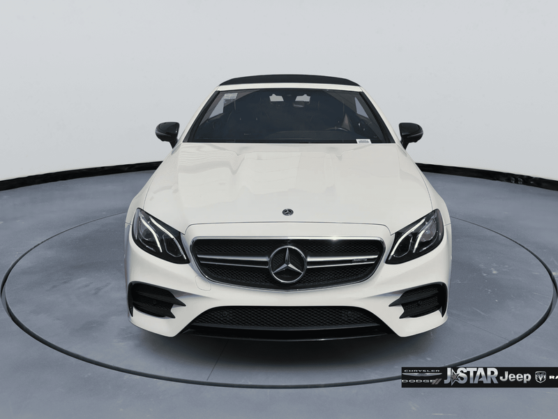 2019 Polar White Mercedes-Benz E-Class E 53 AMG AWD is well equipped and includes these features and benefits: AMG Night Package (AMG Exterior Night Styling), Parking Assistance Package (Active Parking Assist, Front Mud Flaps, and Surround View System), 4MATIC, 13 Speakers, 4-Wheel Disc Brakes, ABS brakes, Adaptive suspension, Air Conditioning, Alloy wheels, AM/FM radio: SiriusXM, AMG Nappa/DINAMICA Performance Steering Wheel, AMG Performance Exhaust System, AMG Track Pace App, Anti-whiplash front head restraints, Apple CarPlay/Android Auto, Auto tilt-away steering wheel, Auto-dimming door mirrors, Auto-dimming Rear-View mirror, Auto-leveling suspension, Automatic temperature control, Black Headliner, Black SoftTop, Brake assist, Bumpers: body-color, Burmester Surround Sound System, Center Console in Natural Grain Black Ash Wood, Convertible roof lining, Convertible roof wind blocker, Delay-off headlights, DINAMICA/MB-Tex Upholstery, Driver door bin, Driver vanity mirror, Dual front impact airbags, Dual front side impact airbags, eCall-Emergency System, Electronic Stability Control, Emergency communication system: eCall Emergency System, Extended Mobility Tires, Exterior Parking Camera Rear, Four wheel independent suspension, Front anti-roll bar, Front Bucket Seats, Front Center Armrest, Front dual zone A/C, Front reading lights, Fully automatic headlights, Garage door transmitter: Homelink, Genuine wood console insert, Genuine wood dashboard insert, Genuine wood door panel insert, Glass rear window, HD Radio w/Sirius Satellite Radio, Head restraints memory, Heated & Ventilated Front Seats, Heated door mirrors, Heated Front Seats, Heated front seats, Heated Steering Wheel, Illuminated entry, Integrated roll-over protection, Knee airbag, Leather Shift Knob, Live Traffic, Low tire pressure warning, Memory seat, Navigation System, NFC Wireless Charging, Occupant sensing airbag, Outside temperature display, Overhead airbag, Overhead console, Panic alarm, Passenger door bin, Passenger vanity mirror, Power adjustable front head restraints, Power convertible roof, Power door mirrors, Power driver seat, Power Front Seats, Power passenger seat, Power Passenger Seat w/Memory, Power steering, Power windows, Premium audio system: COMAND, Radio data system, Radio: COMAND Navigation, Rain sensing wipers, Rear anti-roll bar, Rear side impact airbag, Rear window defroster, Remote keyless entry, Security system, SiriusXM Radio, Speed control, Speed-sensing steering, Split folding rear seat, Spoiler, Sport steering wheel, Steering wheel memory, Steering wheel mounted audio controls, Tachometer, Telescoping steering wheel, Tilt steering wheel, Traction control, Trip computer, Turn signal indicator mirrors, Variably intermittent wipers, Weather band radio, Wheel Locking Bolts, Wheels: 19'' AMG Twin 5-Spoke w/Black Accents, and Wheels: 20'' AMG Twin 5-Spk w/Black Accents. 4MATIC.