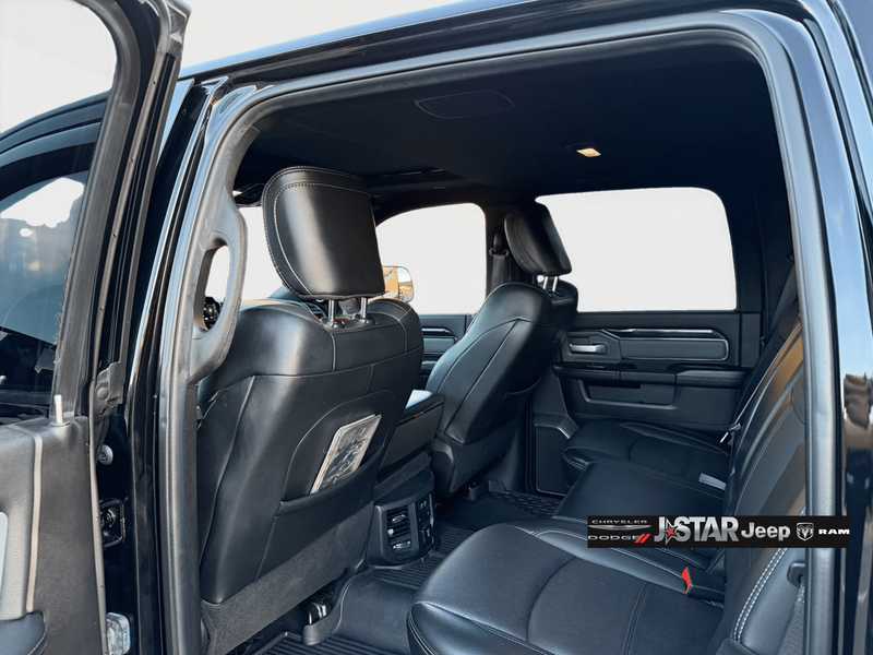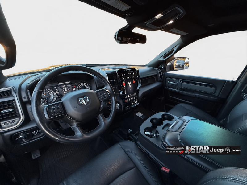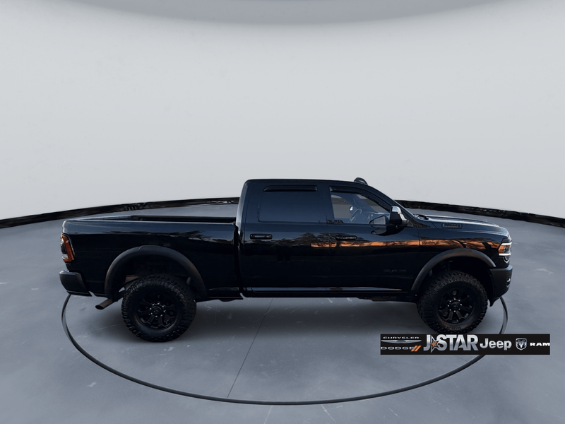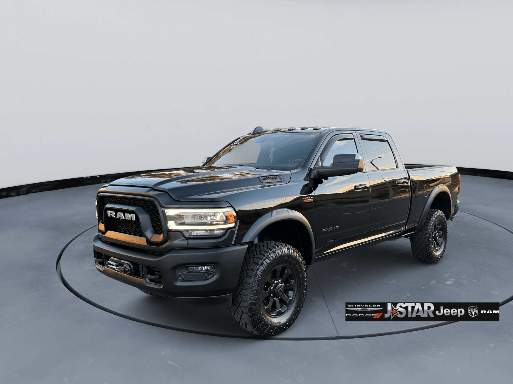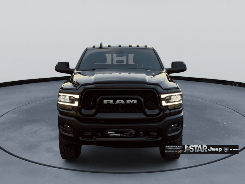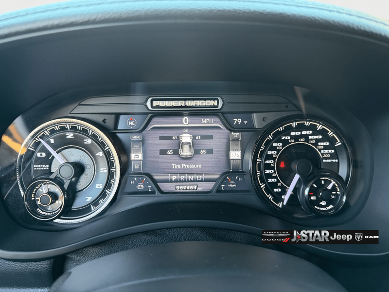 2019 Diamond Black Crystal Pearlcoat Ram 2500 Power Wagon 4WD is well equipped and includes these features and benefits: Level 2 equipment group, Bed Utility Group (Deployable Bed Step, LED Bed Lighting, and Spray In Bedliner), Power Wagon Level 2 Equipment Group (#1 Seat Foam Cushion, 115V Auxiliary Rear Power Outlet, 2 Way Rear Headrest Seat, 2nd Row In Floor Storage Bins, 4 Way Front Headrests, 40/20/40 Split Bench Seat, 9 Alpine Speakers w/Subwoofer, Air Conditioning ATC w/Dual Zone Control, Auto High Beam Headlamp Control, Dual Remote USB Port, Exterior Mirrors w/Memory, Foam Bottle Insert (Door Trim Panel), Folding Flat Load Floor Storage, Front Armrest w/Cupholders, Front Center Seat Cushion Storage, Front Door Accent Lighting, Front Seat Back Map Pockets, Heated Front Seats, Heated Second Row Seats, Heated Steering Wheel, High Back Seats, Leather Trim 40/20/40 Bench Seat, LED Dome Lamp w/On/Off Switch, LED Interior Lighting, Media Hub w/2 Charge Only USBs, Mirror-Mounted Aux Reverse Lamps, Overhead LED Lamps, Power 2-Way Driver Lumbar Adjust, Power 2-Way Passenger Lumbar Adjust, Power Adjust 8-Way Front Passenger Seat, Power Adjustable Convex Aux Mirrors, Power Adjustable Pedals w/Memory, Power Black Tow Mirrors w/Convex Spotter & Memory, Premium Overhead Console, Radio/Driver Seat/Mirrors/Pedals Memory, Rain Sensitive Windshield Wipers, Rear 60/40 Folding Seat, Rear Door Accent Lighting, Remote Proximity Keyless Entry, Remote Start System, Remote Tailgate Release, Security Alarm, Single Disc Remote CD Player, Sun Visors w/Illuminated Vanity Mirrors, Universal Garage Door Opener, and Ventilated Front Seats), Quick Order Package 2ZP Power Wagon, Towing Technology Group (CTR Stop Lamp w/Cargo View Camera, Surround View Camera System, and Trailer Reverse Guidance), 1-Year SiriusXM Guardian Trial, 12'' Touchscreen Display, 17 Speaker High Performance Audio, 4-Wheel Disc Brakes, 4.10 Axle Ratio, 5-Year SiriusXM Traffic Service, 5-Year SiriusXM Travel Link Service, 6 Speakers, ABS brakes, Air Conditioning, Alloy wheels, AM/FM radio: SiriusXM, Apple CarPlay, Auto-dimming Rear-View mirror, Black Exterior Mirrors, Black Tubular Side Steps, Black Wheel Center Hub, Blind Spot & Cross Path Detection, Block heater, Brake assist, Cloth Power Bench Seat w/Emboss Tread Pattern, Compass, Delay-off headlights, Disassociated Touchscreen Display, Driver door bin, Dual front impact airbags, Dual front side impact airbags, Electronic Stability Control, For Details Visit DriveUconnect.com, Front anti-roll bar, Front Center Armrest w/Storage, Front fog lights, Front reading lights, Fully automatic headlights, Google Android Auto, GPS Antenna Input, GPS Navigation, HD Radio, Heated door mirrors, Illuminated entry, Integrated Voice Command w/Bluetooth, Leather steering wheel, Low tire pressure warning, Manufacturer's Statement of Origin, Occupant sensing airbag, Outside temperature display, Overhead airbag, Overhead console, Panic alarm, ParkView Rear Back-Up Camera, Passenger door bin, Passenger vanity mirror, Power door mirrors, Power driver seat, Power steering, Power Sunroof, Power windows, Powerwagon Badging Delete, Radio data system, Radio: Uconnect 12.0 w/Navigation, Radio: Uconnect 4 w/8.4'' Display, Rain sensing wipers, Rear anti-roll bar, Rear Backup Alarm, Rear seat center armrest, Rear step bumper, Rear window defroster, Remote keyless entry, Selectable Tire Fill Alert, SiriusXM Satellite Radio, SiriusXM Traffic Plus, SiriusXM Travel Link, SiriusXM w/360L, Speed control, Split folding rear seat, Steering wheel mounted audio controls, Tachometer, Tilt steering wheel, Traction control, Trip computer, Turn signal indicator mirrors, USB Host Flip, Variably intermittent wipers, Vendor Painted Cargo Box Tracking, Voltmeter, Wheels: 17'' x 8.0'' Black Painted Aluminum, and Wheels: 17'' x 8.0'' Matte Black/PolisheD.