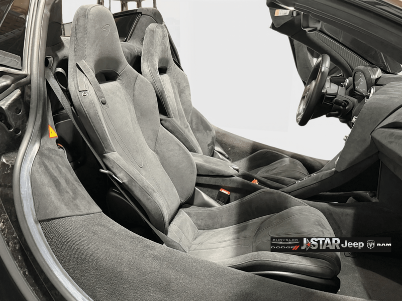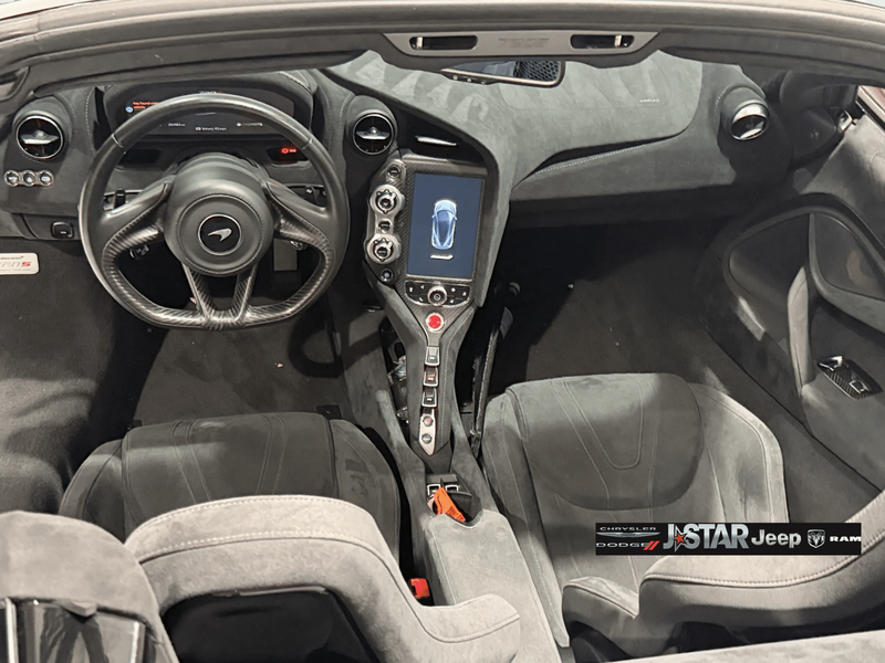 2020 McLaren 720S Spider RWD is well equipped and includes these features and benefits: ABS brakes, Alloy wheels, Compass, Electronic Stability Control, Front dual zone A/C, Heated door mirrors, Illuminated entry, Low tire pressure warning, Navigation System, Remote keyless entry, Traction control, 4 Speakers, 4-Wheel Disc Brakes, Adaptive suspension, Air Conditioning, AM/FM radio: SiriusXM, Auto-dimming Rear-View mirror, Auto-leveling suspension, Automatic temperature control, Brake assist, Bumpers: body-color, Ceramic disc brakes: front and rear, Convertible HardTop, Convertible roof lining, Convertible roof wind blocker, Delay-off headlights, Door auto-latch, Driver door bin, Driver vanity mirror, Dual front impact airbags, Dual front side impact airbags, Exterior Parking Camera Rear, Four wheel independent suspension, Front anti-roll bar, Front Bucket Seats, Front Center Armrest, Front reading lights, Fully automatic headlights, Glass rear window, Integrated roll-over protection, Knee airbag, Occupant sensing airbag, Outside temperature display, Overhead console, Passenger door bin, Passenger vanity mirror, Power convertible roof, Power door mirrors, Power driver seat, Power steering, Power windows, Radio data system, Radio: AM/FM/DAB, Rain sensing wipers, Rear anti-roll bar, Rear fog lights, Rear window defroster, Security system, Speed control, Speed-sensing steering, Spoiler, Sport steering wheel, Tachometer, Telescoping steering wheel, Tilt steering wheel, Trip computer, Voltmeter, and Wheels: 19'' x 9'' Fr & 20'' x 11'' Rr 5 Twin-Spoke. ABS brakes, Alloy wheels, Compass, Electronic Stability Control, Front dual zone A/C, Heated door mirrors, Illuminated entry, Low tire pressure warning, Navigation System, Remote keyless entry, Traction control.