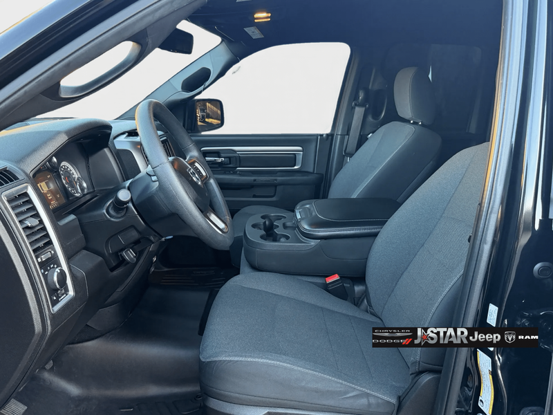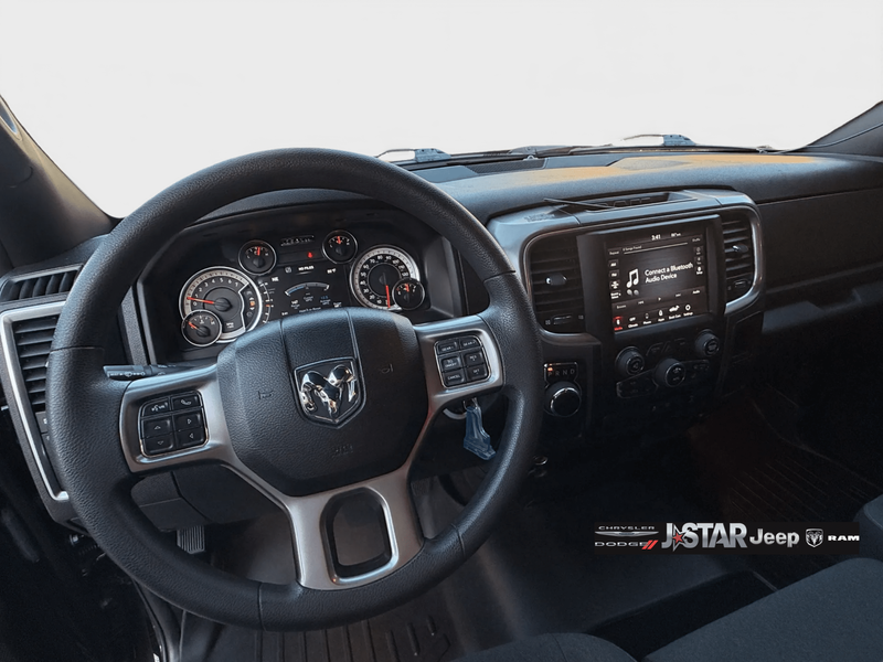 2021 Diamond Black Crystal Pearlcoat Ram 1500 Classic Warlock RWD is well equipped and includes these features and benefits: Electronics Group (1-Year SiriusXM Guardian Trial, 8.4'' Touchscreen Display, Air Conditioning ATC w/Dual Zone Control, Apple CarPlay, Cluster 7.0'' TFT Color Display, Google Android Auto, HD Radio, Media Hub (2 USB, AUX), Radio: Uconnect 4C w/8.4'' Display, and USB Host Flip), Quick Order Package 27F Warlock (Bi-Function Halogen Projector Headlamps, Black Door Handles, Black Exterior Truck Badging, Black Grille w/RAM Lettering, Black Headlamp Filler Panel, Black Powder Coated Front Bumper, Black Powder Coated Rear Bumper, Black RAM Head Tailgate Badge, Black Wheel Flares, Dual Rear Exhaust w/Bright Tips, Front Wheel Well Liners, ParkSense Rear Park Assist System, Semi-Gloss Black Hub, Sport Tail Lamps, Warlock, Warlock Interior Accents, and Wheels: 20'' x 9'' Semi-Gloss Black Aluminum), 17'' x 7'' Aluminum Wheels, 3.21 Rear Axle Ratio, 4-Wheel Disc Brakes, 40/20/40 Split Bench Seat, 6 Speakers, ABS brakes, Active Grille Shutters, Air Conditioning, Alloy wheels, AM/FM radio: SiriusXM, Black Exterior Mirrors, Brake assist, Bumpers: chrome, Center Hub, Charge Only Remote USB Port, Cloth 40/20/40 Bench Seat, Compass, Delay-off headlights, Driver door bin, Dual front impact airbags, Dual front side impact airbags, Electronic Shift, Electronic Stability Control, Exterior Mirrors w/Heating Element, Front anti-roll bar, Front Armrest w/3 Cupholders, Front Center Armrest w/Storage, Front License Plate Bracket, Front reading lights, Front wheel independent suspension, Fully automatic headlights, GPS Antenna Input, Heated door mirrors, Illuminated entry, Integrated Voice Command w/Bluetooth, Low tire pressure warning, MOPAR Front & Rear Rubber Floor Mats, Occupant sensing airbag, Outside temperature display, Overhead airbag, Overhead console, Panic alarm, ParkView Rear Back-Up Camera, Passenger door bin, Passenger vanity mirror, Power door mirrors, Power steering, Power windows, Radio data system, Radio: Uconnect 3 w/5'' Display, Rear anti-roll bar, Rear step bumper, Remote keyless entry, Rotary Shifter-Black, Speed control, Tachometer, Tilt steering wheel, Tip Start, Traction control, Trip computer, Variably intermittent wipers, and Voltmeter.