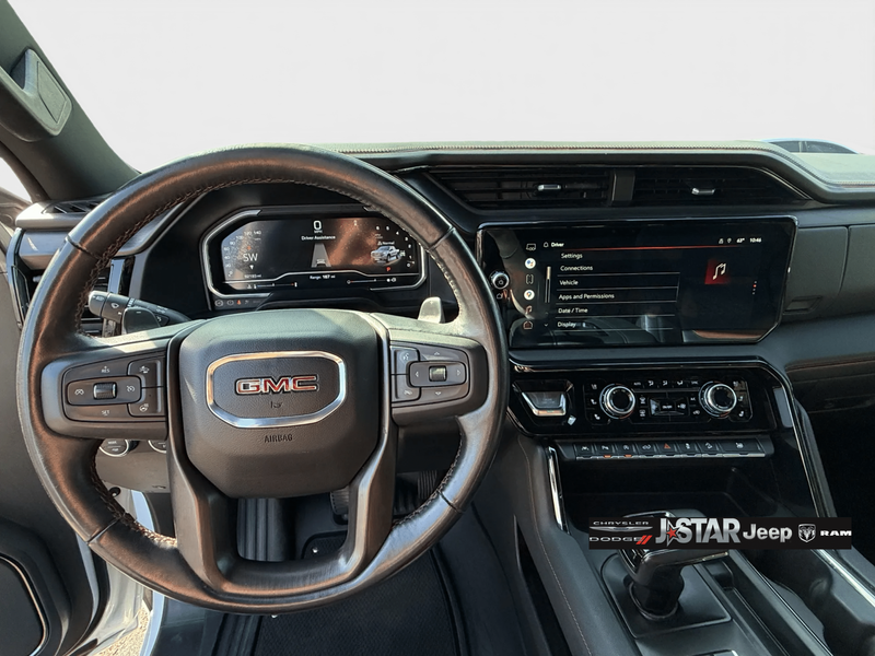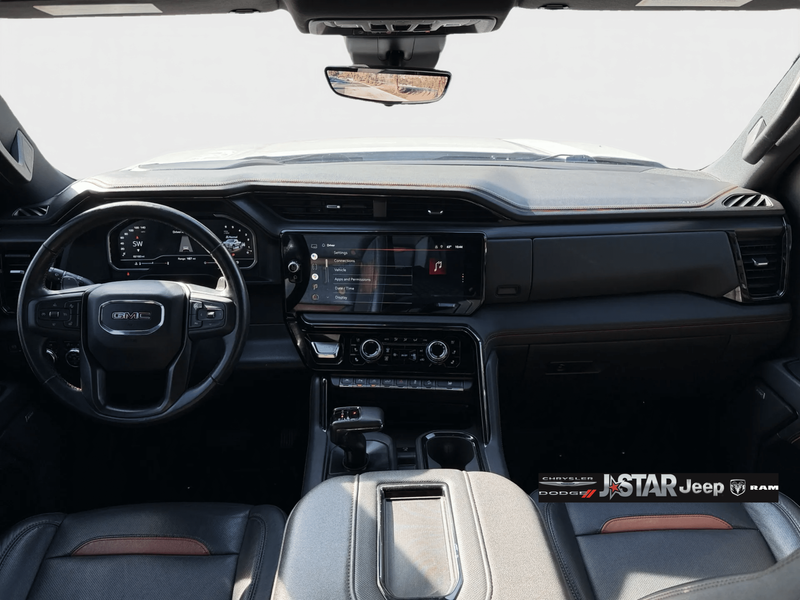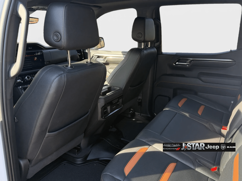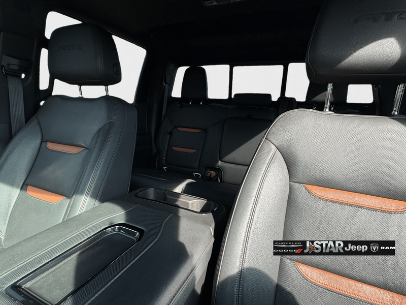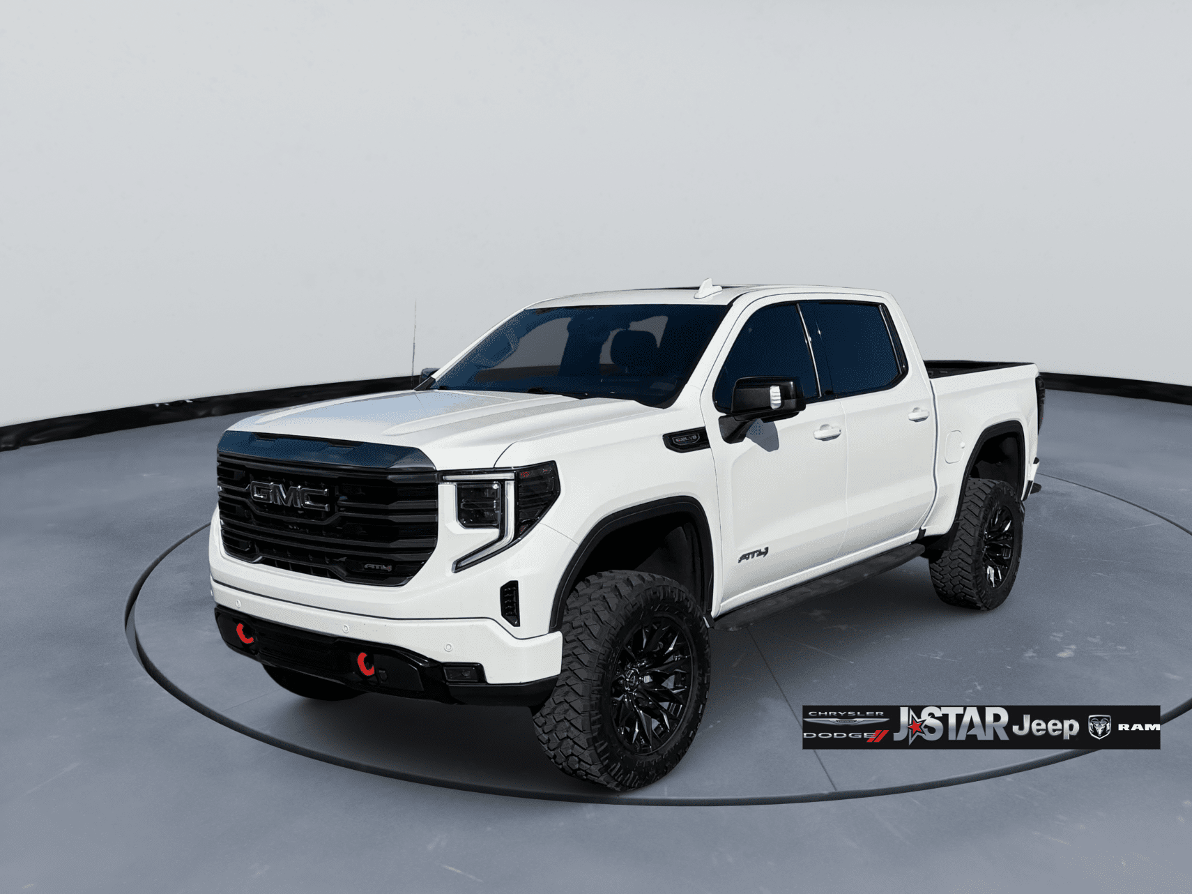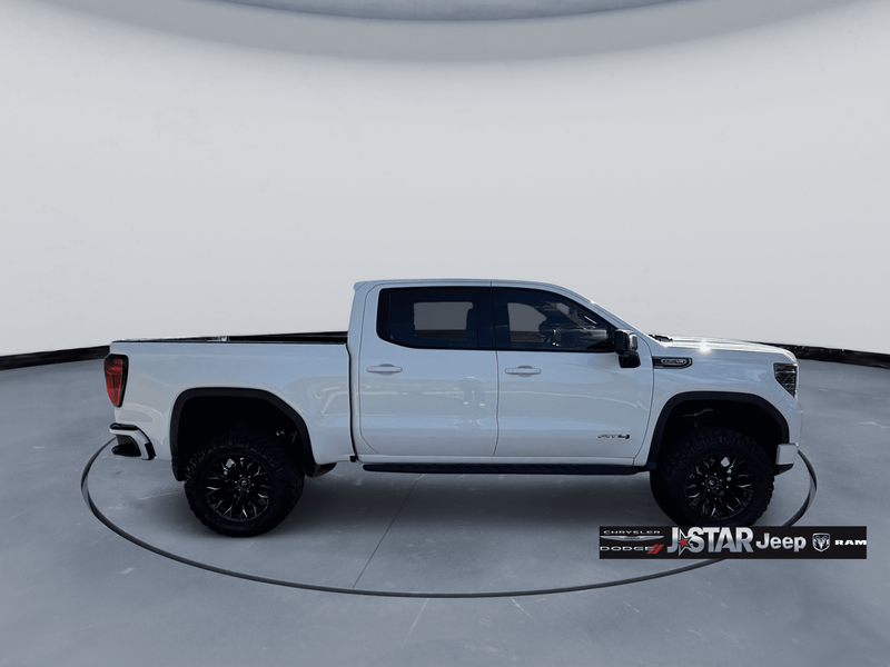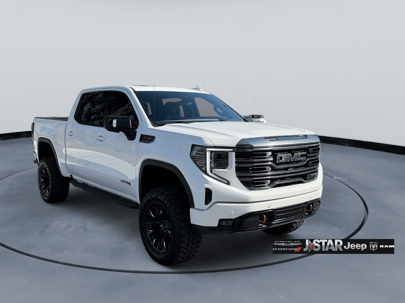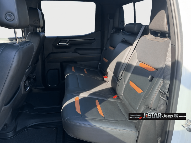 2022 White GMC Sierra 1500 AT4 4WD is well equipped and includes these features and benefits: Trailering Package (Hitch Guidance), 10-Speed Automatic, 4WD, Leather, 10-Way Power Driver Seat Adjuster w/Lumbar, 10-Way Power Passenger Seat Adjuster w/Lumbar, 120-Volt Bed Mounted Power Outlet, 120-Volt Instrument Panel Power Outlet, 18'' x 8.5'' Machined Aluminum Wheels, 2 Charge/Data USB Ports Inside Center Console, 2 Type-C Charge-Only Rear USB Ports, 2 USB Ports, 220 Amp Alternator, 3.23 Rear Axle Ratio, 4-Wheel Disc Brakes, 7 Speakers, ABS brakes, Air Conditioning, Alloy wheels, AM/FM radio: SiriusXM with 360L, Apple CarPlay/Android Auto, Auto High-beam Headlights, Auto-dimming door mirrors, Auto-dimming Rear-View mirror, Auto-Locking Rear Differential, Automatic Emergency Braking, Automatic temperature control, Black Chrome Header & Grille Insert Bars, Block heater, Brake assist, Buckle to Drive, Bumpers: body-color, Color-Keyed Carpeting Floor Covering, Compass, Deep-Tinted Glass, Delay-off headlights, Driver door bin, Driver Memory, Driver vanity mirror, Dual front impact airbags, Dual front side impact airbags, Electric Rear-Window Defogger, Electrical Steering Column Lock, Electronic Stability Control, Emergency communication system: OnStar and GMC Connected Services capable, Engine Block Heater, Floor-Mounted Center Console, Following Distance Indicator, Forward Collision Alert, Front anti-roll bar, Front Bucket Seats, Front Center Armrest, Front dual zone A/C, Front fog lights, Front Pedestrian Braking, Front Prem Floor Liners w/Removable Carpet Insert, Front Rainsensing Wipers, Front reading lights, Front wheel independent suspension, Fully automatic headlights, GMC Connected Access Capable, HD Rear Vision Camera, Heated 2nd Row Outboard Seats, Heated door mirrors, Heated Driver & Front Outboard Passenger Seating, Heated front seats, Heated rear seats, Heated Steering Wheel, Heated steering wheel, Heavy-Duty Air Filter, Hill Descent Control, Hitch Guidance w/Hitch View, Illuminated entry, In-Vehicle Trailering App, Integrated Trailer Brake Controller, IntelliBeam Automatic High Beam On/Off, Keyless Open & Start, Lane Keep Assist w/Lane Departure Warning, LED Cargo Area Lighting, Low tire pressure warning, Memory seat, Navigation System, Occupant sensing airbag, Off-Road Suspension, OnStar & GMC Connected Services Capable, Outside temperature display, Overhead airbag, Overhead console, Panic alarm, Passenger door bin, Passenger vanity mirror, Perforated Front Leather Seat Trim, Perimeter Lighting, Power Door Locks, Power door mirrors, Power driver seat, Power Front Passenger Windows w/Express Up/Down, Power Front Windows w/Driver Express Up/Down, Power passenger seat, Power Rake & Telescoping Steering Column, Power Rear Windows w/Express Down, Power steering, Power windows, Premium audio system: GMC Infotainment System, Premium Bose 7-Speaker Sound System, Push Button Start, Radio data system, Radio: Premium GMC Infotainment Audio System, Rain sensing wipers, Rear Prem Floor Liners w/Removable Carpet Insert, Rear reading lights, Rear seat center armrest, Rear step bumper, Rear Wheelhouse Liners, Rear window defroster, Red Recovery Hooks, Remote keyless entry, Remote Vehicle Starter System, Safety Alert Seat, Security system, SiriusXM w/360L, Speed control, Speed-sensing steering, Split folding rear seat, Spray-On Pickup Bed Liner w/AT4 Logo, Steering Wheel Audio Controls, Steering wheel mounted audio controls, Tachometer, Telescoping steering wheel, Theft Deterrent System (Unauthorized Entry), Tilt steering wheel, Traction control, Trip computer, Variably intermittent wipers, Ventilated Driver & Front Passenger Seats, Ventilated front seats, Voltmeter, Wi-Fi Hotspot Capable, Wireless Charging, and Wireless Phone Projection. 10-Speed Automatic, 4WD, Leather.
