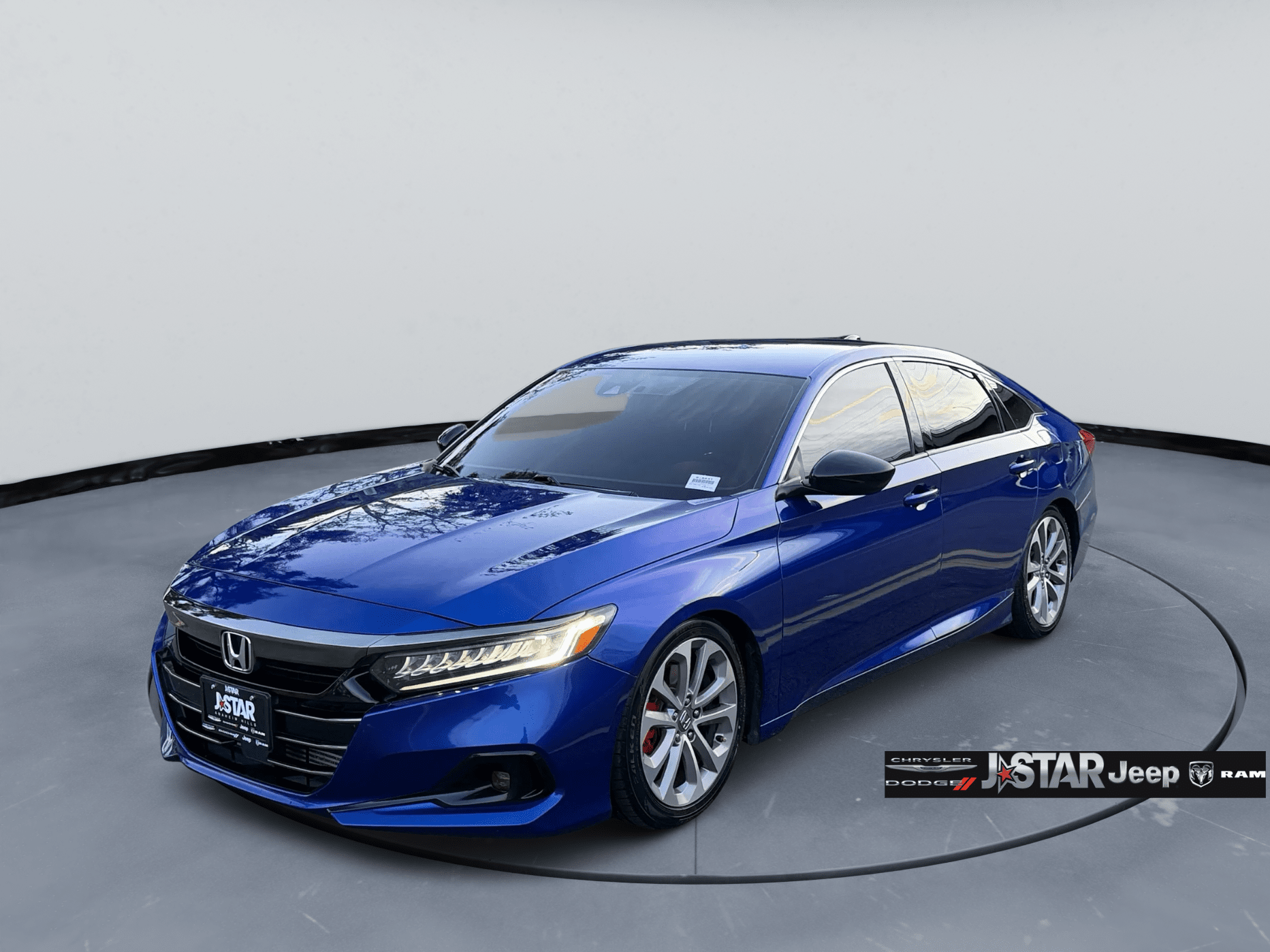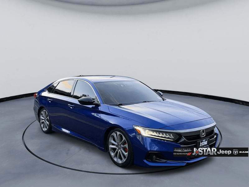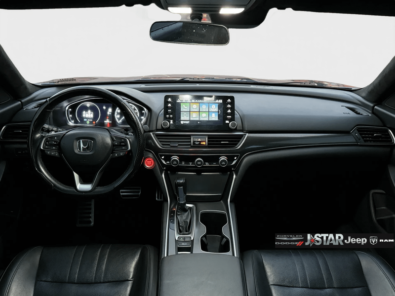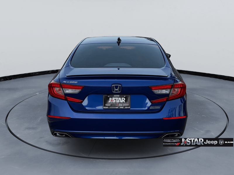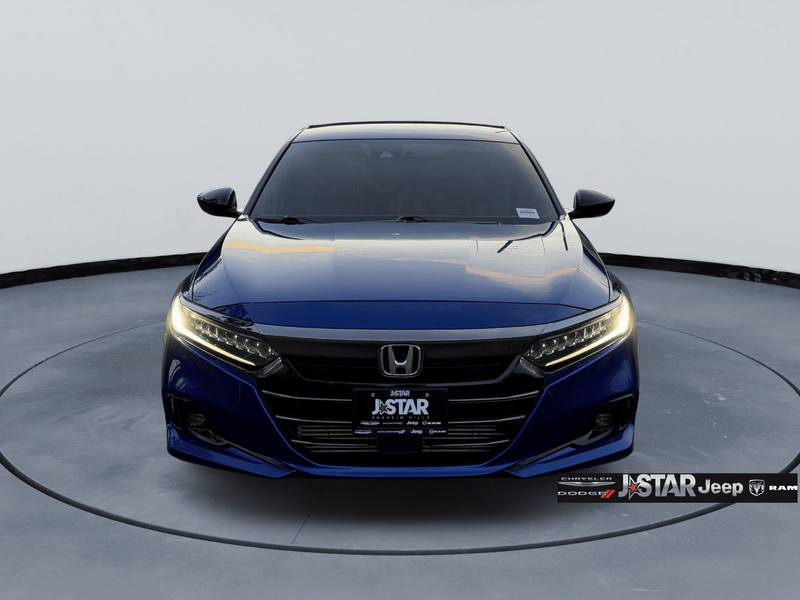 2022 Blue Honda Accord Sport Special Edition FWD is well equipped and includes these features and benefits: Leather, 4-Wheel Disc Brakes, 8 Speakers, ABS brakes, Adaptive Cruise Control: Adaptive Cruise Control (ACC) with Low-Speed Follow, Air Conditioning, Alloy wheels, AM/FM radio, Apple CarPlay/Android Auto, Auto High-beam Headlights, Automatic temperature control, Brake assist, Bumpers: body-color, Delay-off headlights, Driver door bin, Driver vanity mirror, Dual front impact airbags, Dual front side impact airbags, Electronic Stability Control, Emergency communication system: HondaLink, Exterior Parking Camera Rear, Forward collision: Collision Mitigation Braking System (CMBS) + FCW mitigation, Four wheel independent suspension, Front anti-roll bar, Front Bucket Seats, Front Center Armrest, Front dual zone A/C, Front fog lights, Front reading lights, Fully automatic headlights, Heated door mirrors, Heated Front Bucket Seats, Heated front seats, Illuminated entry, Knee airbag, Lane Departure Warning System, Leather Shift Knob, Leather steering wheel, Low tire pressure warning, Occupant sensing airbag, Outside temperature display, Overhead airbag, Overhead console, Panic alarm, Passenger door bin, Passenger vanity mirror, Perforated Leather Seat Trim, Power door mirrors, Power driver seat, Power passenger seat, Power steering, Power windows, Radio data system, Radio: 180-Watt AM/FM Audio System, Rear anti-roll bar, Rear seat center armrest, Rear window defroster, Remote keyless entry, Security system, Speed control, Speed-sensing steering, Speed-Sensitive Wipers, Split folding rear seat, Spoiler, Steering wheel mounted audio controls, Tachometer, Telescoping steering wheel, Tilt steering wheel, Traction control, Trip computer, Variably intermittent wipers, and Wheels: 19'' Machine-Finished Alloy w/Black Inserts. Leather.