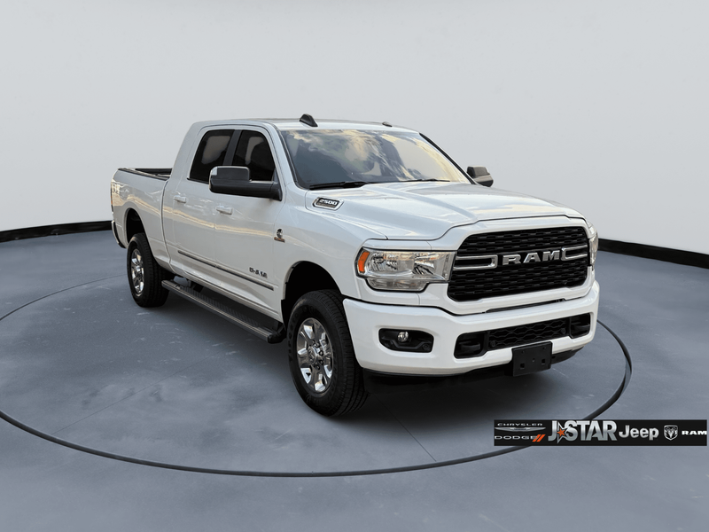 2022 Bright White Clearcoat Ram 2500 Big Horn 4WD is well equipped and includes these features and benefits: Level An Equipment Group (2 Way Rear Headrest Seat, 4 Way Front Headrests, 40/20/40 Split Bench Seat, Auto-Dimming Rear-View Mirror, Center Hub, Center Stack Storage Drawer, Cloth 40/20/40 Premium Bench Seat, Dual Glove Boxes, Foam Bottle Insert (Door Trim Panel), Footwell Courtesy Lamp, Front Armrest w/Cupholders, Front Center Seat Cushion Storage, Front Fog Lamps, Front Seat Back Map Pockets, Glove Box Lamp, Leather Wrapped Steering Wheel, Locking Lower Glove Box, Manual Adjust 4-Way Front Passenger Seat, Power 2-Way Driver Lumbar Adjust, Power Adjust 8-Way Driver Seat, Power Adjustable Pedals, Rear 60/40 Folding Seat, Rear Dome w/On/Off Switch Lamp, Steering Wheel Mounted Audio Controls, Storage Tray, Sun Visors w/Illuminated Vanity Mirrors, Universal Garage Door Opener, and Wheels: 18'' x 8.0'' Polished Aluminum), Protection Group (Tow Hooks), Quick Order Package 2HZ Big Horn, Sport Appearance Package (Black Interior Accents, Body Color Door Handles, Body Color Grille Surround, Painted Front Bumper, Painted Rear Bumper, and Sport Decal), 220 Amp Alternator, 3.73 Axle Ratio, 4-Wheel Disc Brakes, 4G LTE Wi-Fi Hot Spot, 5th Wheel/Gooseneck Towing Prep Group, 6 Speakers, 8.4'' Touchscreen Display, ABS brakes, Active Noise Control System, Air Conditioning, AM/FM radio: SiriusXM, Anti-Spin Differential Rear Axle, Apple CarPlay, Apple CarPlay/Android Auto, Brake assist, Bumpers: chrome, Cloth 40/20/40 Bench Seat, Compass, Connectivity - US/Canada, Delay-off headlights, Driver door bin, Dual front impact airbags, Dual front side impact airbags, Electronic Stability Control, Electronically Controlled Throttle, Exterior Mirrors Courtesy Lamps, Exterior Mirrors w/Heating Element, Exterior Mirrors w/Supplemental Signals, Front anti-roll bar, Front Center Armrest w/Storage, Front License Plate Bracket, Front reading lights, Fully automatic headlights, Global Telematics Box Module (TBM), Google Android Auto, GPS Antenna Input, Heated door mirrors, Illuminated entry, Integrated Center Stack Radio, Integrated Voice Command w/Bluetooth, LED Bed Lighting, Low tire pressure warning, Manufacturer's Statement of Origin, Mirror Running Lights, MOPAR Spray In Bedliner, Occupant sensing airbag, Outside temperature display, Overhead airbag, Overhead console, Panic alarm, ParkSense Front/Rear Park Assist System, ParkView Rear Back-Up Camera, Passenger door bin, Passenger vanity mirror, Power door mirrors, Power steering, Power windows, Radio data system, Radio: Uconnect 5 w/8.4'' Display, Rear anti-roll bar, Rear seat center armrest, Rear step bumper, Remote keyless entry, Selectable Tire Fill Alert, SiriusXM Radio Service, Speed control, Split folding rear seat, Tachometer, Tilt steering wheel, Tip Start, Traction control, Trailer Tow Mirrors, Trip computer, Turn signal indicator mirrors, Variably intermittent wipers, Vendor Painted Cargo Box, Vendor Painted Cargo Box Tracking, Voltmeter, and Wheels: 18'' x 8.0'' Steel Chrome Clad.