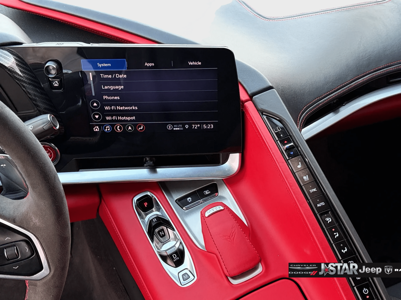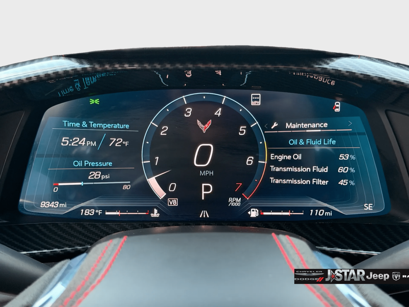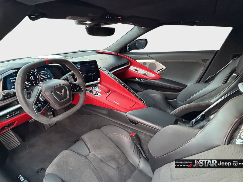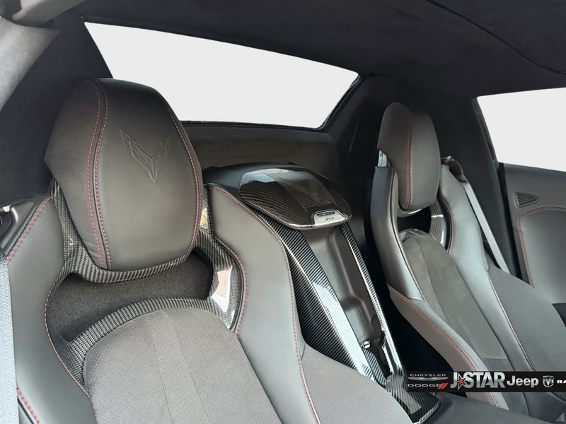 Battery Protection Package, Carbon Flash Metallic Painted Outside Mirrors (Carbon Flash Metallic-Painted Outside Mirrors), Custom Leather Wrapped Interior Package, Memory Driver & Passenger Convenience Package, Preferred Equipment Group 3LT (2 Cargo Nets, Driver Power Bolster Seat Adjuster, Electrical Theft Deterrent System, HD Front & Rear Vision Cameras, Head-Up Display, Heated & Vented Driver & Passenger Seats, Heated Steering Wheel, Passenger Power Bolster Seat Adjuster, Performance Data & Video Recorder, Power Driver Lumbar Control Seat Adjuster, Power Passenger Lumbar Control Seat Adjuster, Power-Adjustable Outside Heated Mirrors, Rear Cross Traffic Alert, Side Blind Zone Alert, Sueded Microfiber-Wrapped Upper Interior Trim Pkg, Universal Home Remote, Vehicle Inclination Theft Deterrent Sensor, Vehicle Interior Movement Theft Deterrent Sensor, and Wireless Charging for Devices), Z51 Performance Package (Electronic Limited-Slip Differential, Heavy-Duty Cooling System, Performance Exhaust w/Stainless-Steel Tips, Performance Rear Axle Ratio, Rear Z51 Spoiler, Z51 Performance Brakes, and Z51 Performance Suspension), 14 Speakers, 4-Wheel Disc Brakes, 8-Way Power Driver Seat Adjuster, 8-Way Power Passenger Seat Adjuster, ABS brakes, Air Conditioning, Alloy wheels, AM/FM radio: SiriusXM, Apple CarPlay/Android Auto, Auto-dimming door mirrors, Auto-dimming Rear-View mirror, Automatic temperature control, Black Exhaust Tips, Bose Performance Series Sound System w/14 Speakers, Brake assist, Bumpers: body-color, Carbon Flash/Midnight Silver Stinger Stripe, Compass, Competition Sport Bucket Seats, Convertible HardTop, Convertible roof lining, Convertible Top w/Carbon Flash Nacelles & Roof, Custom Interior Trim & Seat Combination, Delay-off headlights, Driver door bin, Driver vanity mirror, Dual front impact airbags, Dual front side impact airbags, Electronic Stability Control, Emergency communication system: OnStar and Chevrolet connected services capable, Four wheel independent suspension, Front anti-roll bar, Front Bucket Seats, Front Center Armrest, Front dual zone A/C, Front License Plate Bracket, Front reading lights, Fully automatic headlights, Garage door transmitter, Glass rear window, GT2 Bucket Seats, HD Radio, Heads-Up Display, Heated door mirrors, Heated front seats, Heated steering wheel, Illuminated entry, Integrated roll-over protection, Leather Shift Knob, Leather steering wheel, Low tire pressure warning, Memory seat, Napa Lthr Seating Surfaces w/Perforated Inserts, Navigation System, Occupant sensing airbag, Outside temperature display, Overhead console, Panic alarm, Passenger door bin, Passenger vanity mirror, Performance Traction Management, Power convertible roof, Power door mirrors, Power driver seat, Power passenger seat, Power steering, Power windows, Premium audio system: Chevrolet Infotainment 3 Premium, Radio data system, Radio: Chevrolet Infotainment 3 Premium System, Rear anti-roll bar, Rear window defroster, Remote keyless entry, Security system, SiriusXM Radio, Speed control, Speed-sensing steering, Sport steering wheel, Steering wheel memory, Steering wheel mounted audio controls, Sueded Microfiber-Wrapped Steering Wheel, Tachometer, Telescoping steering wheel, Tilt steering wheel, Traction control, Trip computer, Turn signal indicator mirrors, Variably intermittent wipers, Ventilated front seats, Voltmeter, Wheels: 19'' x 8.5'' Fr/20'' x 11'' Rr Bright Silver, Wheels: 19'' x 8.5'' Fr/20'' x 11'' Rr Gloss Black, and Z51 Perf Suspension w/Magnetic Selective Ride Cntrl. Awards: