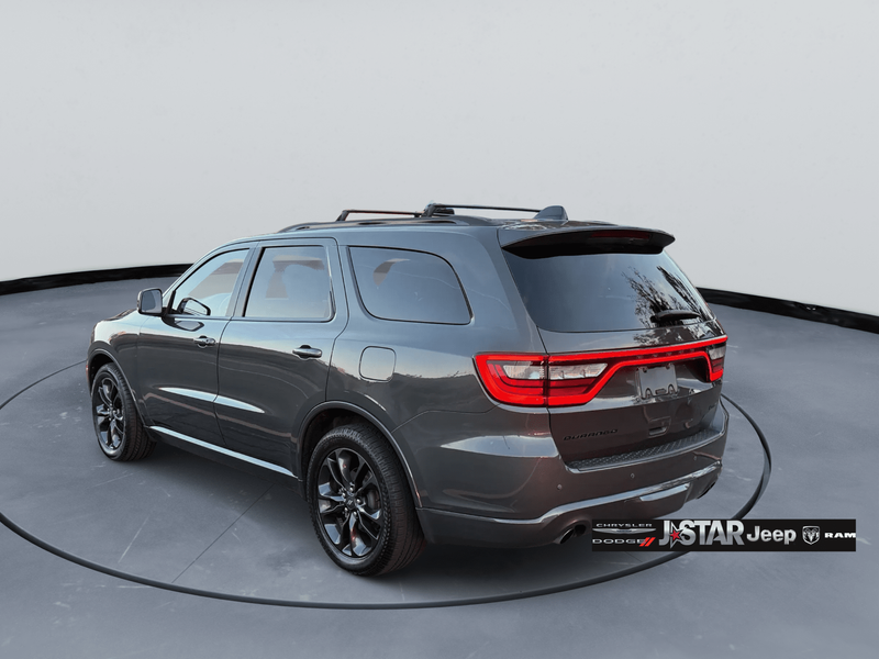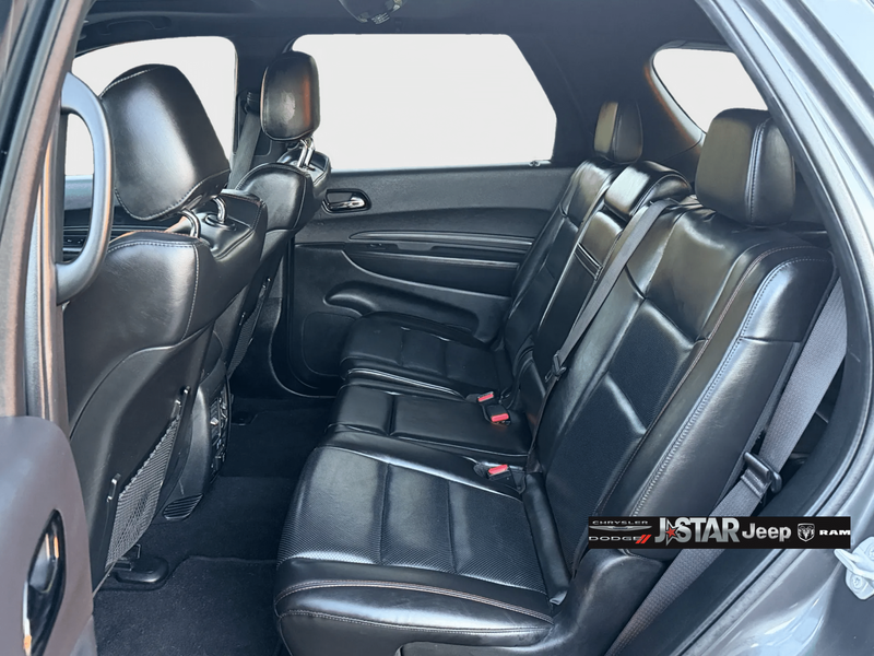2023 Vapor Gray Dodge Durango GT Plus RWD is well equipped and includes these features and benefits: Blacktop Package (Black Roof Rails, Gloss Black Badges, Gloss Black Exterior Mirrors, GT Gloss Black Badging, Integrated Roof Rail Crossbars, Satin Black Dodge Tail Lamp Badge, and Wheels: 20'' x 8.0'' Black Noise Aluminum), Quick Order Package 2BG GT Plus (1-Year Trial (Registration Required), 10.1'' Touchscreen Display, 115V Auxiliary Power Outlet, 180 Amp Alternator, 4G LTE Wi-Fi Hot Spot, 7 & 4 Pin Wiring Harness, Adaptive Cruise Control w/Stop, Apple CarPlay, Auto-Dimming Exterior Driver Mirror, Class IV Receiver Hitch, Connected Travel & Traffic Services, Disassociated Touchscreen Display, Dual Remote USB Port - Charge Only, Exterior Mirrors w/Heating Element, Exterior Mirrors w/Memory, Exterior Mirrors w/Supplemental Signals, Floor Console w/Leather Armrest, Full Speed Forward Collision Warning Plus, Global Telematics Box Module (TBM), Google Android Auto, GPS Antenna Input, GPS Navigation, HD Radio, Heated Second Row Seats, Heavy-Duty Engine Cooling, Integrated Center Stack Radio, Integrated Voice Command w/Bluetooth, Leather Trimmed Bucket Seats, Leather Wrapped Door Panels, LED Auxiliary Low Beam & Turn Signal, Power 6x9 Multi-Function Foldaway Mirrors, Power 8-Way Driver Memory 8-Way Passenger Seats, Power Driver/Passenger 4-Way Lumbar Adjust, Power Sunroof, Power Tilt & Telescopic Steering Column, Premium LED Fog Lamps, Radio: Uconnect 5 Nav w/10.1'' Display, Radio/Driver Seat/Mirrors Memory, Red Accent Stitching, SiriusXM Guardian - Included Trial (B), SiriusXM w/360L, Trailer Brake Control, USB Host Flip, and Ventilated Front Seats), 3.27 Rear Axle Ratio, 3rd row seats: split-bench, 4-Wheel Disc Brakes, 6 Speakers, ABS brakes, Air Conditioning, Alloy wheels, AM/FM radio: SiriusXM, Apple CarPlay/Android Auto, Auto-dimming Rear-View mirror, Auto-leveling suspension, Automatic temperature control, Brake assist, Bumpers: body-color, Cloth Bucket Seats w/Shift Insert, Compass, Delay-off headlights, Driver door bin, Driver vanity mirror, Dual front impact airbags, Dual front side impact airbags, Electronic Stability Control, Four wheel independent suspension, Front anti-roll bar, Front Bucket Seats, Front Center Armrest w/Storage, Front dual zone A/C, Front License Plate Bracket, Front reading lights, Fully automatic headlights, Garage door transmitter, Heated door mirrors, Heated front seats, Heated steering wheel, Illuminated entry, Knee airbag, Leather steering wheel, Low tire pressure warning, Manufacturer's Statement of Origin, Occupant sensing airbag, Outside temperature display, Overhead airbag, Overhead console, Panic alarm, ParkView Rear Back-Up Camera, Passenger door bin, Passenger vanity mirror, Power door mirrors, Power driver seat, Power Liftgate, Power steering, Power windows, Radio data system, Radio: Uconnect 4 w/8.4'' Display, Rear air conditioning, Rear anti-roll bar, Rear Load Leveling Suspension, Rear reading lights, Rear seat center armrest, Rear window defroster, Rear window wiper, Remote keyless entry, SiriusXM Radio Service, SiriusXM Satellite Radio, Speed control, Speed-sensing steering, Speed-Sensitive Wipers, Split folding rear seat, Spoiler, Sport steering wheel, Steering wheel mounted audio controls, Tachometer, Telescoping steering wheel, Tilt steering wheel, Traction control, Trip computer, Variably intermittent wipers, Voltmeter, and Wheels: 20'' x 8.0'' Fine Silver.