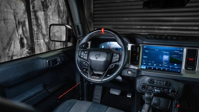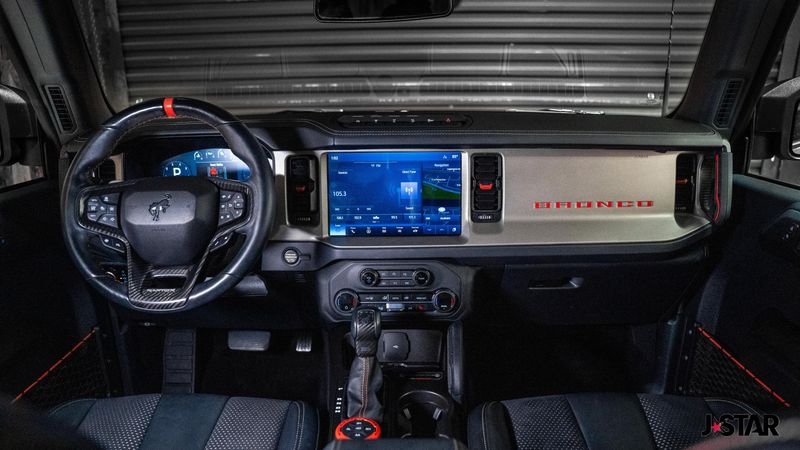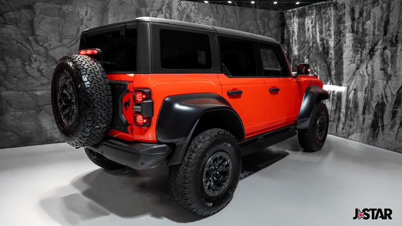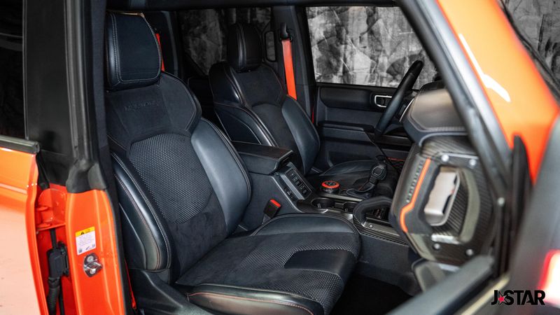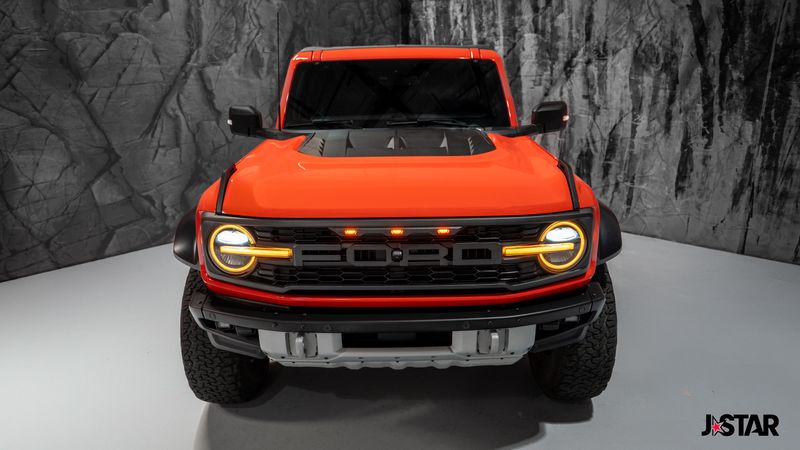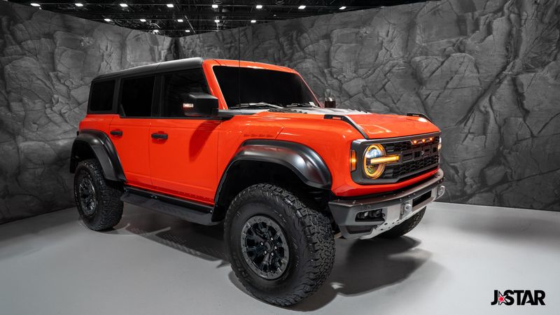 2023 Code Orange Ford Bronco Raptor 4WD is well equipped and includes these features and benefits: Equipment Group 374A Lux Package, Lux Package (10 Speakers w/Subwoofer, 2 Smart Charging USB Ports In Dashboard, Adaptive Cruise Control, Connected Built-In Navigation, Evasive Steering Assist, Heated Steering Wheel, Radio: B&O Sound System by Bang & Olufsen, Universal Garage Door Opener, and Wireless Charging Pad), 4-Wheel Disc Brakes, 4.7 Axle Ratio, 7 Speakers, ABS brakes, Air Conditioning, Alloy wheels, AM/FM radio: SiriusXM with 360L, AM/FM Stereo, Auto High-beam Headlights, Auto-dimming Rear-View mirror, Automatic temperature control, Brake assist, Code Orange Accent Seat Belts, Compass, Connected Navigation, Convertible HardTop, Convertible roof lining, Delay-off headlights, Driver door bin, Driver vanity mirror, Dual front impact airbags, Dual front side impact airbags, Electronic Stability Control, Emergency communication system: 911 Assist, Exterior Parking Camera Rear, Front anti-roll bar, Front Bucket Seats, Front Center Armrest, Front dual zone A/C, Front fog lights, Front reading lights, Front wheel independent suspension, Fully automatic headlights, Glass rear window, Hard Top Sound Deadening Headliner (DISC), Heated door mirrors, Heated front seats, Illuminated entry, Integrated roll-over protection, Interior Carbon Fiber Pack 6, Leather Shift Knob, Low tire pressure warning, Marine Grade Vinyl Bucket Seats, Navigation system: Connected Navigation, Occupant sensing airbag, Outside temperature display, Overhead airbag, Overhead console, Panic alarm, Passenger door bin, Passenger vanity mirror, Power door mirrors, Power steering, Power windows, Radio data system, Rear anti-roll bar, Rear seat center armrest, Rear window defroster, Rear window wiper, Remote keyless entry, Security system, SiriusXM Radio w/360L, Speed control, Split folding rear seat, Steering wheel mounted audio controls, SYNC 4, Tachometer, Telescoping steering wheel, Tilt steering wheel, Traction control, Trip computer, Turn signal indicator mirrors, Variably intermittent wipers, Voltmeter, Wheels: 17'' Black High Gloss-Painted Aluminum, and Wheels: 17'' Dark Carbonized Gray Alloy Painted.