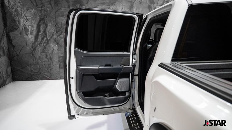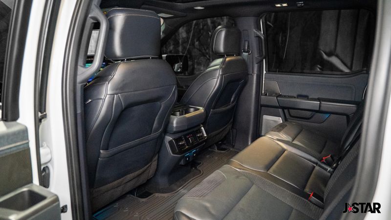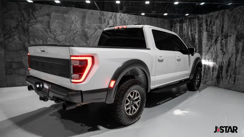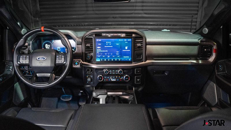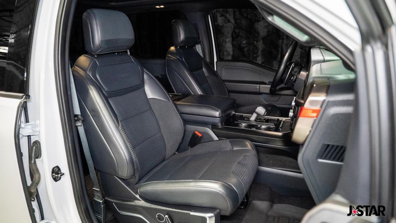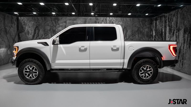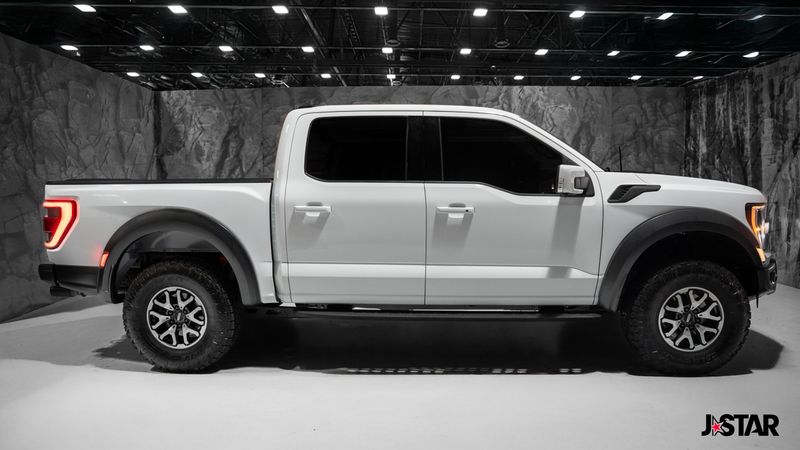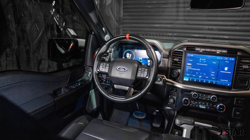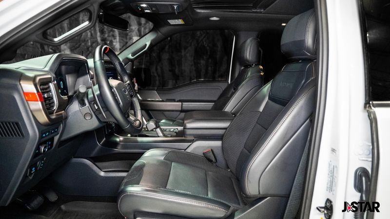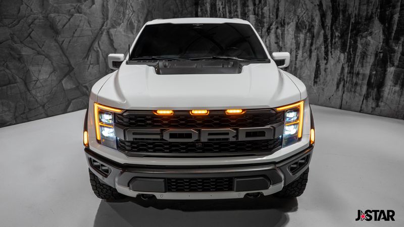 2023 Oxford White Ford F-150 Raptor 4WD is well equipped and includes these features and benefits: Equipment Group 801A Standard, GVWR: 7,300 lbs Payload Package, Moonroof & Tailgate (Power Tailgate and Twin Panel Moonroof), 4WD, 17'' Cast Aluminum Wheels, 18 Speakers, 4-Wheel Disc Brakes, ABS brakes, Adaptive suspension, Adjustable pedals, Air Conditioning, Alloy wheels, AM/FM radio: SiriusXM with 360L, Auto High-beam Headlights, Auto tilt-away steering wheel, Auto-dimming door mirrors, Auto-dimming Rear-View mirror, Automatic temperature control, Brake assist, Bumpers: body-color, Compass, Delay-off headlights, Driver door bin, Driver vanity mirror, Dual front impact airbags, Dual front side impact airbags, Electronic Locking w/4.10 Axle Ratio, Electronic Stability Control, Emergency communication system, Exterior Parking Camera Rear, Front anti-roll bar, Front Bucket Seats, Front Center Armrest, Front dual zone A/C, Front fog lights, Front License Plate Bracket, Front reading lights, Front wheel independent suspension, Fully automatic headlights, Garage door transmitter, Heated door mirrors, Heated front seats, Heated rear seats, Heated steering wheel, Illuminated entry, Inclination/Intrusion Sensor Removal, Lane Departure Warning System, Leather Trim Seats w/Heated 2nd Row, Low tire pressure warning, Memory seat, Navigation system: Connected Navigation, Occupant sensing airbag, Outside temperature display, Overhead airbag, Overhead console, Panic alarm, Partitioned Lockable Fold-Flat Storage, Passenger door bin, Passenger vanity mirror, Pedal memory, Power door mirrors, Power driver seat, Power passenger seat, Power steering, Power windows, Pro Power Onboard - 2KW, Radio data system, Radio: B&O Unleashed Sound System by Bang & Olufsen, Rain sensing wipers, Rear reading lights, Rear step bumper, Rear window defroster, Remote keyless entry, Security system, Speed control, Speed-sensing steering, Split folding rear seat, Steering wheel memory, Steering wheel mounted audio controls, SYNC 4 w/Enhanced Voice Recognition, Tachometer, Telescoping steering wheel, Tilt steering wheel, Tough Bed Spray-In Bedliner, Traction control, Trip computer, Turn signal indicator mirrors, Variably intermittent wipers, and Ventilated front seats. 4WD.