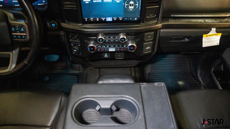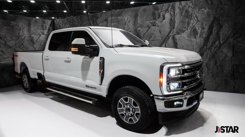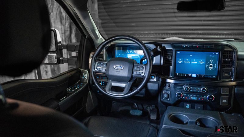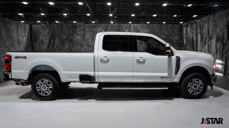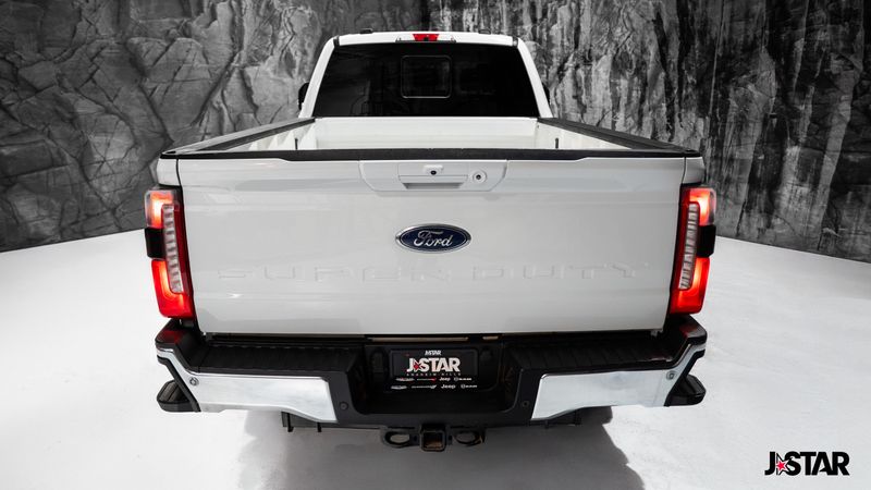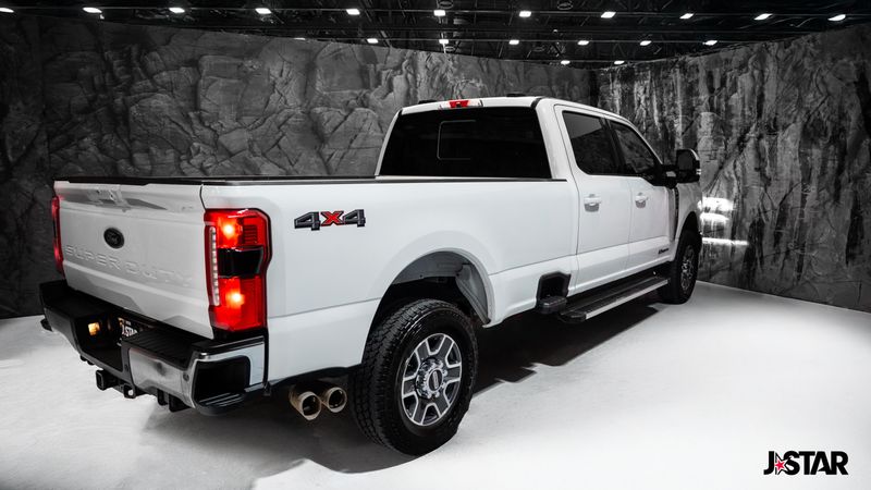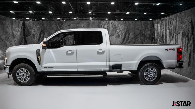2023 Oxford White Ford F-250 SuperDuty Lariat 4WD is well equipped and includes these features and benefits: F-250 >10K GVWR Package, Order Code 608A, 4WD, 3.73 Axle Ratio, 4-Wheel Disc Brakes, 410 Amp Dual Alternators, 6'' Angular Bright Anodized Step Bars, 8 Speakers, ABS brakes, Adjustable pedals, Air Conditioning, Alloy wheels, AM/FM radio: SiriusXM with 360L, Auto High-beam Headlights, Auto tilt-away steering wheel, Auto-dimming Rear-View mirror, Automatic temperature control, Brake assist, Bumpers: chrome, Compass, Delay-off headlights, Driver door bin, Driver vanity mirror, Dual 68 AH/65 AGM Batteries, Dual front impact airbags, Dual front side impact airbags, Electronic Stability Control, Electronic-Locking w/3.31 Axle Ratio, Emergency communication system: SYNC 4 911 Assist, Engine Block Heater, Exterior Parking Camera Rear, Flow-Through Console, Front anti-roll bar, Front Bucket Seats, Front Center Armrest, Front dual zone A/C, Front fog lights, Front Leather-Trimmed 40/Console/40 Seats, Front License Plate Bracket, Front reading lights, Fully automatic headlights, Garage door transmitter, Heated door mirrors, Heated front seats, Heated rear seats, Heated steering wheel, Illuminated entry, Leather steering wheel, Low tire pressure warning, Memory seat, Navigation system: Connected Navigation, Outside temperature display, Overhead airbag, Overhead console, Panic alarm, Passenger door bin, Passenger vanity mirror, Pedal memory, Power door mirrors, Power driver seat, Power passenger seat, Power steering, Power windows, Radio: B&O Sound System by Bang & Olufsen, Rain sensing wipers, Rapid-Heat Supplemental Cab Heater, Rear reading lights, Rear seat center armrest, Rear step bumper, Rear window defroster, Remote keyless entry, Security system, SiriusXM Radio w/360L, Speed control, Split folding rear seat, Steering wheel memory, Steering wheel mounted audio controls, SYNC 4 w/Enhanced Voice Recognition, Tachometer, Telescoping steering wheel, Tilt steering wheel, Traction control, Trip computer, Turn signal indicator mirrors, Upfitter Switches (6), Variably intermittent wipers, Ventilated front seats, and Wheels: 18'' Bright Machined & Carbonized Gray Alum. 4WD.
