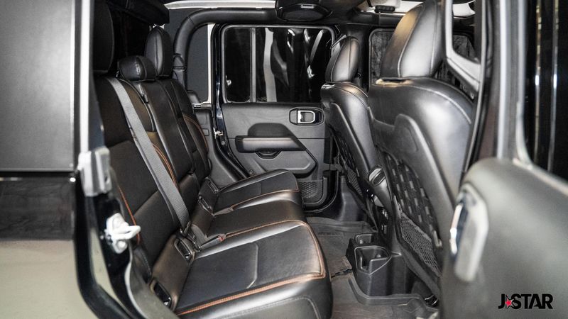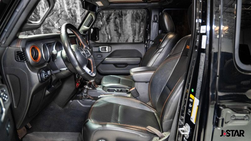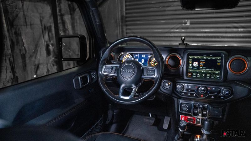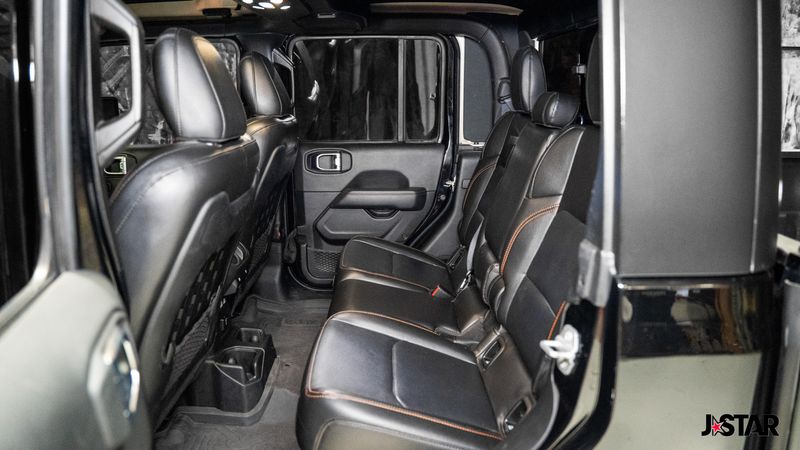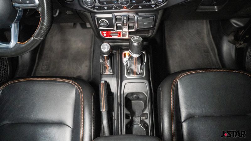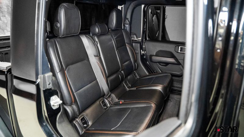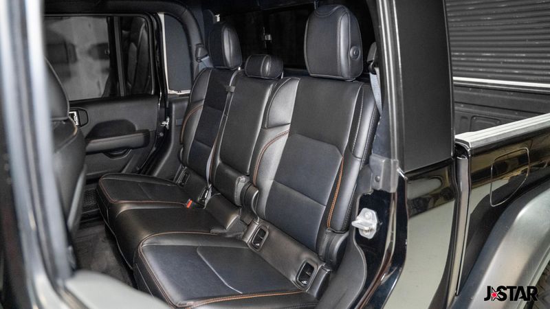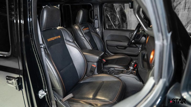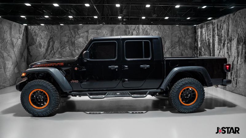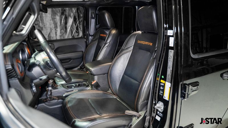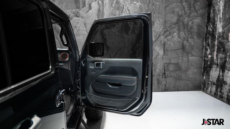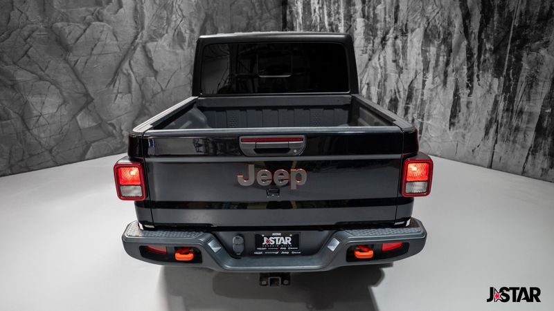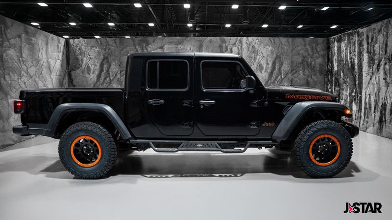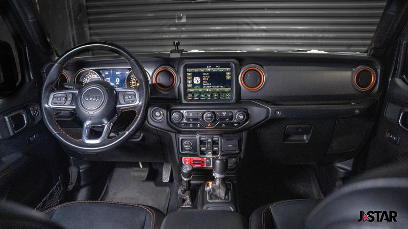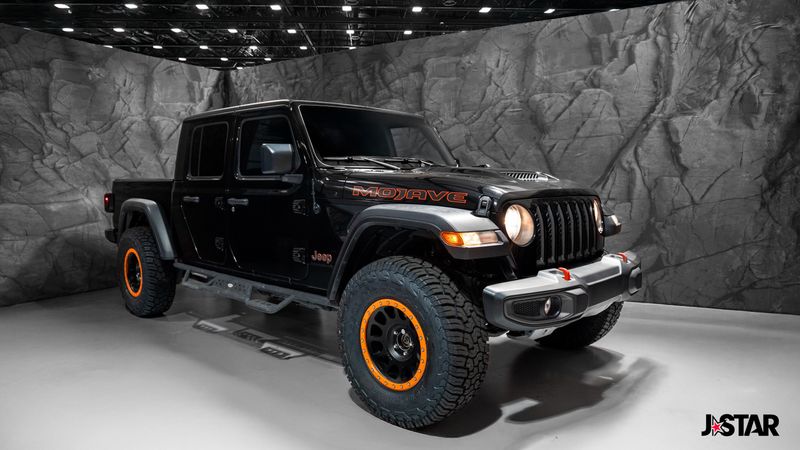 2023 Black Clearcoat Jeep Gladiator Mojave 4WD is well equipped and includes these features and benefits: Quick Order Package 24D Mojave, Trailer Tow Package (240 Amp Alternator, Class IV Receiver Hitch, Heavy-Duty Engine Cooling, and Trailer Hitch Zoom), 4-Wheel Disc Brakes, 4.10 Rear Axle Ratio, 9 Speakers, 97 MPH Vehicle Max Speed Calibration, ABS brakes, Air Conditioning, Alloy wheels, AM/FM radio: SiriusXM, Apple CarPlay/Android Auto, Auto-dimming Rear-View mirror, Automatic temperature control, Black 3-Piece Hard Top, Brake assist, Compass, Delay-off headlights, Driver door bin, Driver vanity mirror, Dual front impact airbags, Dual front side impact airbags, Electronic Stability Control, Emergency communication system, Freedom Panel Storage Bag, Front anti-roll bar, Front Bucket Seats, Front Center Armrest w/Storage, Front dual zone A/C, Front fog lights, Front reading lights, Fully automatic headlights, Garage door transmitter, Heated door mirrors, Heavy Duty Suspension w/Gas Shocks, Illuminated entry, Integrated roll-over protection, Leather steering wheel, Low tire pressure warning, MOPAR All-Weather Slush Mats, MOPAR Grab Handle Kit, MOPAR Hardtop Headliner, MOPAR Spray In Bedliner, Navigation System, Occupant sensing airbag, Outside temperature display, Panic alarm, ParkView Rear Back-Up Camera, Passenger door bin, Passenger vanity mirror, Power door mirrors, Power steering, Power windows, Premium Cloth Seats w/Sport Bolsters, Radio data system, Radio: Uconnect 4C Nav w/8.4'' Display, Rear anti-roll bar, Rear reading lights, Rear Sliding Window, Rear Window Defroster, Remote keyless entry, Security system, Speed control, Split folding rear seat, Steering wheel mounted audio controls, Tachometer, Telescoping steering wheel, Tilt steering wheel, Traction control, Trip computer, Variably intermittent wipers, Voltmeter, and Wheels: 17'' x 7.5'' Low Gloss Black Aluminum.