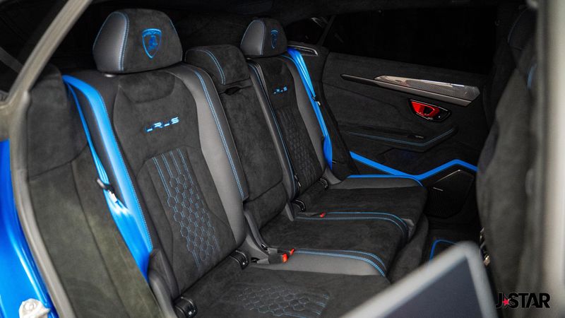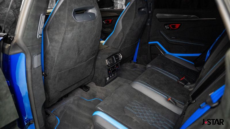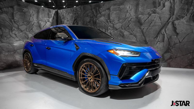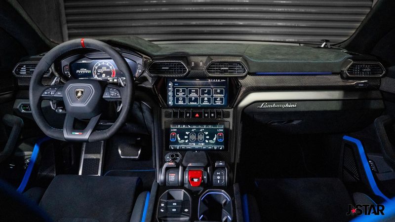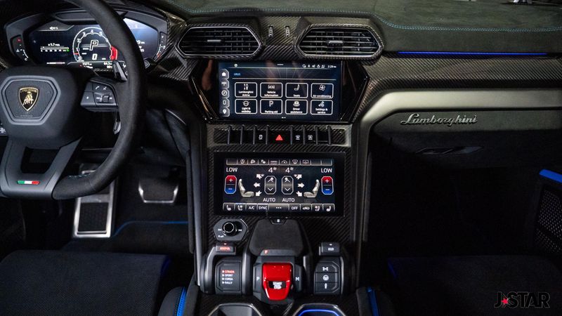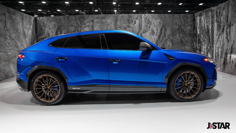2023 Blu Cepheus Metallic Lamborghini Urus Performante AWD is well equipped and includes these features and benefits: 4-Wheel Disc Brakes, 8 Speakers, ABS brakes, Adaptive suspension, Air Conditioning, Alloy wheels, AM/FM radio, Apple CarPlay/Android Auto, Audio memory, Auto High-beam Headlights, Auto-dimming door mirrors, Auto-dimming Rear-View mirror, Automatic temperature control, Axle Ratio: TBD, Brake assist, CD player, Ceramic disc brakes: front and rear, Compass, Delay-off headlights, Driver door bin, Driver vanity mirror, Dual front impact airbags, Dual front side impact airbags, DVD-Audio, Electronic Stability Control, Emergency communication system, Exterior Parking Camera Rear, Four wheel independent suspension, Front anti-roll bar, Front Bucket Seats, Front Center Armrest, Front dual zone A/C, Front reading lights, Fully automatic headlights, Garage door transmitter: HomeLink, Heads-Up Display, Heated door mirrors, Heated Front Bucket Seats, Heated front seats, HVAC memory, Illuminated entry, Low tire pressure warning, Memory seat, Navigation System, Occupant sensing airbag, Outside temperature display, Overhead airbag, Overhead console, Panic alarm, Passenger door bin, Passenger vanity mirror, Power door mirrors, Power driver seat, Power Liftgate, Power passenger seat, Power steering, Power windows, Radio data system, Radio: Lamborghini Infotainment System, Rain sensing wipers, Rear air conditioning, Rear anti-roll bar, Rear dual zone A/C, Rear reading lights, Rear seat center armrest, Rear window defroster, Remote keyless entry, Security system, Speed control, Speed-sensing steering, Speed-Sensitive Wipers, Split folding rear seat, Spoiler, Sport steering wheel, Steering wheel mounted A/C controls, Steering wheel mounted audio controls, Tachometer, Telescoping steering wheel, Tilt steering wheel, Traction control, Trip computer, Turn signal indicator mirrors, Unicolor Alcantara Seat Upholstery, Unicolor Leather Seat Upholstery, Variably intermittent wipers, Voltmeter, and Wheels: 22'' Helianthus Silver.