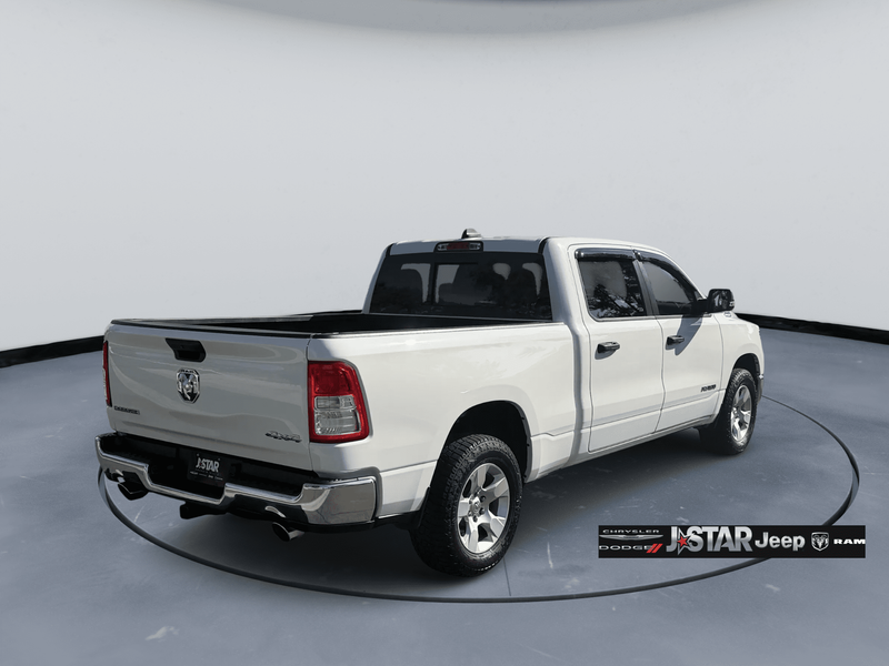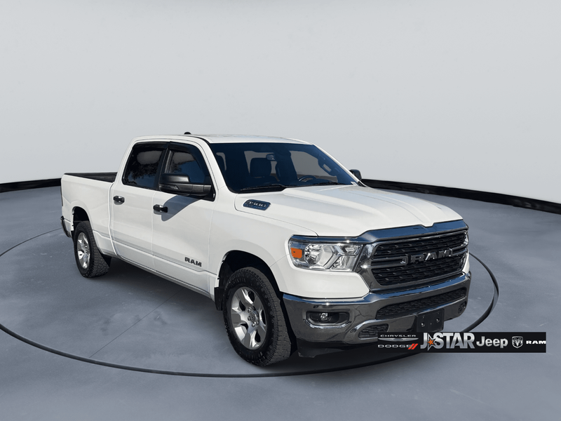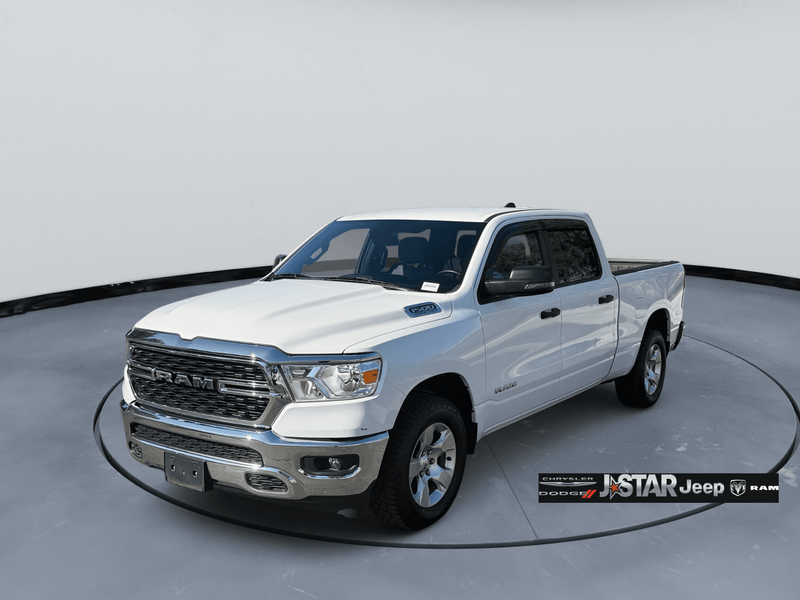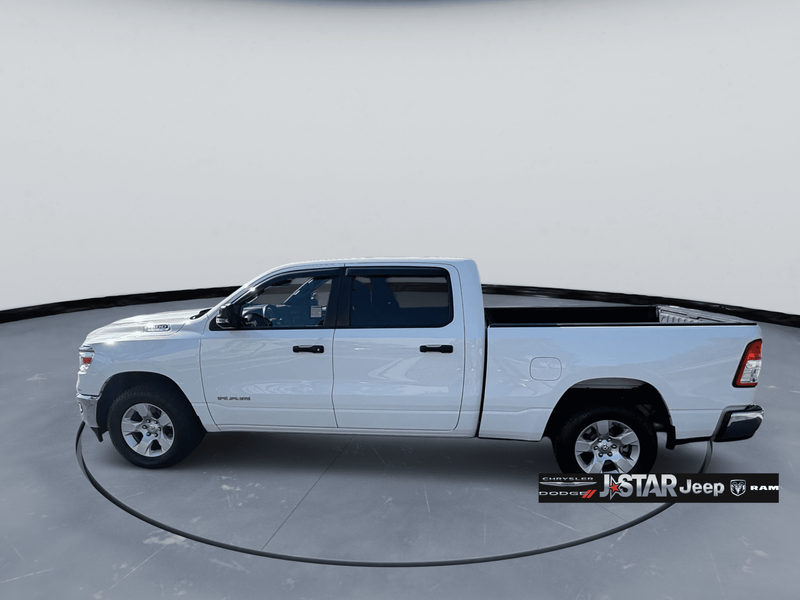2023 Bright White Clearcoat Ram 1500 Big Horn/Lone Star 4WD is well equipped and includes these features and benefits: Big Horn Level 1 Equipment Group (2nd Row In Floor Storage Bins, 4G LTE Wi-Fi Hot Spot, 8.4'' Touchscreen Display, Apple CarPlay, Auto-Dimming Exterior Driver Mirror, Auto-Dimming Rear-View Mirror, Black Exterior Mirrors, Black Premium Power Mirrors, Bluetooth Handsfree Phone & Audio, Class IV Receiver Hitch, Connectivity - US/Canada, Convex Wide-Angle Exterior Mirror Insert, Electric Shift-On-Demand Transfer Case, Exterior Mirrors Courtesy Lamps, Exterior Mirrors w/Heating Element, Exterior Mirrors w/Supplemental Signals, For Details, Visit DriveUconnect.com, For More Info, Call 800-643-2112, Front Fog Lamps, Glove Box Lamp, Google Android Auto, GPS Antenna Input, Heated Front Seats, Heated Steering Wheel, Integrated Center Stack Radio, Passenger Sun Visor w/Illuminated Mirror, Power-Folding Mirrors, Radio: Uconnect 5 W w/8.4'' Display, Rear Dome w/On/Off Switch Lamp, Rear Power Sliding Window, Rear Window Defroster, SiriusXM Satellite Radio, and USB Host Flip), Quick Order Package 27Z Big Horn (Big Horn Badge), 3 Rear Seat Head Restraints, 3.21 Rear Axle Ratio, 4 Way Front Headrests, 4-Wheel Disc Brakes, 48V Belt Starter Generator, 6 Speakers, 9 Amplified Speakers w/Subwoofer, ABS brakes, Active Noise Control System, Air Conditioning, Alloy wheels, AM/FM radio, Brake assist, Bumpers: chrome, Cloth Bench Seat, Compass, Delay-off headlights, Driver door bin, Dual front impact airbags, Dual front side impact airbags, Dual Rear Exhaust w/Bright Tips, Electronic Stability Control, Emergency communication system: SiriusXM Guardian, Front anti-roll bar, Front Center Armrest w/Storage, Front License Plate Bracket, Front reading lights, Front Seat Back Map Pockets, Front wheel independent suspension, Fully automatic headlights, Global Telematics Box Module (TBM), Heated door mirrors, Heavy-Duty Engine Cooling, HEMI Badge, Illuminated entry, Integrated Voice Command w/Bluetooth, Leather steering wheel, Low tire pressure warning, Manufacturer's Statement of Origin, MOPAR Front & Rear Rubber Floor Mats, Occupant sensing airbag, Outside temperature display, Overhead airbag, Overhead console, Panic alarm, ParkView Rear Back-Up Camera, Passenger door bin, Passenger vanity mirror, Power door mirrors, Power steering, Power windows, Radio data system, Radio: Uconnect 3 w/5'' Display, RAM Grille Badge - Chrome, Rear 60/40 Folding Seat, Rear anti-roll bar, Rear seat center armrest, Rear step bumper, Remote keyless entry, Speed control, Split folding rear seat, Steering wheel mounted audio controls, Tachometer, Telescoping steering wheel, Tilt steering wheel, Traction control, Trip computer, Variably intermittent wipers, Voltmeter, and Wheels: 18'' x 8'' Cast-Aluminum PainteD.