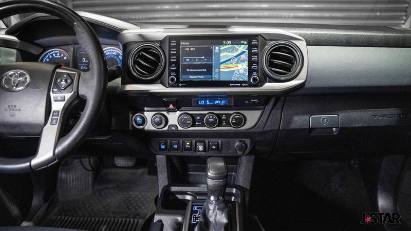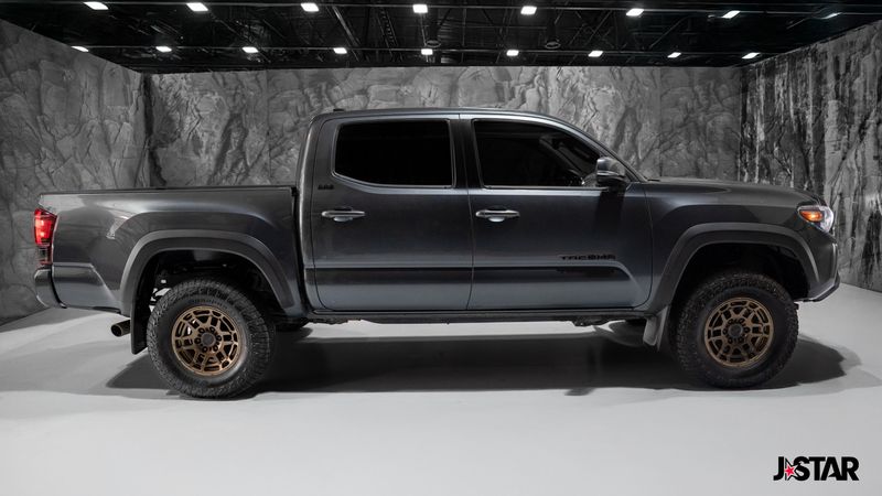 2023 Magnetic Gray Toyota Tacoma Trail Edition 4WD is well equipped and includes these features and benefits: SR5 Parking Sonar & Navigation Package (Auto-Dimming Inside Rear-View Mirror, Radio: Premium Audio w/Dynamic Navigation, and Rear Parking Assist Sonar), Technology Package (Blind Spot Monitor w/Rear Cross Traffic Alert), Trail Edition (120V/400W Deck Mounted AC Power, Black Headlamp Bezel, Body Color Overfenders, Front Door Smart Key System w/Push Button Start, Heritage Grille, Leaf Trail Rear Suspension, and Power Sliding Rear Window w/Privacy Glass), 4WD, 6 Speakers, ABS brakes, Air Conditioning, Alloy wheels, AM/FM radio: SiriusXM, Anti-whiplash front head restraints, Apple CarPlay/Android Auto, Auto High-beam Headlights, Auto-dimming Rear-View mirror, Automatic temperature control, Axle Ratio: 3.91, Bed Light (TMS), Brake assist, Bumpers: body-color, Driver door bin, Dual front impact airbags, Dual front side impact airbags, Electronic Stability Control, Emergency communication system: Safety Connect (1-year trial), Exhaust Tip (TMS), Exterior Parking Camera Rear, Fabric Seat Trim, Front anti-roll bar, Front Bucket Seats, Front Center Armrest, Front dual zone A/C, Front fog lights, Front reading lights, Front Seats, Front wheel independent suspension, Heated door mirrors, Illuminated entry, Knee airbag, Low tire pressure warning, Mudguards (TMS), Occupant sensing airbag, Outside temperature display, Overhead airbag, Overhead console, Panic alarm, Passenger door bin, Power door mirrors, Power driver seat, Power steering, Power windows, Radio: Audio, Rear step bumper, Remote keyless entry, Speed control, Speed-sensing steering, Split folding rear seat, Steering wheel mounted audio controls, Tachometer, Telescoping steering wheel, Tilt steering wheel, Traction control, TRD Shift Knob (TMS), Trip computer, Variably intermittent wipers, and Wheels: 16'' Bronze-Colored. 4WD.