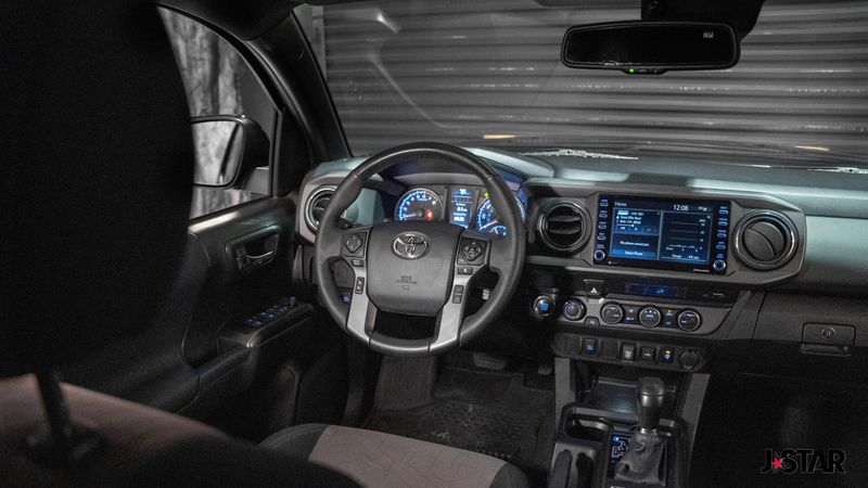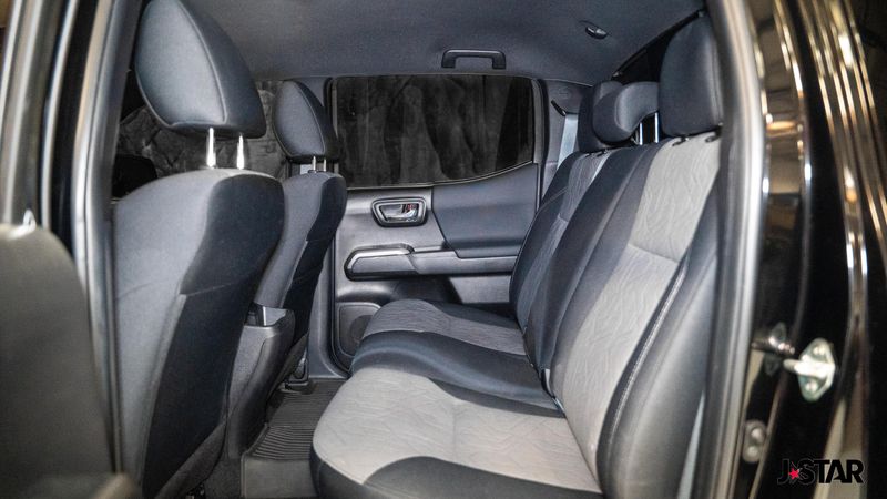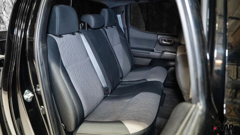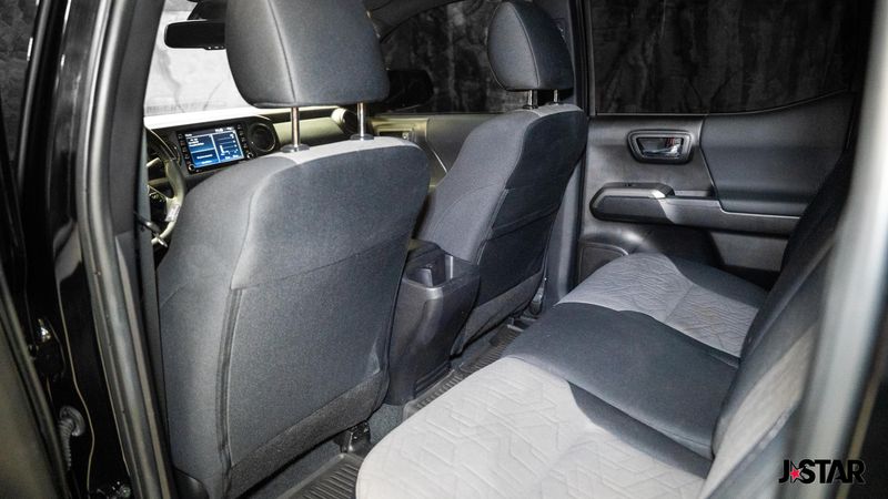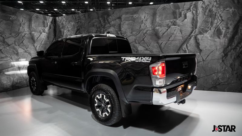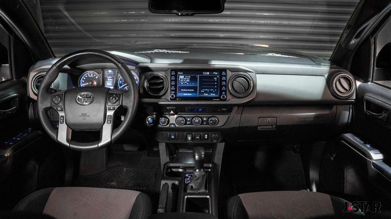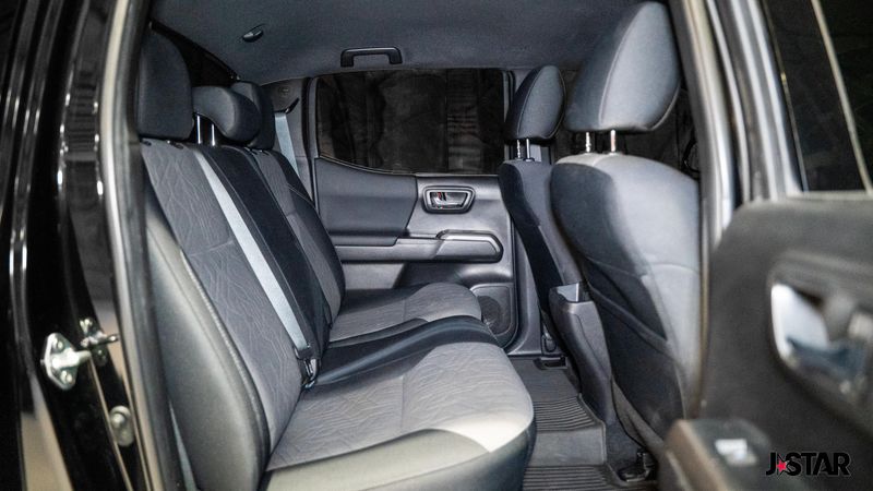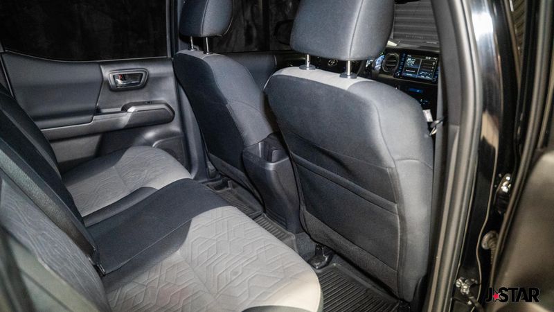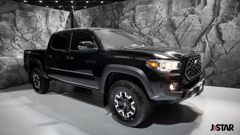 2023 Black Toyota Tacoma TRD Offroad 4WD is well equipped and includes these features and benefits: 4WD, ABS brakes, Alloy wheels, Electronic Stability Control, Front dual zone A/C, Heated door mirrors, Illuminated entry, Low tire pressure warning, Remote keyless entry, Traction control, 120V/400W Deck Mounted AC Power, 6 Speakers, Air Conditioning, AM/FM radio: SiriusXM, Anti-whiplash front head restraints, Apple CarPlay/Android Auto, Auto High-beam Headlights, Auto-dimming Rear-View mirror, Auto-Dimming Rearview Mirror w/HomeLink, Automatic temperature control, Black Overfenders, Brake assist, Bumpers: body-color, Driver door bin, Dual front impact airbags, Dual front side impact airbags, Emergency communication system: Safety Connect (1-year trial), Engine Immobilizer, Exterior Parking Camera Rear, Fabric Seat Trim, Front anti-roll bar, Front Bucket Seats, Front Center Armrest, Front fog lights, Front reading lights, Front Seats, Front wheel independent suspension, Garage door transmitter: HomeLink, Knee airbag, Leather Shift Knob, Occupant sensing airbag, Outside temperature display, Overhead airbag, Overhead console, Panic alarm, Passenger door bin, Power door mirrors, Power driver seat, Power Sliding Rear Window w/Privacy Glass, Power steering, Power windows, Radio: Audio, Rear step bumper, Security system, Speed control, Speed-sensing steering, Split folding rear seat, Steering wheel mounted audio controls, Tachometer, Telescoping steering wheel, Tilt steering wheel, Trip computer, Turn signal indicator mirrors, Variably intermittent wipers, and Wheels: 16'' Machined Contrast Alloy. 4WD, ABS brakes, Alloy wheels, Electronic Stability Control, Front dual zone A/C, Heated door mirrors, Illuminated entry, Low tire pressure warning, Remote keyless entry, Traction control.