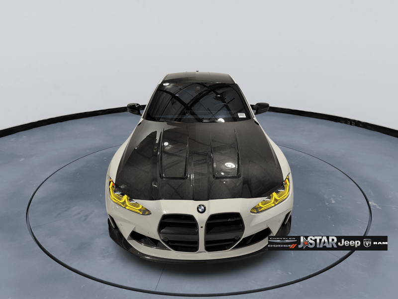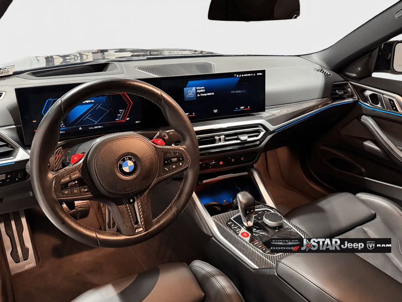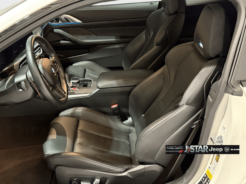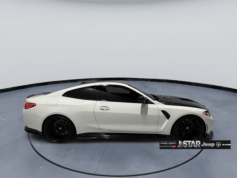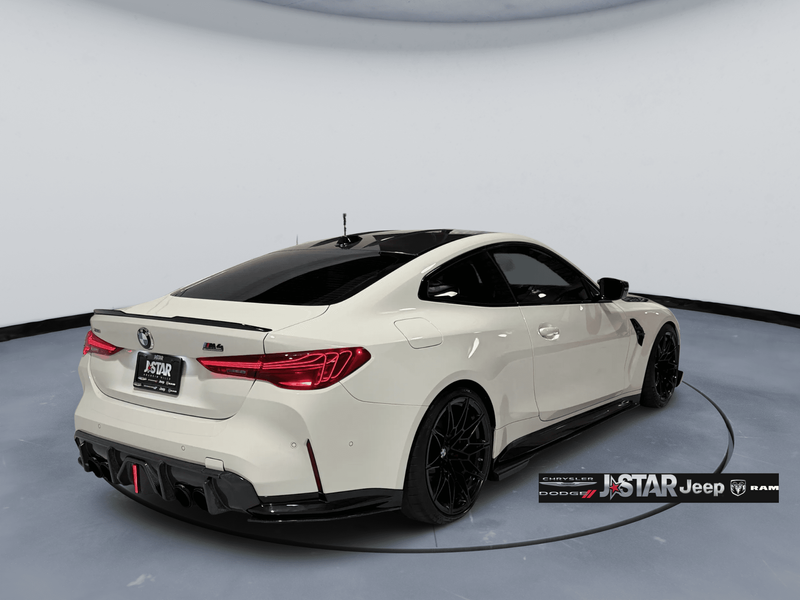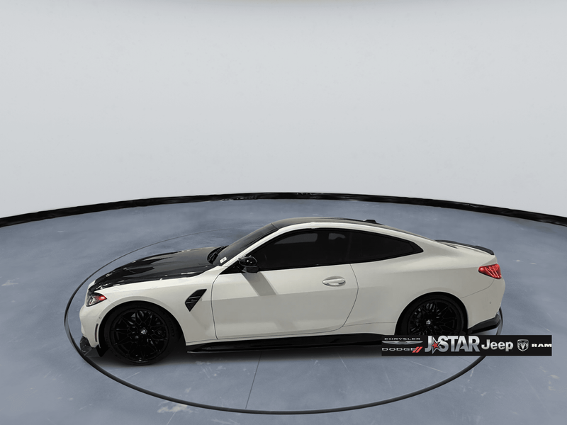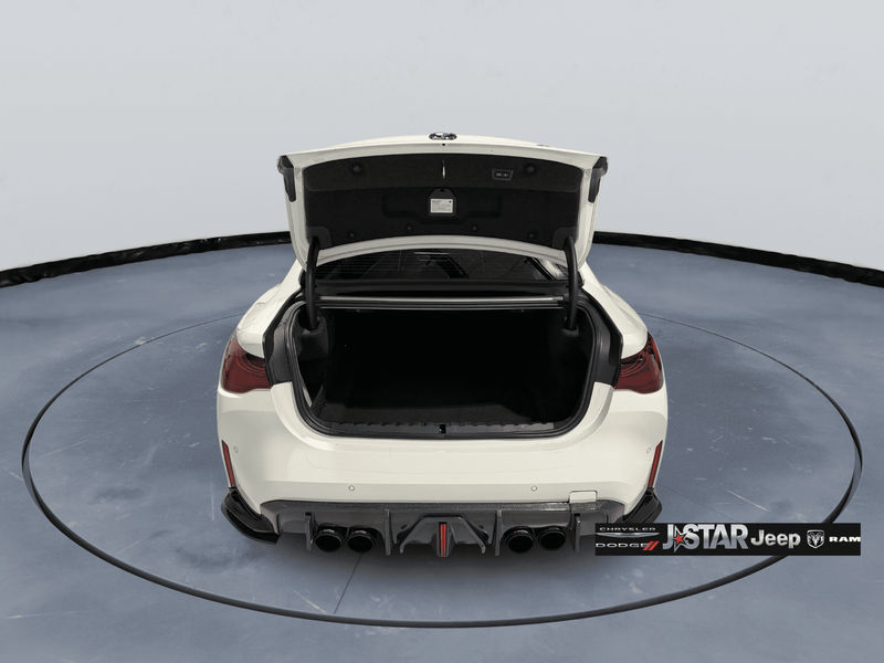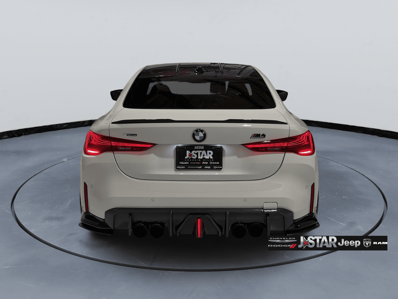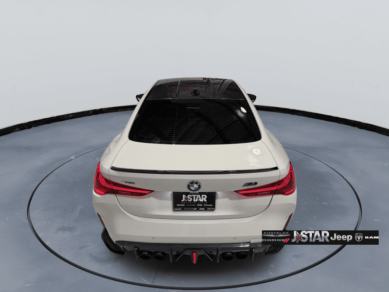 2024 Alpine White BMW M4 Competition AWD is well equipped and includes these features and benefits: Connected Package Pro, Executive Package (BMW Curved Display w/HUD, Heated Steering Wheel, Power Tailgate, and Remote Engine Start), Parking Assistance Package (Parking Assistant Plus), 16 Speakers, 4-Wheel Disc Brakes, ABS brakes, Adaptive suspension, Air Conditioning, Alloy wheels, AM/FM radio: SiriusXM with 360L, Apple CarPlay & Android Auto Compatibility, Auto High-beam Headlights, Auto-dimming door mirrors, Auto-dimming Rear-View mirror, Automatic temperature control, BMW Assist eCall, BMW TeleServices, Brake assist, Bumpers: body-color, Carbon Fiber Trim, Compass, ConnectedDrive Services, Delay-off headlights, Driver door bin, Driver vanity mirror, Dual front impact airbags, Dual front side impact airbags, Electronic Stability Control, Emergency communication system: BMW Assist eCall, Extended Merino Leather Upholstery, Exterior Parking Camera Rear, Four wheel independent suspension, Front anti-roll bar, Front Bucket Seats, Front Center Armrest, Front dual zone A/C, Front reading lights, Fully automatic headlights, Garage door transmitter, harman/kardon Surround Sound System, harman/kardon Speakers, Heated door mirrors, Heated front seats, Illuminated entry, Knee airbag, Leather Shift Knob, Leather steering wheel, Low tire pressure warning, Lumbar Support, M Compound Brakes w/Red Calipers, M Drive Professional, M Shadowline Lights, M Sport Seats, Memory seat, Navigation, Navigation System, Occupant sensing airbag, Outside temperature display, Overhead airbag, Overhead console, Panic alarm, Passenger door bin, Passenger vanity mirror, Personal eSIM 5G, Power door mirrors, Power driver seat, Power Front Seats, Power passenger seat, Power steering, Power windows, Radio data system, Radio: AM/FM Audio System, Rain sensing wipers, Rear anti-roll bar, Rear reading lights, Rear seat center armrest, Rear window defroster, Remote keyless entry, Security system, SiriusXM w/360L, Speed control, Speed-sensing steering, Speed-Sensitive Wipers, Split folding rear seat, Spoiler, Sport steering wheel, Steering wheel mounted audio controls, Tachometer, Telescoping steering wheel, Tilt steering wheel, Traction control, Trip computer, Turn signal indicator mirrors, Variably intermittent wipers, Wheels: 19'' x 9.5'' Fr/20'' x 10.5'' Rr (Style 826M), and Widescreen Display.