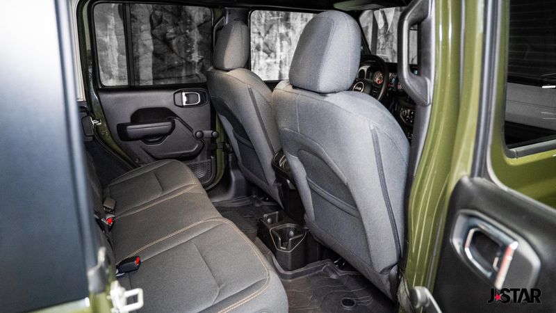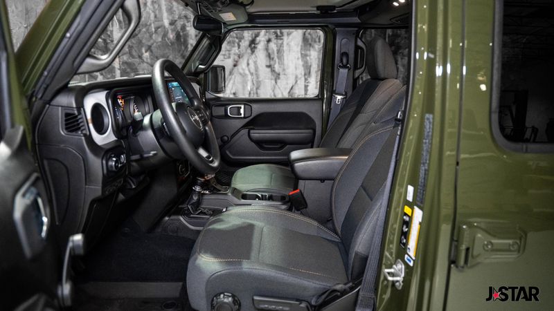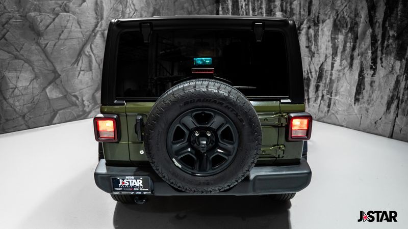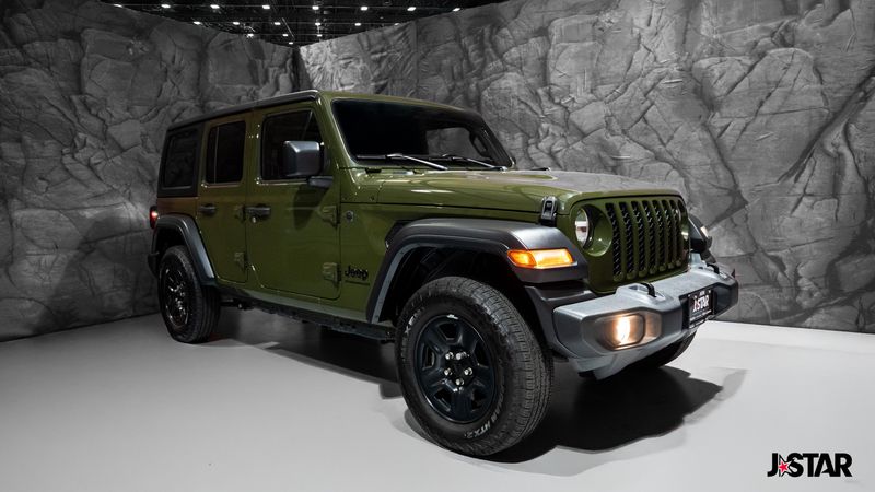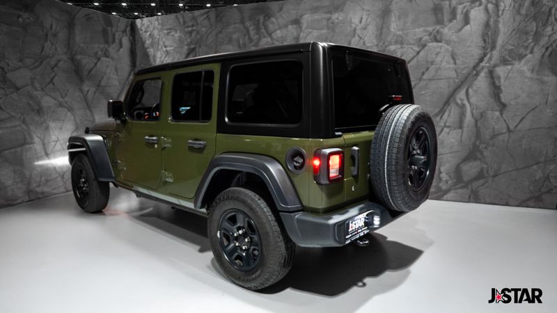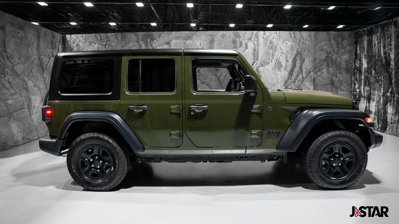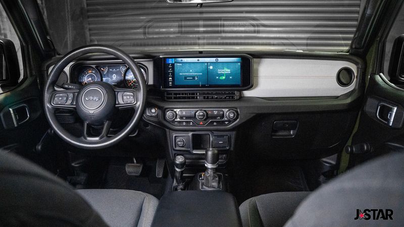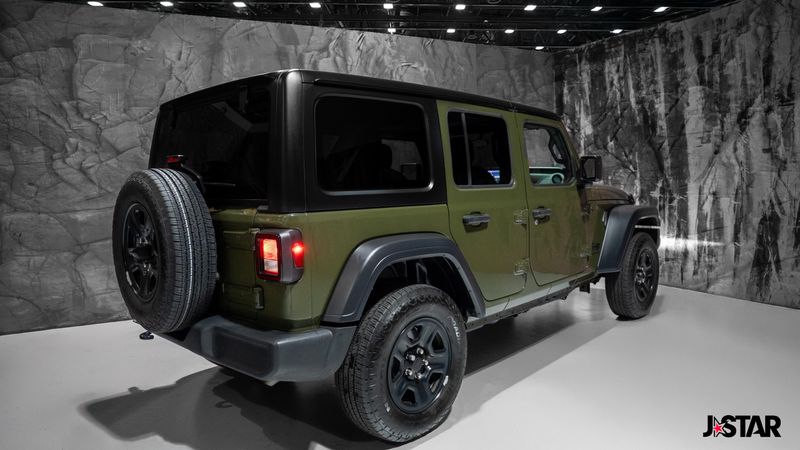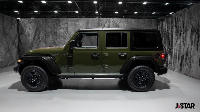 2024 Sarge Green Clearcoat Jeep Wrangler Sport 4WD is well equipped and includes these features and benefits: Quick Order Package 22B Sport, 110 MPH Vehicle Max Speed Calibration, 3.45 Overall Top Gear Ratio, 4-Wheel Disc Brakes, 8 Speakers, ABS brakes, Air Conditioning, AM/FM radio, Apple CarPlay/Android Auto, Aux Battery, Black 3-Piece Hard Top, Brake assist, Cloth Low-Back Bucket Seats, Compass, Deep Tint Sunscreen Windows, Delay-off headlights, Driver door bin, Driver vanity mirror, Dual front impact airbags, Dual front side impact airbags, Electronic Stability Control, Freedom Panel Storage Bag, Front anti-roll bar, Front Bucket Seats, Front Center Armrest w/Storage, Front fog lights, Front reading lights, Integrated roll-over protection, Jeep Trail Rated Kit, Low tire pressure warning, MOPAR All-Weather Floor Mats, No Soft Top, Non-Lock Fuel Cap w/o Discriminator, Normal Duty Suspension, Occupant sensing airbag, Outside temperature display, Overhead airbag, ParkView Rear Back-Up Camera, Passenger door bin, Passenger vanity mirror, Power steering, Radio data system, Radio: Uconnect 5 w/12.3'' Display, Rear anti-roll bar, Rear reading lights, Rear Window Defroster, Rear Window Wiper/Washer, Speed control, Split folding rear seat, Steering wheel mounted audio controls, Stop-Start Dual Battery System, Tachometer, Telescoping steering wheel, Tilt steering wheel, Traction control, Trip computer, Variably intermittent wipers, and Wheels: 17'' x 7.5'' Black Steel Styled.