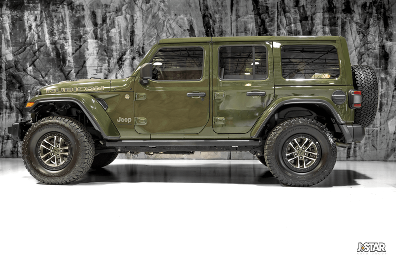 2024 Sarge Green Clearcoat Jeep Wrangler Rubicon 392 4WD is well equipped and includes these features and benefits: Dual Door Group w/Premium Uppers (DISC) (Half Doors w/Uppers), Quick Order Package 27X Rubicon 392 (DISC), 35'' Tire Rubicon 392 Suspension (DISC), 4-Wheel Disc Brakes, 4.56 Rear Axle Ratio, 9 Speakers, ABS brakes, Air Conditioning, Alloy wheels, AM/FM radio: SiriusXM with 360L, Apple CarPlay/Android Auto, Auto High-beam Headlights, Auto-dimming Rear-View mirror, Automatic temperature control, Brake assist, Compass, Convertible HardTop, Delay-off headlights, Driver door bin, Driver vanity mirror, Dual front impact airbags, Dual front side impact airbags, Electronic Stability Control, Emergency communication system: Jeep Connect, Freedom Panel Storage Bag, Front anti-roll bar, Front Bucket Seats, Front Center Armrest w/Storage, Front dual zone A/C, Front fog lights, Front License Plate Bracket, Front reading lights, Fully automatic headlights, Garage door transmitter, Glass rear window, Heated door mirrors, Heated front seats, Heated steering wheel, Illuminated entry, Integrated roll-over protection, Leather Shift Knob, Leather steering wheel, Low tire pressure warning, MOPAR All-Weather Floor Mats (DISC), Nappa Leather Seats (DISC), Navigation System, Occupant sensing airbag, Outside temperature display, Overhead airbag, Panic alarm, ParkView Rear Back-Up Camera, Passenger door bin, Passenger vanity mirror, Power door mirrors, Power driver seat, Power passenger seat, Power steering, Power windows, Radio data system, Radio: Uconnect 5 Nav w/12.3'' Display, Rear anti-roll bar, Rear reading lights, Rear seat center armrest, Rear Window Defroster, Rear window defroster, Rear window wiper, Rear Window Wiper/Washer, Remote keyless entry, Security system, Speed control, Split folding rear seat, Steering wheel mounted audio controls, Tachometer, Telescoping steering wheel, Tilt steering wheel, Traction control, Trip computer, Variably intermittent wipers, Voltmeter, Warn Winch (DISC), and Wheels: 17'' x 8'' Mach/Bronze Beadlock Cap (DISC)