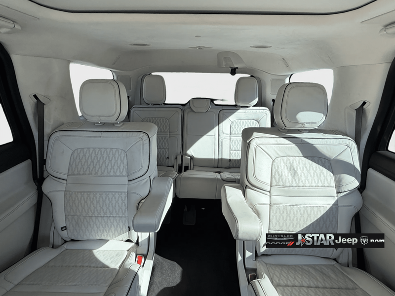 2024 Manhattan Green Metallic Premium Colorant Lincoln Navigator Black Label 4WD is well equipped and includes these features and benefits: Equipment Group 800A Black Label, 4WD, Alpine Leather, 28 Speakers, 2nd Row Htd/Vent Enhcd Massage Seats w/out Console, 3.73 Axle Ratio, 3rd row seats: split-bench, 4-Wheel Disc Brakes, ABS brakes, Adaptive suspension, Adjustable pedals, Air Conditioning, Alloy wheels, AM/FM radio: SiriusXM with 360L, Apple CarPlay/Android Auto, Audio memory, Auto High-beam Headlights, Auto Start-Stop Technology, Auto tilt-away steering wheel, Auto-dimming door mirrors, Auto-dimming Rear-View mirror, Auto-leveling suspension, Automatic temperature control, Bodyside moldings, Brake assist, Bumpers: body-color, Compass, Delay-off headlights, Driver door bin, Driver vanity mirror, Driver's Seat Mounted Armrest, Dual front impact airbags, Dual front side impact airbags, Electronic Stability Control, Emergency communication system: 911 Assist, Exterior Parking Camera Rear, Floor Carpet/Mats - Espresso w/Dinamica Suede, Four wheel independent suspension, Front anti-roll bar, Front Bucket Seats, Front dual zone A/C, Front fog lights, Front reading lights, Fully automatic headlights, Garage door transmitter, Genuine wood console insert, Genuine wood door panel insert, Head restraints memory, Headliner - Alpine Dinamica Suede, Heads-Up Display, Heated door mirrors, Heated front seats, Heated rear seats, Heated steering wheel, HVAC memory, Illuminated entry, Lane Departure Warning System, Leather steering wheel, Leather-Wrapped Interior - Alpine w/Black Stitch, Low tire pressure warning, Memory seat, Navigation system: Connected Navigation (1-year trial), Occupant sensing airbag, Outside temperature display, Overhead airbag, Overhead console, Panic alarm, Passenger door bin, Passenger seat mounted armrest, Passenger vanity mirror, Pedal memory, Power adjustable front head restraints, Power adjustable rear head restraints, Power door mirrors, Power driver seat, Power Liftgate, Power moonroof: Panoramic Vista Roof, Power passenger seat, Power steering, Power windows, Radio data system, Radio: Revel Ultima 3D Audio System w/28 Speakers, Rain sensing wipers, Rear air conditioning, Rear anti-roll bar, Rear audio controls, Rear reading lights, Rear seat center armrest, Rear window defroster, Rear window wiper, Reclining 3rd row seat, Remote keyless entry, Security system, Silverwood Recon Appliques, SiriusXM w/360L, Speed control, Speed-sensing steering, Speed-Sensitive Wipers, Split folding rear seat, Spoiler, Steering wheel memory, Steering wheel mounted audio controls, SYNC 4 Communications & Entertainment System, Tachometer, Telescoping steering wheel, Tilt steering wheel, Traction control, Trip computer, Turn signal indicator mirrors, Variably intermittent wipers, Venetian Lthr Auto Htd/Ventilatd Capt's Chairs (B), Ventilated front seats, Ventilated rear seats, Voice-Activated Touchscreen Navigation System, and Wheels: 22'' 14-Spoke Bright Machined Aluminum. 4WD, Alpine Leather.