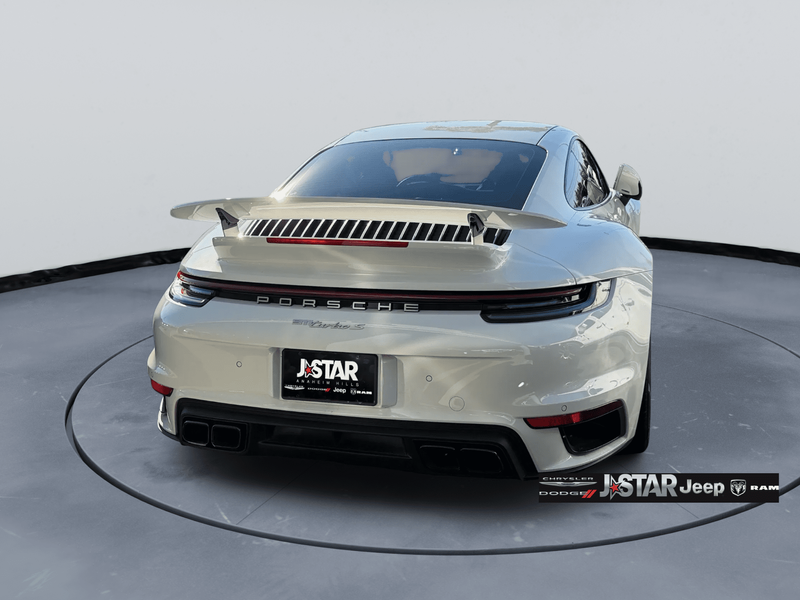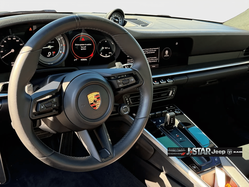 2024 Porsche 911 Turbo S AWD is well equipped and includes these features and benefits: 14-Way Power Sport Seats w/Memory Package, 18-Way Adaptive Sport Seats Plus w/Memory Package, AWD, 12 Speakers, 4-Wheel Disc Brakes, ABS brakes, Adaptive suspension, Air Conditioning, Alloy wheels, Auto High-beam Headlights, Auto-dimming door mirrors, Auto-dimming Rear-View mirror, Automatic temperature control, Bose Surround Sound System, Brake assist, Bumpers: body-color, Ceramic disc brakes: front and rear, Delay-off headlights, Driver door bin, Driver vanity mirror, Dual front impact airbags, Dual front side impact airbags, Electronic Stability Control, Exterior Parking Camera Rear, Four wheel independent suspension, Front anti-roll bar, Front Bucket Seats, Front Center Armrest, Front dual zone A/C, Front reading lights, Fully automatic headlights, Garage door transmitter: HomeLink, Heated door mirrors, Heated front seats, Illuminated entry, Leather Seat Trim w/Leather Interior, Leather steering wheel, Low tire pressure warning, Memory seat, Navigation system: Porsche Communication Management (PCM), Occupant sensing airbag, Outside temperature display, Overhead airbag, Overhead console, Passenger door bin, Passenger vanity mirror, Porsche Communication Management, Power door mirrors, Power driver seat, Power passenger seat, Power steering, Power windows, Radio data system, Rain sensing wipers, Rear anti-roll bar, Rear fog lights, Rear window defroster, Remote keyless entry, Security system, Speed control, Split folding rear seat, Spoiler, Sport steering wheel, Steering wheel memory, Steering wheel mounted audio controls, Tachometer, Telescoping steering wheel, Tilt steering wheel, Traction control, Trip computer, Variably intermittent wipers, Wheels: 20'' Front/21'' Rear 911 Turbo, and Wheels: 20'' Front/21'' Rear 911 Turbo S. AWD.