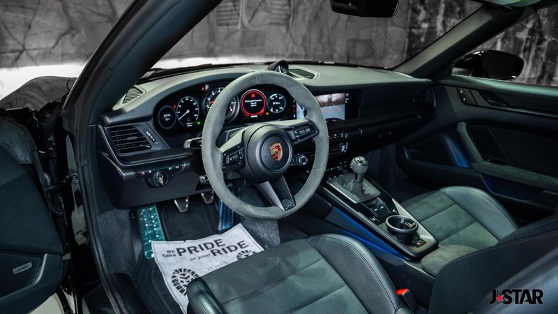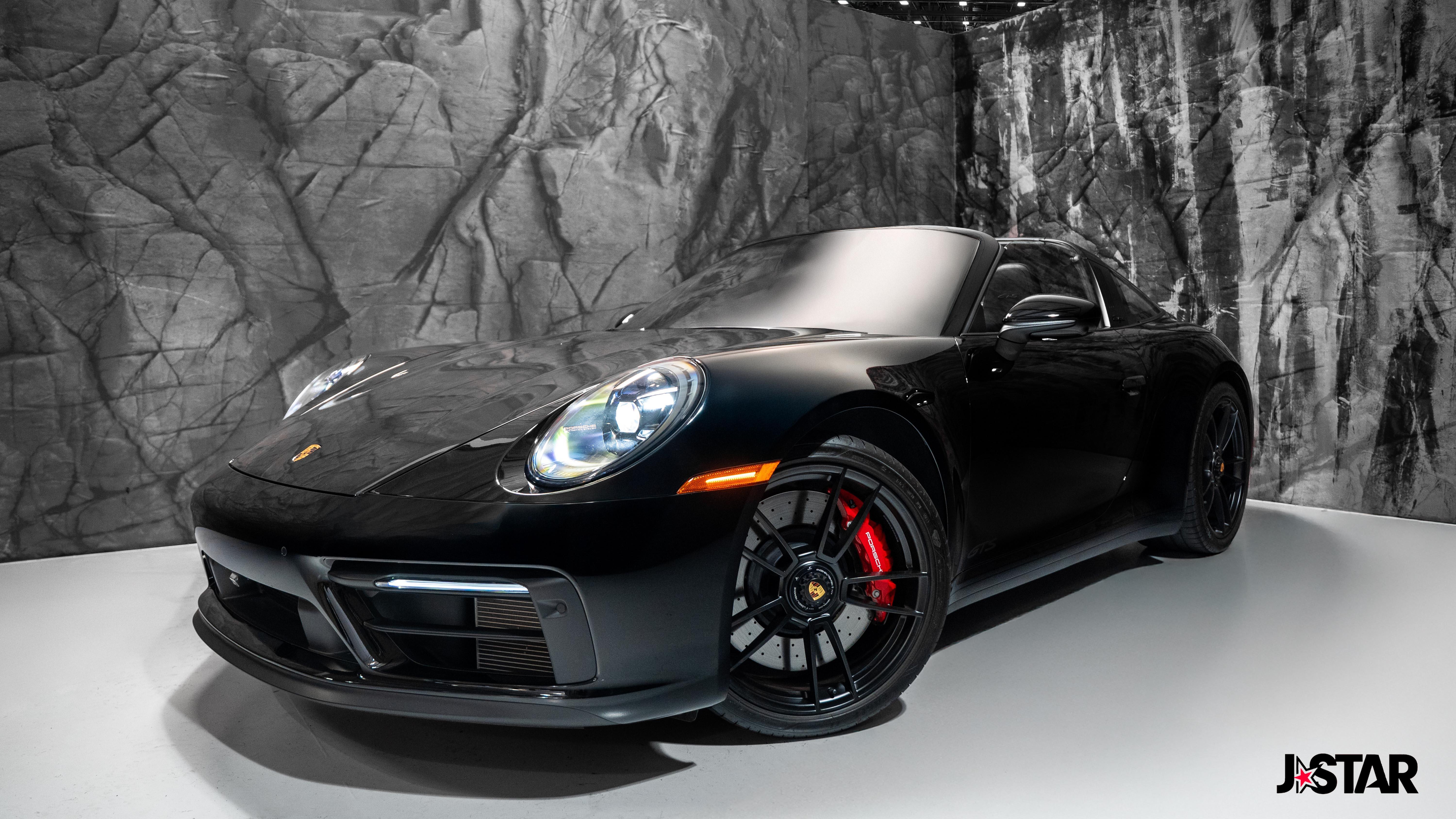 2024 Black Porsche 911 Targa 4 GTS AWD is well equipped and includes these features and benefits: Sound Package Plus, AWD, 4-Way Sport Seats Plus, 4-Wheel Disc Brakes, 8 Speakers, ABS brakes, Adaptive suspension, Air Conditioning, Alloy wheels, Auto High-beam Headlights, Auto-dimming door mirrors, Auto-dimming Rear-View mirror, Automatic temperature control, Brake assist, Bumpers: body-color, Convertible roof lining, Delay-off headlights, Driver door bin, Driver vanity mirror, Dual front impact airbags, Dual front side impact airbags, Electronic Stability Control, Exterior Parking Camera Rear, Four wheel independent suspension, Front anti-roll bar, Front Bucket Seats, Front Center Armrest, Front dual zone A/C, Front reading lights, Fully automatic headlights, Garage door transmitter: HomeLink, Glass rear window, Heated door mirrors, Heated front seats, Illuminated entry, Integrated roll-over protection, Leather/Race-Tex Seat Trim, Low tire pressure warning, Navigation system: Porsche Communication Management (PCM), Occupant sensing airbag, Outside temperature display, Overhead airbag, Overhead console, Passenger door bin, Passenger vanity mirror, Porsche Communication Management, Power convertible roof, Power door mirrors, Power driver seat, Power passenger seat, Power steering, Power windows, Radio data system, Rain sensing wipers, Rear anti-roll bar, Rear fog lights, Rear window defroster, Remote keyless entry, Security system, Speed control, Split folding rear seat, Spoiler, Sport steering wheel, Steering wheel mounted audio controls, Tachometer, Telescoping steering wheel, Tilt steering wheel, Traction control, Trip computer, Variably intermittent wipers, and Wheels: 20'' Fr/21'' Rr 911 Turbo S in Satin Black. AWD.