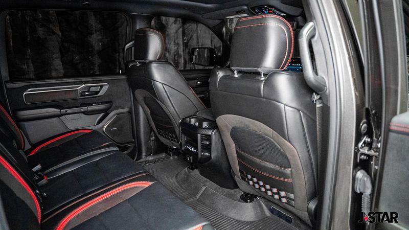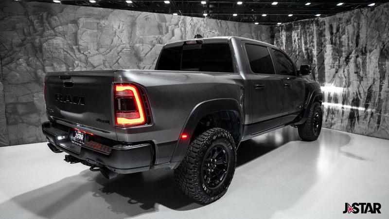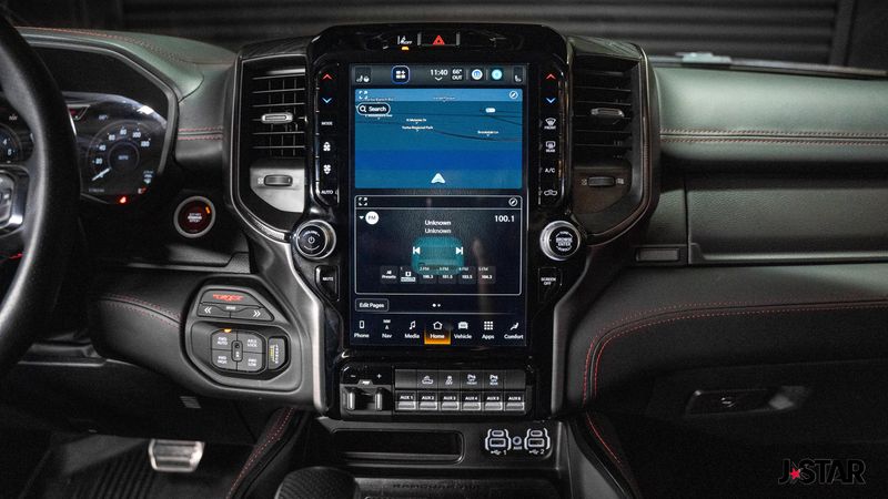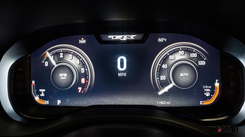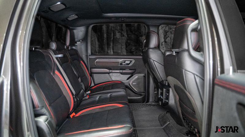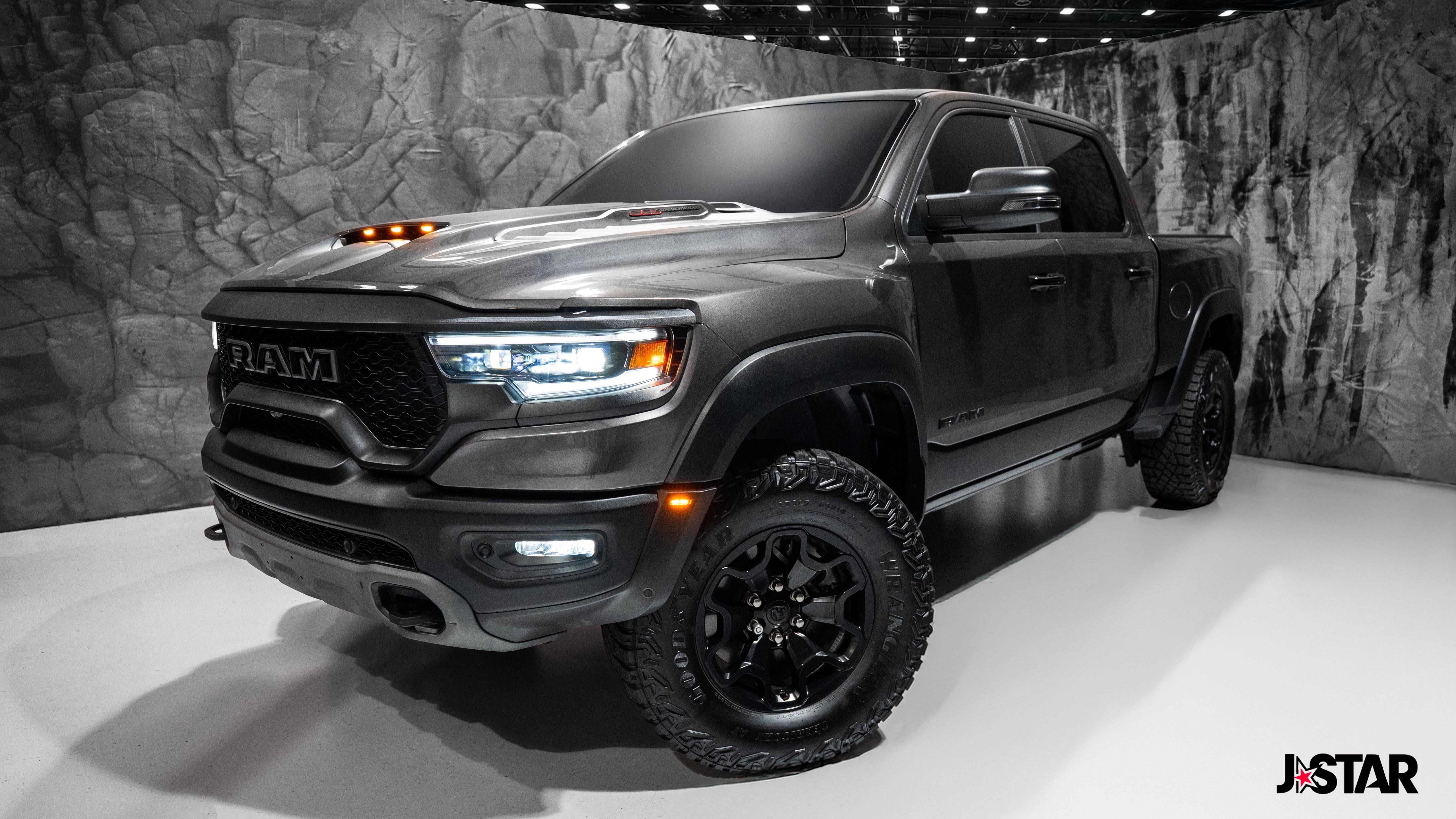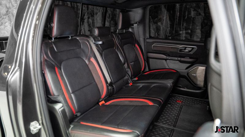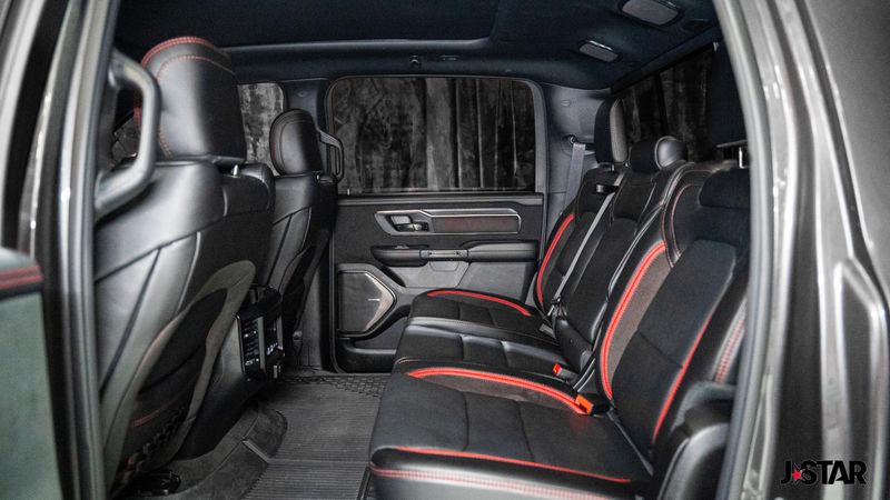 2024 Granite Crystal Metallic Clearcoat Ram 1500 TRX 4WD is well equipped and includes these features and benefits: Advanced Safety Group (Adaptive Cruise Control w/Stop & Go, Lane Keep Assist, and Pedestrian Emergency Braking), Quick Order Package 29Y TRX, TRX Level 2 Equipment Group (#2 Seat Foam Cushion, 2-Door Passive Entry, Front Door Locks, 4 Way Front Headrests, Accent Color Door Handles, Blind Spot & Cross Path Detection, Bucket Seats, Digital Rearview Mirror, Driver Seat Memory, Driver/Passenger Wrapped Assist Handles, Exterior Mirrors w/Memory, Front Door Accent Lighting, Front Seat Back Map Pockets, Full Length Premium Upgraded Floor Console, harman/kardon 19 Speaker Premium Sound, Heads-Up Display, Heated Front Seats, Heated Second Row Seats, Heated Steering Wheel, IP LED Ambient Light Pipe, Leather Trimmed Bucket Seats, Leather/Suede Flat-Bottom Steering Wheel, LED CHMSL Lamp, Luxury Front Door Trim Panel, MOPAR Bright Pedal Kit, ParkSense Front/Rear Park Assist w/Stop, Pick-Up Box Lighting, Power 4-Way Driver Lumbar Adjust, Power 4-Way Passenger Lumbar Adjust, Power 8-Way Driver & Passenger Seats, Power Adjustable Pedals w/Memory, Premium Wrapped IP Bezel, Radio/Driver Seat/Mirrors/Pedals Memory, Rain Sensitive Windshield Wipers, Rear 60/40 Folding Seat, Rear 60/40 Folding Split Recline Seat, Rear Door Accent Lighting, Rear Underseat Compartment Storage, Rear Window Defroster, Remote Tailgate Release, Sun Visors w/Illuminated Vanity Mirrors, Surround View Camera System, Trailer Brake Control, Universal Garage Door Opener, Ventilated Front Seats, Ventilated Rear Seats, and Wireless Charging Pad), 10 Speakers, 3.55 Rear Axle Ratio, 4-Wheel Disc Brakes, ABS brakes, Adaptive suspension, Air Conditioning, Alloy wheels, AM/FM radio: SiriusXM with 360L, Apple CarPlay/Android Auto, Auto High-beam Headlights, Auto-dimming door mirrors, Auto-dimming Rear-View mirror, Automatic temperature control, Brake assist, Cloth/Vinyl Bucket Seats, Compass, Delay-off headlights, Dome Dual LED Reading Lamp, Driver door bin, Dual front impact airbags, Dual front side impact airbags, Dual-Pane Panoramic Sunroof, Electronic Stability Control, Exterior Mirrors Courtesy Lamps, Exterior Mirrors w/Heating Element, Exterior Mirrors w/Supplemental Signals, Front anti-roll bar, Front Bucket Seats, Front Center Armrest w/Storage, Front dual zone A/C, Front fog lights, Front License Plate Bracket, Front reading lights, Front wheel independent suspension, Fully automatic headlights, Heated door mirrors, Illuminated entry, Leather Shift Knob, Leather steering wheel, Low tire pressure warning, Navigation System, Occupant sensing airbag, Outside temperature display, Overhead airbag, Overhead console, Panic alarm, ParkView Rear Back-Up Camera, Passenger door bin, Passenger vanity mirror, Power door mirrors, Power driver seat, Power steering, Power windows, Power-Folding Mirrors, Radio data system, Radio: Uconnect 5 Nav w/12.0'' Display, Rear seat center armrest, Rear step bumper, Remote keyless entry, Security system, Speed control, Split folding rear seat, Sport steering wheel, Steering wheel mounted audio controls, Tachometer, Telescoping steering wheel, Tilt steering wheel, Traction control, Trip computer, TRX Red Interior Accents, Turn signal indicator mirrors, Variably intermittent wipers, Voltmeter, and Wheels: 18'' x 9'' Black Paint/Polish Aluminum.