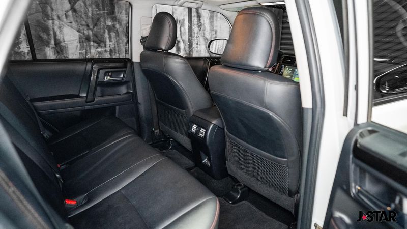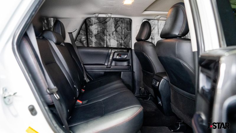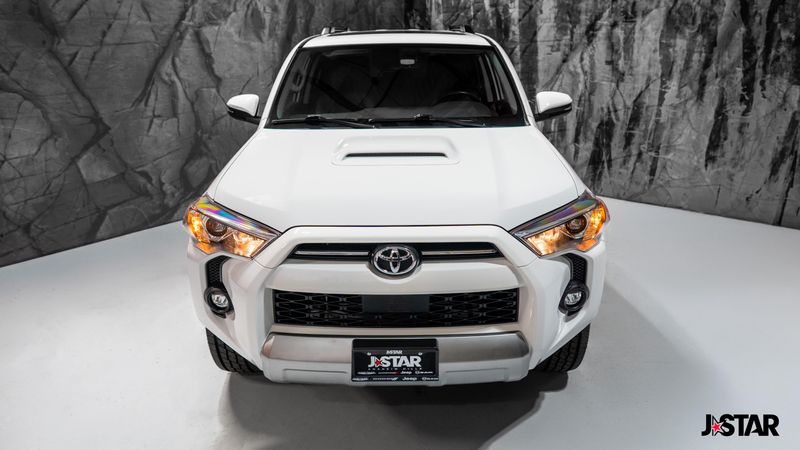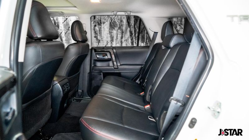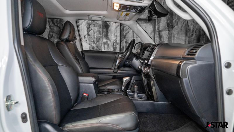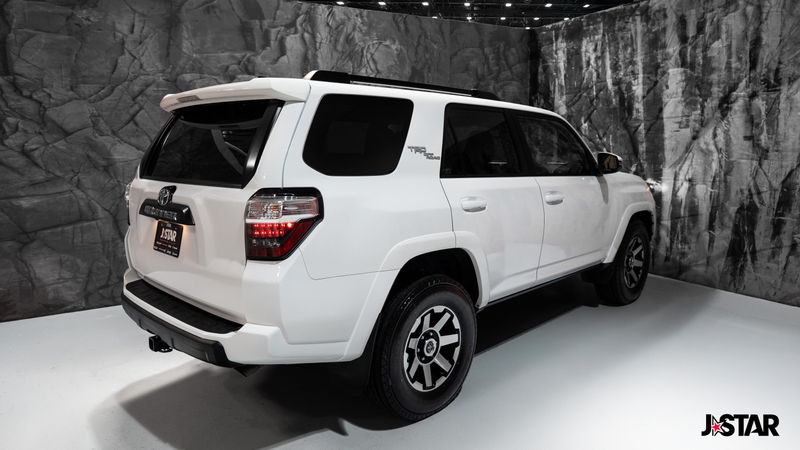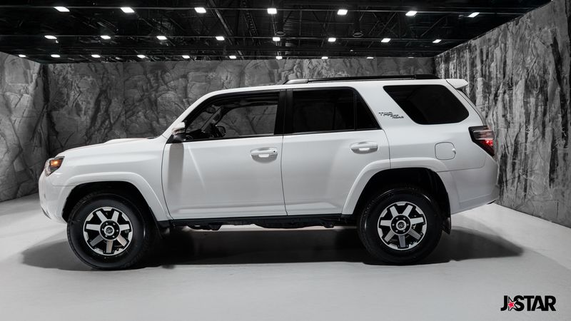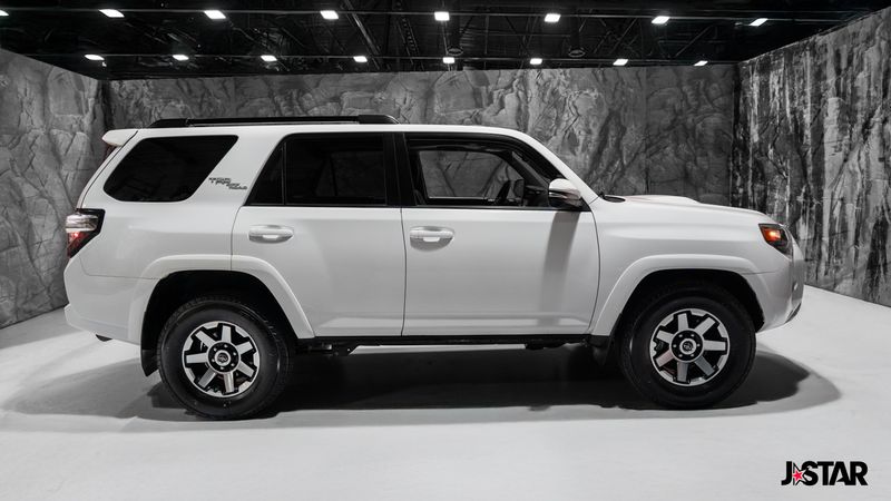 2024 Ice Toyota 4Runner TRD Off-Road Premium 4WD is well equipped and includes these features and benefits: Moonroof Package (Moonroof w/Tilt Up & Slide), Off Road Package (Black Roof Rails and Heated Outside Rear-View Mirrors), Off Road Premium Package (Garage Door Opener), 4WD, Graphite Artificial Leather, 3.727 Axle Ratio, 4-Wheel Disc Brakes, 8 Speakers, ABS brakes, Air Conditioning, Alloy wheels, AM/FM radio: SiriusXM, Anti-whiplash front head restraints, Apple CarPlay/Android Auto, Auto High-beam Headlights, Auto-dimming Rear-View mirror, Brake assist, Bumpers: body-color, Compass, Driver door bin, Driver vanity mirror, Dual front impact airbags, Dual front side impact airbags, Electronic Stability Control, Emergency communication system: Safety Connect (1-year trial), Exterior Parking Camera Rear, Front anti-roll bar, Front Bucket Seats, Front Center Armrest, Front fog lights, Front reading lights, Front wheel independent suspension, Garage door transmitter: HomeLink, Heated door mirrors, Heated Front Bucket Seats, Heated front seats, Heated steering wheel, Illuminated entry, Kinetic Dynamic Suspension System (KDSS), Knee airbag, Leather Shift Knob, Low tire pressure warning, Navigation System, Occupant sensing airbag, Outside temperature display, Overhead airbag, Overhead console, Panic alarm, Passenger door bin, Passenger vanity mirror, Power door mirrors, Power driver seat, Power passenger seat, Power steering, Power windows, Radio: Premium Audio, Rear anti-roll bar, Rear seat center armrest, Rear window defroster, Rear window wiper, Remote keyless entry, Security system, SofTex Seat Trim, Speed control, Speed-sensing steering, Split folding rear seat, Spoiler, Steering wheel mounted audio controls, Tachometer, Telescoping steering wheel, Tilt steering wheel, Traction control, Trip computer, Turn signal indicator mirrors, Variably intermittent wipers, and Wheels: 17'' Unique 7-Spoke Off-Road Alloy. 4WD, Graphite Artificial Leather.