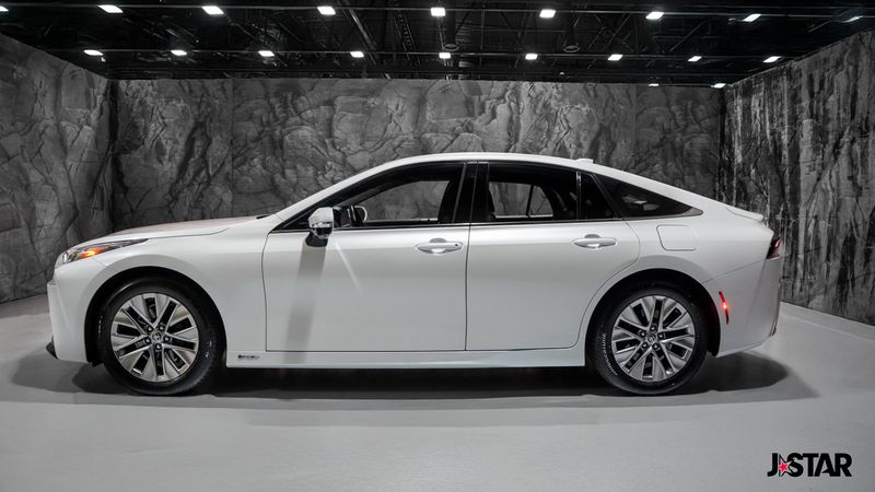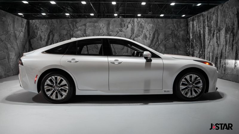 2024 White Toyota Mirai XLE RWD is well equipped and includes these features and benefits: Advanced Technology Package (Digital Key Capability, Front & Rear Parking Assist w/Automated Braking, Front Seat Foot Illumination, and Panoramic View Monitor), 14 Speakers, 4-Wheel Disc Brakes, ABS brakes, Air Conditioning, Alloy wheels, AM/FM radio: SiriusXM, Auto High-beam Headlights, Auto-dimming Rear-View mirror, Automatic temperature control, Brake assist, Bumpers: body-color, Delay-off headlights, Driver door bin, Driver vanity mirror, Dual front impact airbags, Dual front side impact airbags, Electronic Stability Control, Emergency communication system: Safety Connect (1-year trial), Exterior Parking Camera Rear, Front anti-roll bar, Front Bucket Seats, Front Center Armrest, Front dual zone A/C, Front reading lights, Front wheel independent suspension, Fully automatic headlights, Garage door transmitter: HomeLink, Heated door mirrors, Heated Front Bucket Seats, Heated front seats, Illuminated entry, Knee airbag, Leather steering wheel, Low tire pressure warning, Navigation system: Drive Connect Cloud Navigation (1-year trial subscription), Occupant sensing airbag, Outside temperature display, Overhead airbag, Overhead console, Panic alarm, Passenger door bin, Passenger vanity mirror, Power door mirrors, Power driver seat, Power passenger seat, Power steering, Power windows, Radio data system, Radio: 12.3'' Toyota Audio Multimedia, Rain sensing wipers, Rear anti-roll bar, Rear Parking Sensors, Rear seat center armrest, Rear window defroster, Remote keyless entry, SofTex Seat Trim, Speed control, Speed-Sensitive Wipers, Steering wheel mounted audio controls, Telescoping steering wheel, Tilt steering wheel, Traction control, Trip computer, Turn signal indicator mirrors, Variably intermittent wipers, and Wheels: 19'' Twin-Spoke Aluminum.