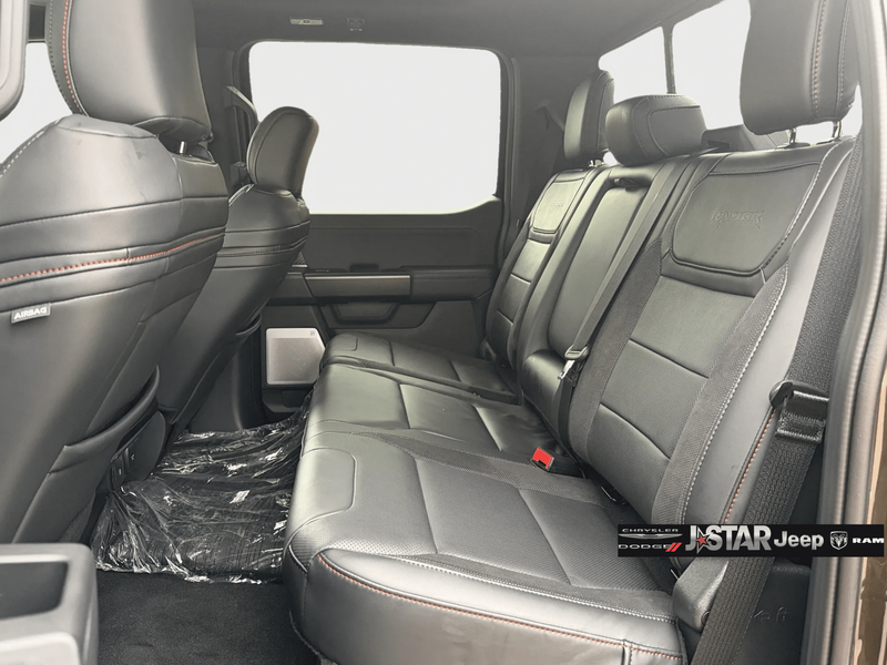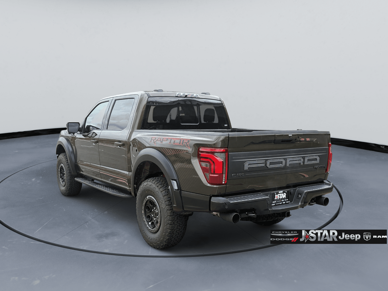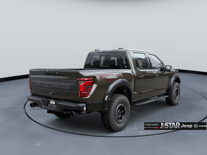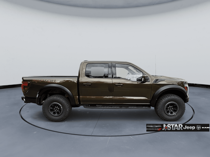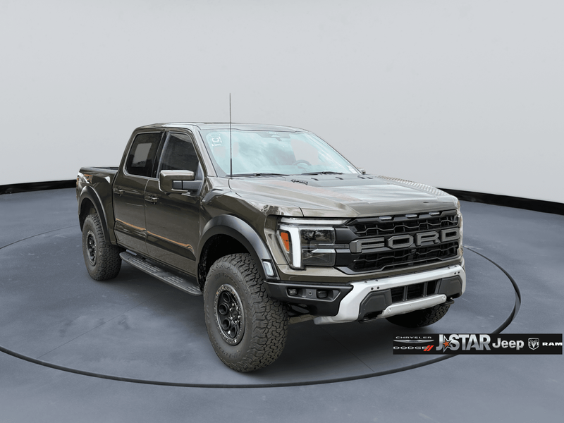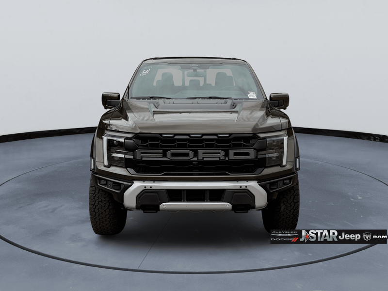 2025 Green Ford F-150 Raptor 4WD is well equipped and includes these features and benefits: Equipment Group 802A Raptor 37 (Carbon Fiber Interior Appliques, Dual Valve Shocks, Modular Front Bumper, RECARO Alcantara Suede Front Seats, and Wheels: Raptor 37 Unique 17'' Cast Aluminum), 4WD, 14 Speakers, 17'' Cast Aluminum Wheels, 4-Wheel Disc Brakes, ABS brakes, Adjustable pedals, Air Conditioning, Alloy wheels, AM/FM radio: SiriusXM with 360L, Auto High-beam Headlights, Auto tilt-away steering wheel, Auto-dimming door mirrors, Auto-dimming Rear-View mirror, Automatic temperature control, Brake assist, Bumpers: body-color, Compass, Delay-off headlights, Driver door bin, Driver vanity mirror, Dual front impact airbags, Dual front side impact airbags, Electronic Locking w/4.10 Axle Ratio, Electronic Stability Control, Emergency communication system: SYNC 4 911 Assist, Front anti-roll bar, Front Bucket Seats, Front Center Armrest, Front dual zone A/C, Front fog lights, Front License Plate Bracket, Front reading lights, Front wheel independent suspension, Fully automatic headlights, Garage door transmitter, Heads-Up Display, Heated door mirrors, Heated front seats, Heated rear seats, Heated steering wheel, Illuminated entry, Lane Departure Warning System, Leather steering wheel, Leather Trimmed Seats, Low tire pressure warning, Memory seat, Navigation system: Connected Navigation, Occupant sensing airbag, Outside temperature display, Overhead airbag, Overhead console, Panic alarm, Passenger door bin, Passenger vanity mirror, Pedal memory, Power door mirrors, Power driver seat, Power passenger seat, Power steering, Power windows, Radio data system, Radio: B&O Unleashed Sound System by Bang & Olufsen, Rain sensing wipers, Rear reading lights, Rear step bumper, Rear window defroster, Remote keyless entry, Security system, Speed control, Speed-sensing steering, Split folding rear seat, Steering wheel memory, Steering wheel mounted audio controls, SYNC 4 w/Enhanced Voice Recognition, Tachometer, Telescoping steering wheel, Tilt steering wheel, Tough Bed Spray-In Bedliner, Traction control, Trip computer, Turn signal indicator mirrors, Twin Panel Moonroof, Variably intermittent wipers, and Ventilated front seats. 4WD.