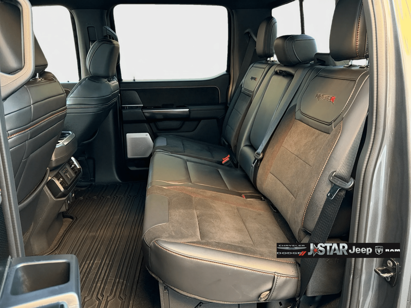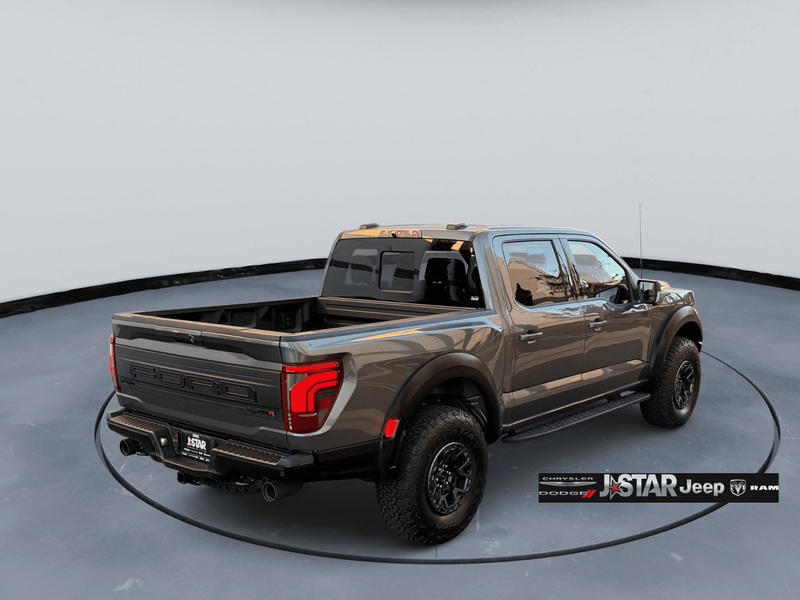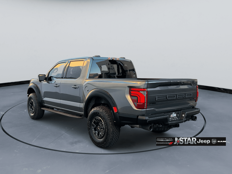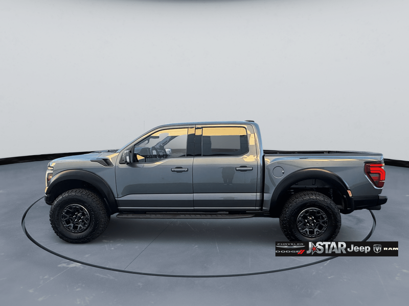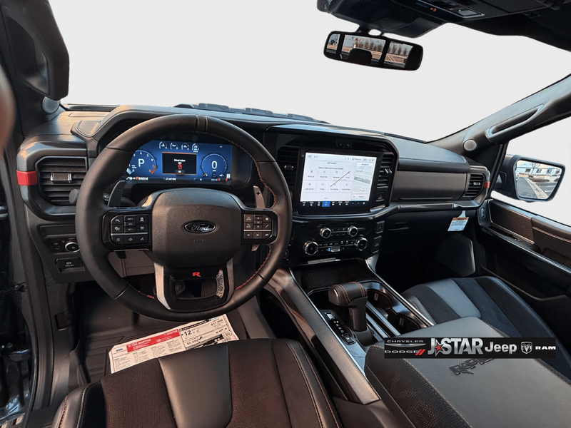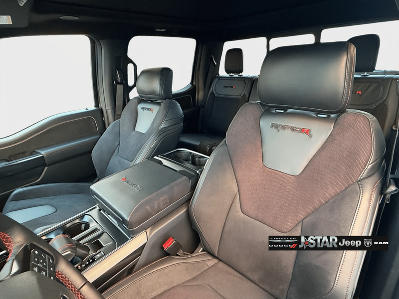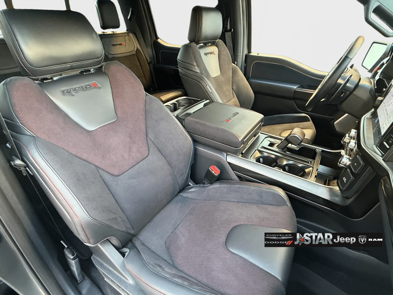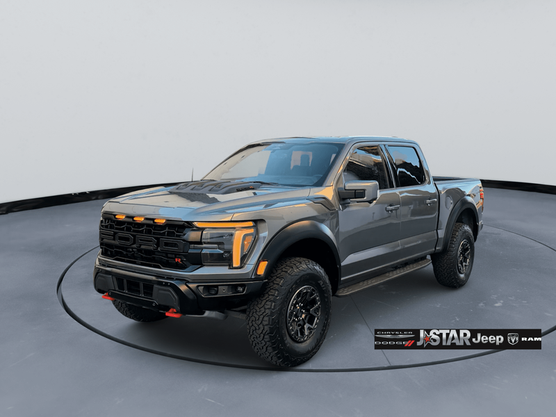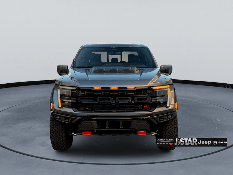 2025 Gray Metallic Ford F-150 Raptor 4WD is well equipped and includes these features and benefits: Equipment Group 803A Raptor R (Code Orange Front Tow Hooks, Code Orange Stitching Doors & Instrument Panel, Dual Valve Shocks, Interior Code Orange Raptor R Badging, Modular Front Bumper, Raptor R Badge Tailgate Applique, Raptor R Exterior Graphics, Raptor R Exterior Theme, Raptor R Interior Theme, Raptor R Unique Grille, Raptor R Unique Hood Vent w/R Badge, RECARO w/Code Orange Stitching Front Seats, Removes 2KW Pro Power Onboard, Unique Carbon Fiber Appliques, Upgraded Dual Exhaust, and Wheels: Raptor R Unique 17'' Forged Aluminum), 4WD, 14 Speakers, 17'' Cast Aluminum Wheels, 4-Wheel Disc Brakes, ABS brakes, Adjustable pedals, Air Conditioning, Alloy wheels, AM/FM radio: SiriusXM with 360L, Auto High-beam Headlights, Auto tilt-away steering wheel, Auto-dimming door mirrors, Auto-dimming Rear-View mirror, Automatic temperature control, Brake assist, Bumpers: body-color, Compass, Delay-off headlights, Driver door bin, Driver vanity mirror, Dual front impact airbags, Dual front side impact airbags, Electronic Locking w/4.10 Axle Ratio, Electronic Stability Control, Emergency communication system: SYNC 4 911 Assist, Front anti-roll bar, Front Bucket Seats, Front Center Armrest, Front dual zone A/C, Front fog lights, Front License Plate Bracket, Front reading lights, Front wheel independent suspension, Fully automatic headlights, Garage door transmitter, Heads-Up Display, Heated door mirrors, Heated front seats, Heated rear seats, Heated steering wheel, Illuminated entry, Lane Departure Warning System, Leather steering wheel, Leather Trimmed Seats, Low tire pressure warning, Memory seat, Navigation system: Connected Navigation, Occupant sensing airbag, Outside temperature display, Overhead airbag, Overhead console, Panic alarm, Passenger door bin, Passenger vanity mirror, Pedal memory, Power door mirrors, Power driver seat, Power passenger seat, Power steering, Power windows, Radio data system, Radio: B&O Unleashed Sound System by Bang & Olufsen, Rain sensing wipers, Rear reading lights, Rear step bumper, Rear window defroster, Remote keyless entry, Security system, Speed control, Speed-sensing steering, Split folding rear seat, Steering wheel memory, Steering wheel mounted audio controls, SYNC 4 w/Enhanced Voice Recognition, Tachometer, Telescoping steering wheel, Tilt steering wheel, Tough Bed Spray-In Bedliner, Traction control, Trip computer, Turn signal indicator mirrors, Twin Panel Moonroof, Variably intermittent wipers, and Ventilated front seats. 4WD.