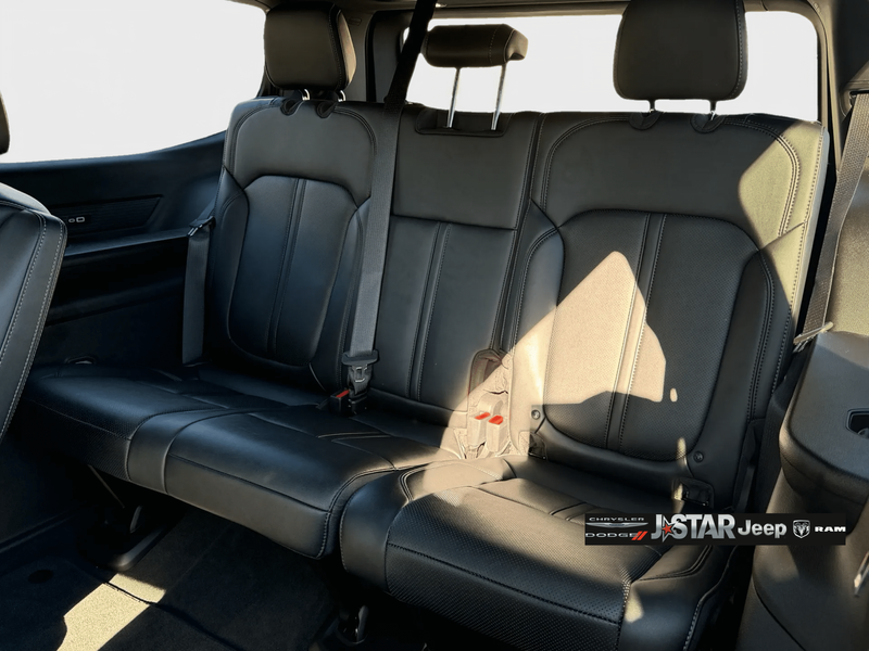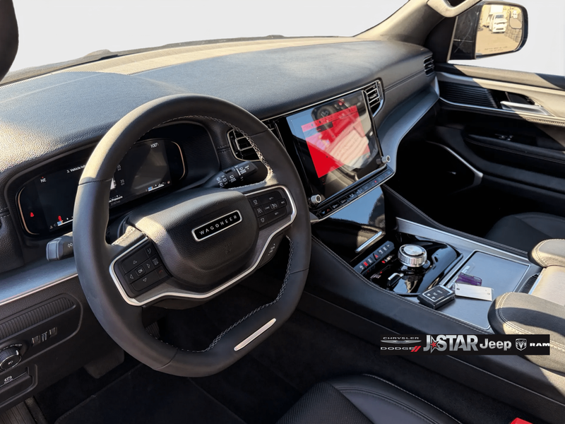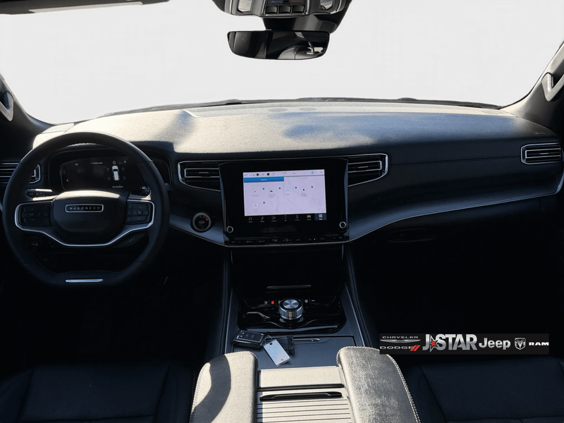 2025 Baltic Gray Metallic Clearcoat Jeep Wagoneer Series II 4WD is well equipped and includes these features and benefits: Carbide Appearance Package, Premium Group I (3 Panel Sunroof, Adjustable Roof Rail Crossbars, Cargo Cover, and Reversible Carpet/Vinyl Cargo Mat), Quick Order Package 25F Carbide (Black Exterior Accents and Wheels: 20'' x 9'' Gloss Black Painted Aluminum), 10 Speakers, 118 MPH Maximum Speed Calibration, 3.55 Rear Axle Ratio, 3rd row seats: bench, 4-Wheel Disc Brakes, ABS brakes, Air Conditioning, Alloy wheels, AM/FM radio: SiriusXM with 360L, Anti-whiplash front head restraints, Apple CarPlay/Android Auto, Audio memory, Auto Adjust In Reverse Exterior Mirrors, Auto-dimming door mirrors, Auto-Dimming Exterior Driver Mirror, Auto-dimming Rear-View mirror, Auto-leveling suspension, Automatic temperature control, Brake assist, Bumpers: body-color, Compass, Delay-off headlights, Driver door bin, Driver vanity mirror, Driver's Seat Mounted Armrest, Dual front impact airbags, Dual front side impact airbags, Electronic Stability Control, Emergency communication system: Jeep Connect, Exterior Mirrors Approach Lamps, Exterior Mirrors w/Memory, Exterior Mirrors w/Supplemental Signals, Four wheel independent suspension, Front anti-roll bar, Front Bucket Seats, Front Center Armrest w/Storage, Front dual zone A/C, Front fog lights, Front reading lights, Fully automatic headlights, Garage door transmitter, Genuine wood console insert, Genuine wood dashboard insert, Genuine wood door panel insert, Heated door mirrors, Heated Exterior Mirrors, Heated front seats, Heated rear seats, Heated steering wheel, Illuminated entry, Knee airbag, Leather Trimmed Bucket Seats, Low tire pressure warning, Memory seat, Navigation System, Normal Duty Suspension, Occupant sensing airbag, Outside temperature display, Overhead airbag, Overhead console, Panic alarm, ParkView Rear Back-Up Camera, Passenger door bin, Passenger seat mounted armrest, Passenger vanity mirror, Power adjustable front head restraints, Power door mirrors, Power driver seat, Power Liftgate, Power passenger seat, Power steering, Power windows, Radio data system, Radio: Uconnect 5 Nav w/10.1'' Display, Rain sensing wipers, Rear air conditioning, Rear anti-roll bar, Rear dual zone A/C, Rear reading lights, Rear seat center armrest, Rear window defroster, Rear window wiper, Reclining 3rd row seat, Remote keyless entry, Security system, Speed control, Speed-sensing steering, Speed-Sensitive Wipers, Split folding rear seat, Steering wheel memory, Steering wheel mounted audio controls, Tachometer, Telescoping steering wheel, Tilt steering wheel, Traction control, Trip computer, Turn signal indicator mirrors, Variably intermittent wipers, Ventilated front seats, Voltmeter, Wheels: 20'' x 9.0'' Premium 2 Aluminum, and Wheels: 22'' x 9.0'' Painted Gloss Black.
