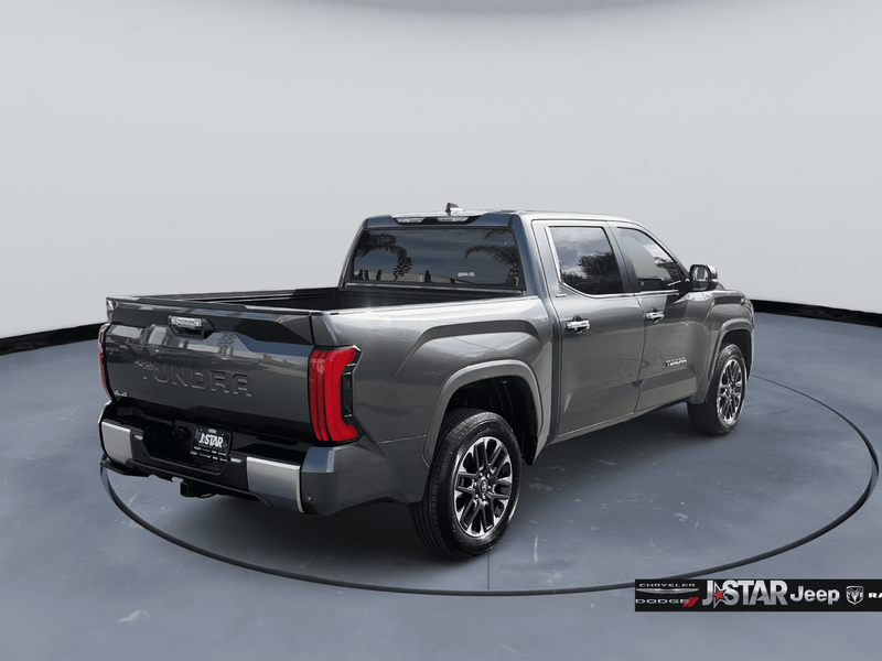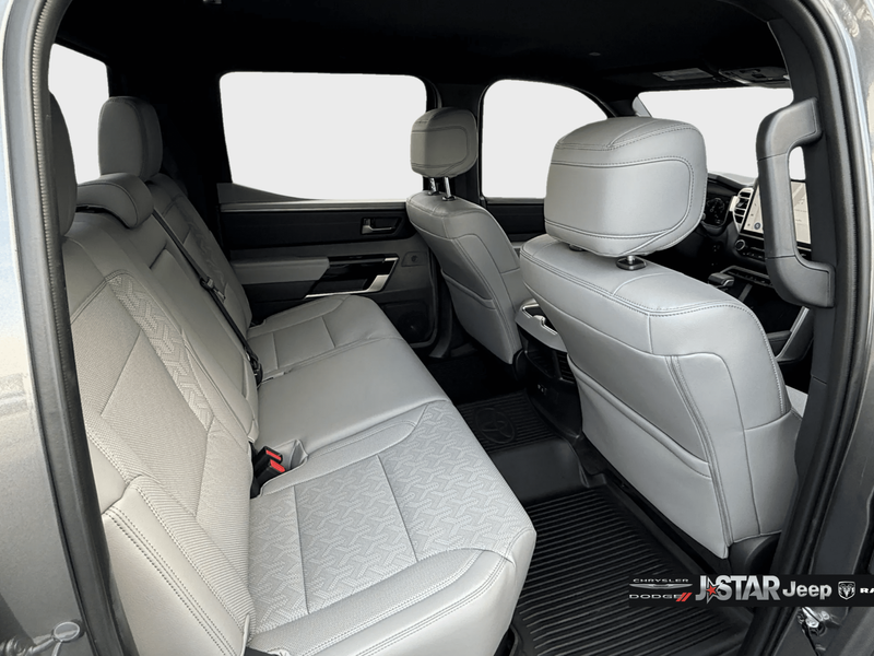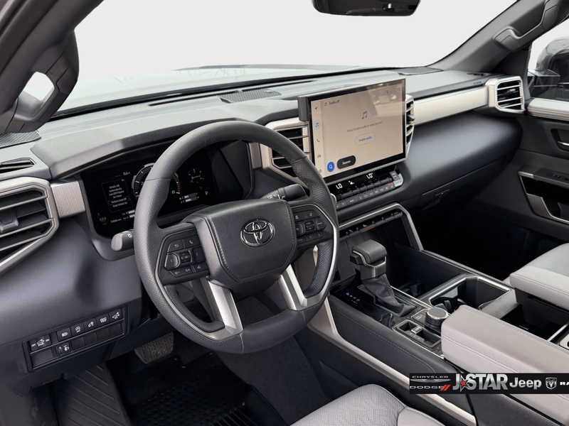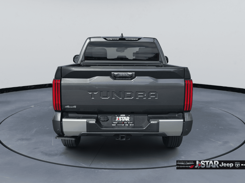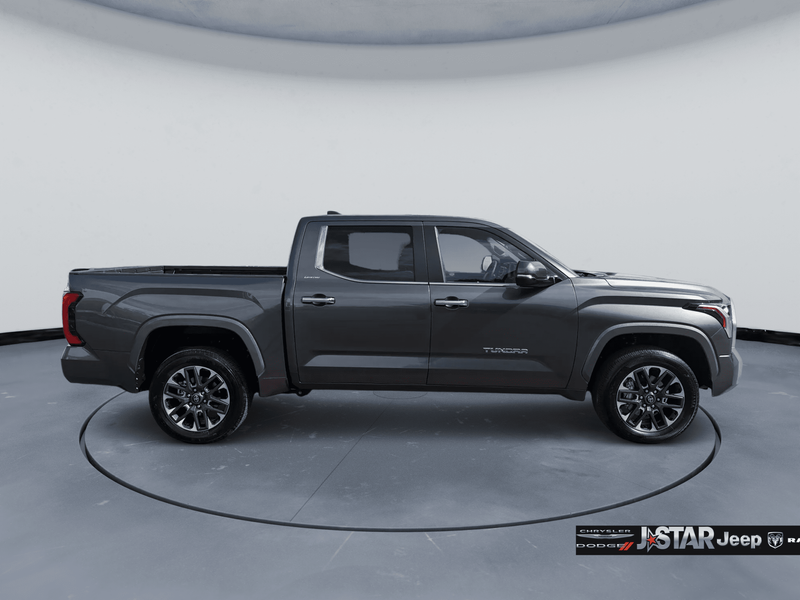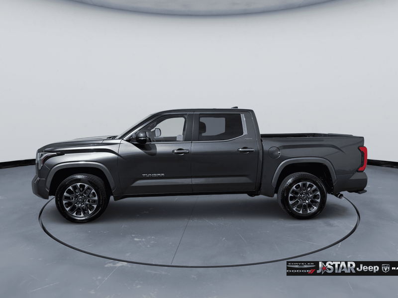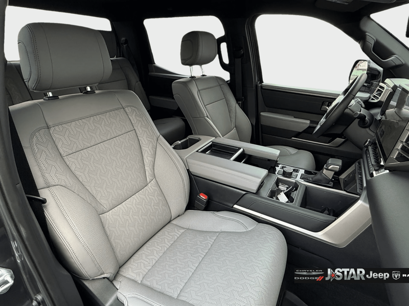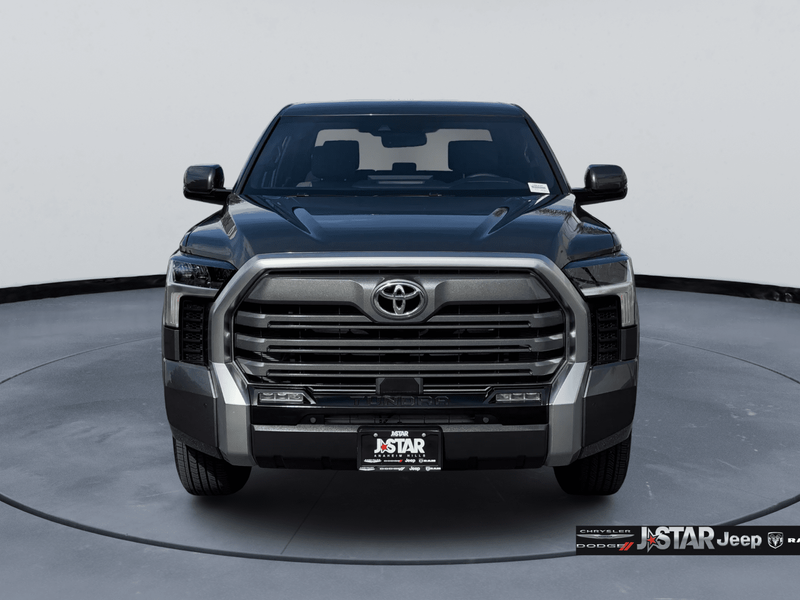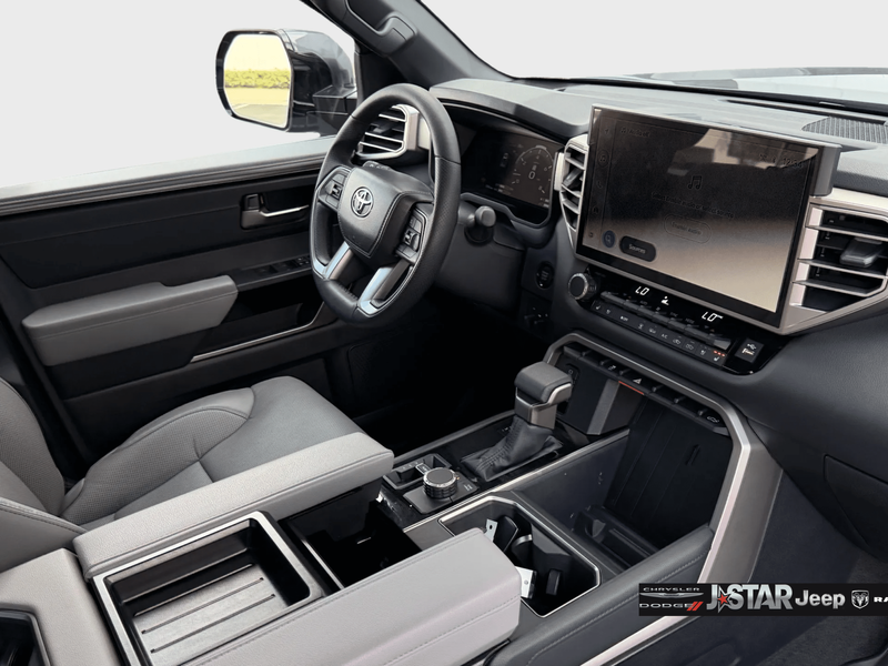 2025 Magnetic Gray Toyota Tundra Limited 4WD is well equipped and includes these features and benefits: 4WD, Boulder Artificial Leather, 20'' Alloy Wheels, 3.31 Axle Ratio, 4-Wheel Disc Brakes, 8-Way Pwr Adjustable Heated/Ventilated Front Seats, 9 Speakers, ABS brakes, Air Conditioning, All Weather Floor Liners (TMS), Alloy wheels, AM/FM radio: SiriusXM, Apple CarPlay/Android Auto, Auto High-beam Headlights, Auto-dimming door mirrors, Auto-dimming Rear-View mirror, Automatic temperature control, Bed Step (TMS), Brake assist, Bumpers: body-color, Delay-off headlights, Driver door bin, Driver vanity mirror, Dual front impact airbags, Dual front side impact airbags, Electronic Stability Control, Emergency communication system: Safety Connect (10-year trial), Exterior Parking Camera Rear, Front anti-roll bar, Front Bucket Seats, Front Center Armrest, Front dual zone A/C, Front fog lights, Front reading lights, Front wheel independent suspension, Fully automatic headlights, Garage door transmitter: HomeLink, Heated door mirrors, Heated front seats, Illuminated entry, Knee airbag, Leather Shift Knob, Leather steering wheel, Low tire pressure warning, Memory seat, Navigation System, Occupant sensing airbag, Outside temperature display, Overhead airbag, Overhead console, Panic alarm, Passenger door bin, Passenger vanity mirror, Power door mirrors, Power driver seat, Power passenger seat, Power steering, Power windows, Radio data system, Radio: Audio Multimedia System, Rear reading lights, Rear seat center armrest, Rear step bumper, Rear window defroster, Remote keyless entry, Safety Connect, Security system, SofTex Seat Trim, Speed control, Speed-sensing steering, Split folding rear seat, Steering wheel mounted audio controls, Tachometer, Telescoping steering wheel, Tilt steering wheel, Traction control, Trip computer, Turn signal indicator mirrors, Variably intermittent wipers, Ventilated front seats, Voltmeter, and Wheel Locks (TMS) 4WD, Boulder Artificial Leather.