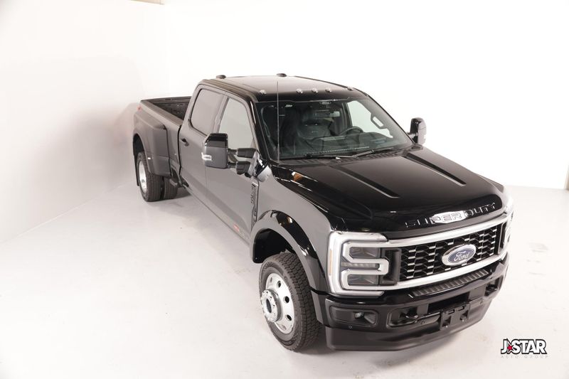 2026 Black Metallic Ford F-450SD Platinum 4WD is well equipped and includes these features and benefits: Ford Connectivity Package (1-Year Included), GVWR: 14,000 lb Payload Package, Internet access capable: 5G Modem - Ford Connectivity Package, Order Code 773A, 4WD, 14 Speakers, 19.5'' Forged Polished Aluminum Wheels, 4-Wheel Disc Brakes, 410 Amp Dual Alternators, ABS brakes, Adjustable pedals, Air Conditioning, Alloy wheels, AM/FM radio: SiriusXM with 360L, Auto High-beam Headlights, Auto tilt-away steering wheel, Auto-dimming Rear-View mirror, Automatic temperature control, Brake assist, Bumpers: body-color, Compass, Delay-off headlights, Driver door bin, Driver vanity mirror, Dual front impact airbags, Dual front side impact airbags, Dual rear wheels, Electronic Stability Control, Emergency communication system: SYNC 4 911 Assist, Engine Block Heater, Flow-Through Console, Front anti-roll bar, Front Bucket Seats, Front Center Armrest, Front dual zone A/C, Front fog lights, Front License Plate Bracket, Front reading lights, Fully automatic headlights, Garage door transmitter, Heads-Up Display, Heated door mirrors, Heated front seats, Heated rear seats, Heated steering wheel, Illuminated entry, Leather steering wheel, Limited Slip w/4.30 Axle Ratio, Low tire pressure warning, Memory seat, Navigation system: Connected Navigation, Outside temperature display, Overhead airbag, Overhead console, Panic alarm, Passenger door bin, Passenger vanity mirror, Pedal memory, Power door mirrors, Power driver seat, Power passenger seat, Power steering, Power windows, Radio: B&O Unleashed Sound System by Bang & Olufsen, Rain sensing wipers, Rapid-Heat Supplemental Cab Heater, Rear anti-roll bar, Rear reading lights, Rear seat center armrest, Rear step bumper, Rear window defroster, Remote keyless entry, SecuriCode Keyless Entry Keypad (Driver's Side), Security system, SiriusXM w/360L, Speed control, Split folding rear seat, Steering wheel memory, Steering wheel mounted A/C controls, Steering wheel mounted audio controls, SYNC 4 w/Enhanced Voice Recognition, Tachometer, Telescoping steering wheel, Tilt steering wheel, Tough Bed Spray-In Bedliner, Traction control, Trip computer, Turn signal indicator mirrors, Twin Panel Power Moonroof, Unique Platinum Leather 40/Console/40 Seats, Variably intermittent wipers, and Ventilated front seats. 4WD.